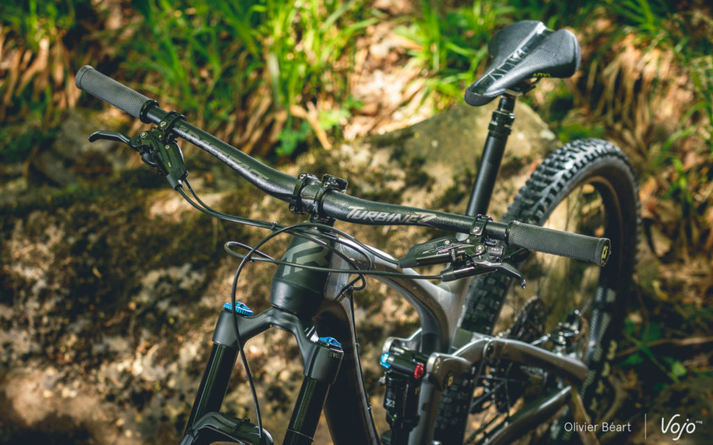 Des kits de montage sont aussi proposés, comme le nôtre qui est la version haut de gamme en Sram XO1 Eagle. Pour 2019, peu de choses changent, si ce n’est le remplacement du poste de pilotage Race Face par un ANVL, et le passage des roues e13 à des NoTubes Flow Mk3. Le prix de ce kit est de 3800€, ce qui amène le vélo complet à 6999€. Deux autres kits existent en Sram GX Eagle/Fox 36 Grip1/Flow S1 à 2600€ et en NX Eagle/RockShox Yari/WTB à 1600€. Sur le cadre alu, le kit GX est à 2800€ et le NX à 1700€, ce qui fait un modèle d’entrée de gamme à 3699€.