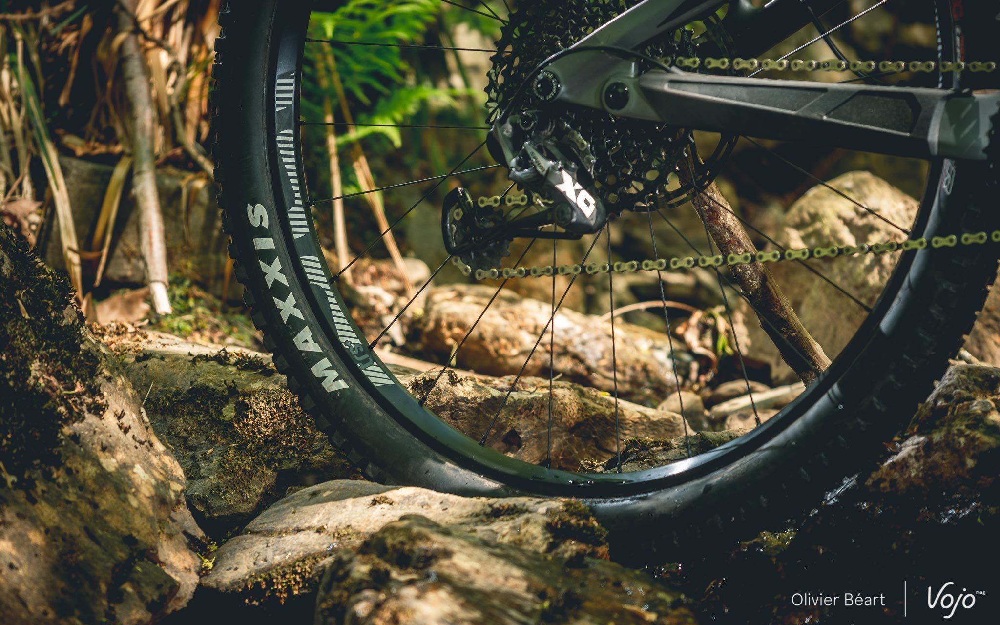 Outre les suspensions qui ont leur chapitre dédié, parmi les composants qui nous ont particulièrement plu sur ce Transition Sentinel, on relève les freins Sram Code RSC, vraiment puissants tout en restant modulables (pas autant que des Guide mais plus que des Shimano Saint par exemple), ou encore les pneus Maxxis Minion DHR/DHF en 2.4 à l’arrière et 2.5 Wide Trail devant, qui comptent vraiment parmi nos pneus favoris pour ce genre de machine. Par contre, les roues e13 ne sont toujours pas notre tasse de thé à cause de leur manque de rigidité latérale et on voit d’un bon œil qu’elles soient remplacées en 2019.