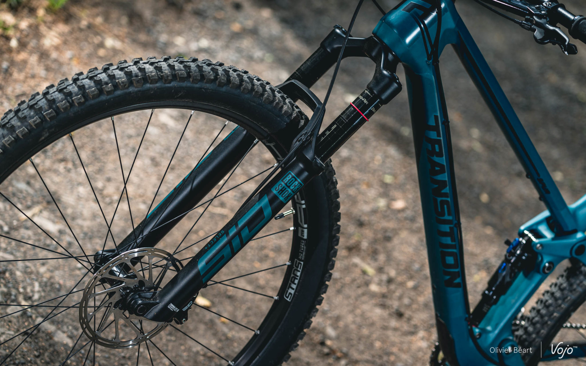 A l’avant, Transition a fait le choix de la cohérence en faisant aussi appel à RockShox avec la SID dans sa version body-buildée à plongeurs de 35mm de diamètre, qui offre 120mm de débattement. Elle est montée ici dans la version Select+, dotée de la même nouvelle cartouche hydraulique que la version Ultimate (dont vous pouvez retrouver la présentation et le test ici).