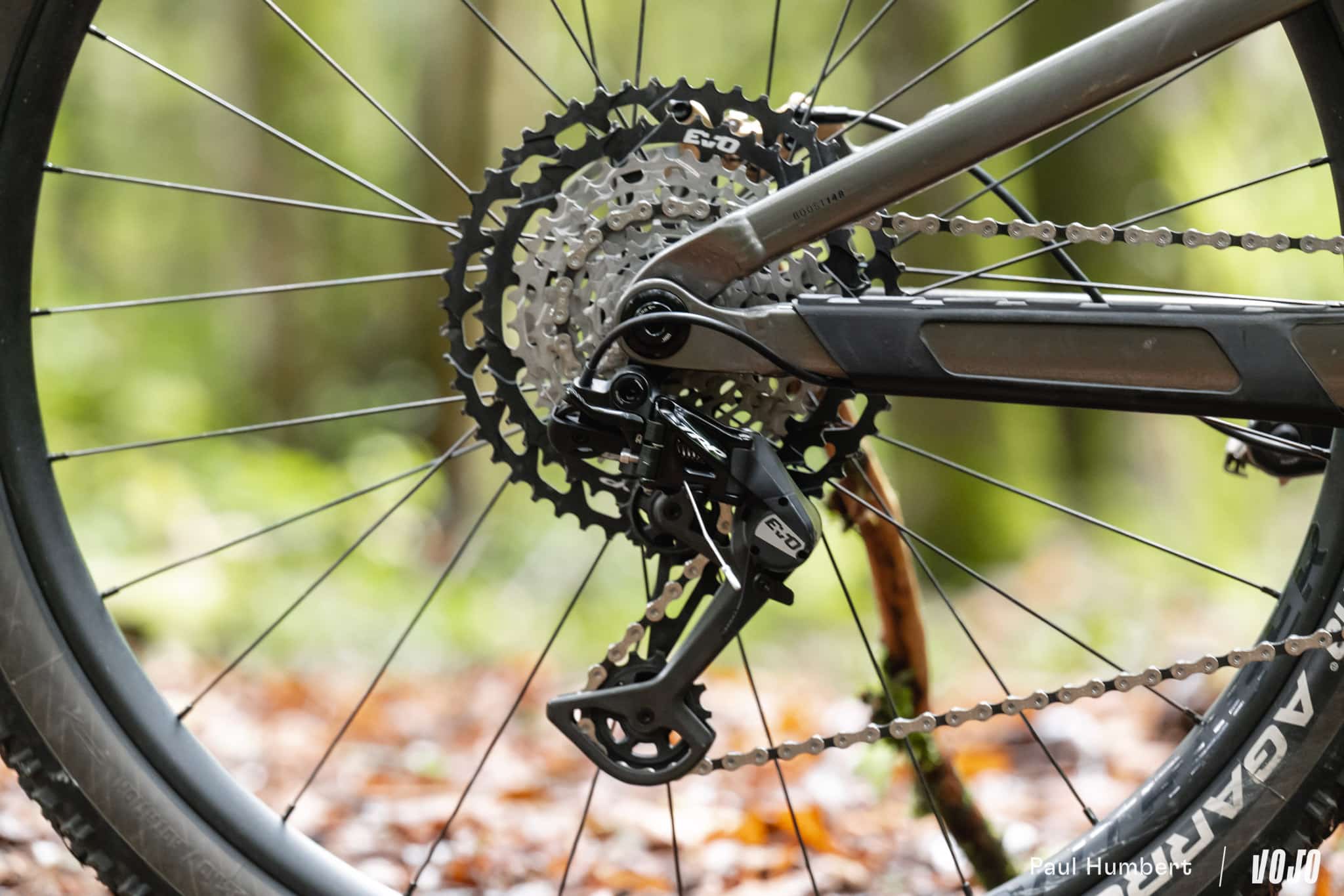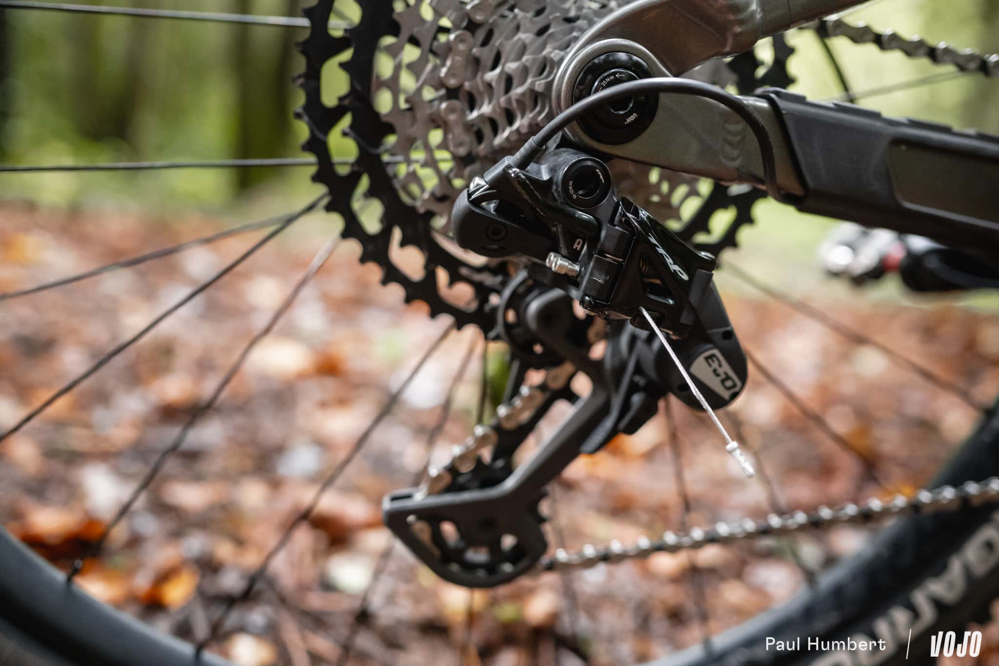 Dernier point terrain concernant le dérailleur : si le système visant à faciliter la dépose de la roue arrière en libérant la tension de la chaîne ne nous a pas forcément convaincus, en raison de l’ergonomie du levier/goupille qui n’est pas des plus naturelles et aisées à utiliser, la fonction « Hall Lock », quant à elle, a bien démontré son efficacité, notamment pour réduire les bruits de claquement parasites.
