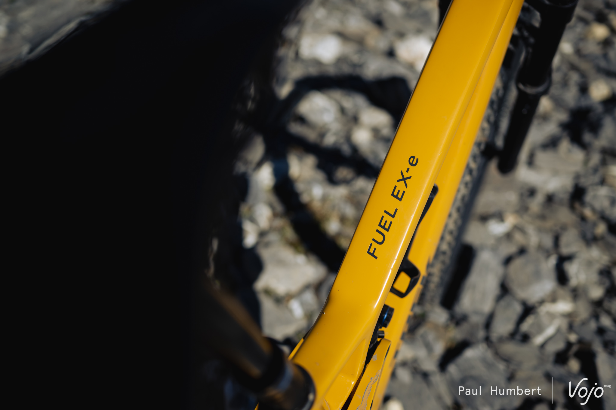 • la marque nous a envoyé son modèle le plus haut de gamme, le Fuel EXe 9.9 XX1 AXS, annoncé à 18,4 kg et 14 499 €. Parmi les principaux composants, on retient des suspensions RockShox Lyrik Ultimate et Super Deluxe Ultimate équipés des capteurs Airwiz, des freins Sram Code RSC, une transmission Sram XX1 Eagle AXS et une tige de selle RockShox Reverb AXS. Forcément, à ce tarif, aucune faute sur la finition ou l’équipement ne sera tolérée…