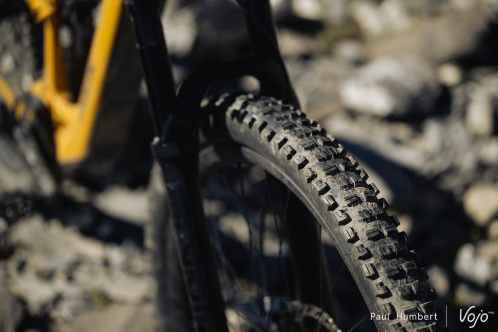 Dans le technique, il faut vraiment « taper » dans le Fuel EXe pour le faire fonctionner et avec l’équipement d’origine, cela demande un très bon niveau de pilotage. On a réussi à le rendre un peu plus accessible avec un autre train roulant (des roues We Are One notamment, lire Test | We Are One Union : le carbone made in Canada) mais quoi qu’il en soit, ce modèle très haut de gamme n’est certainement pas à la portée de tout le monde sur ces terrains.