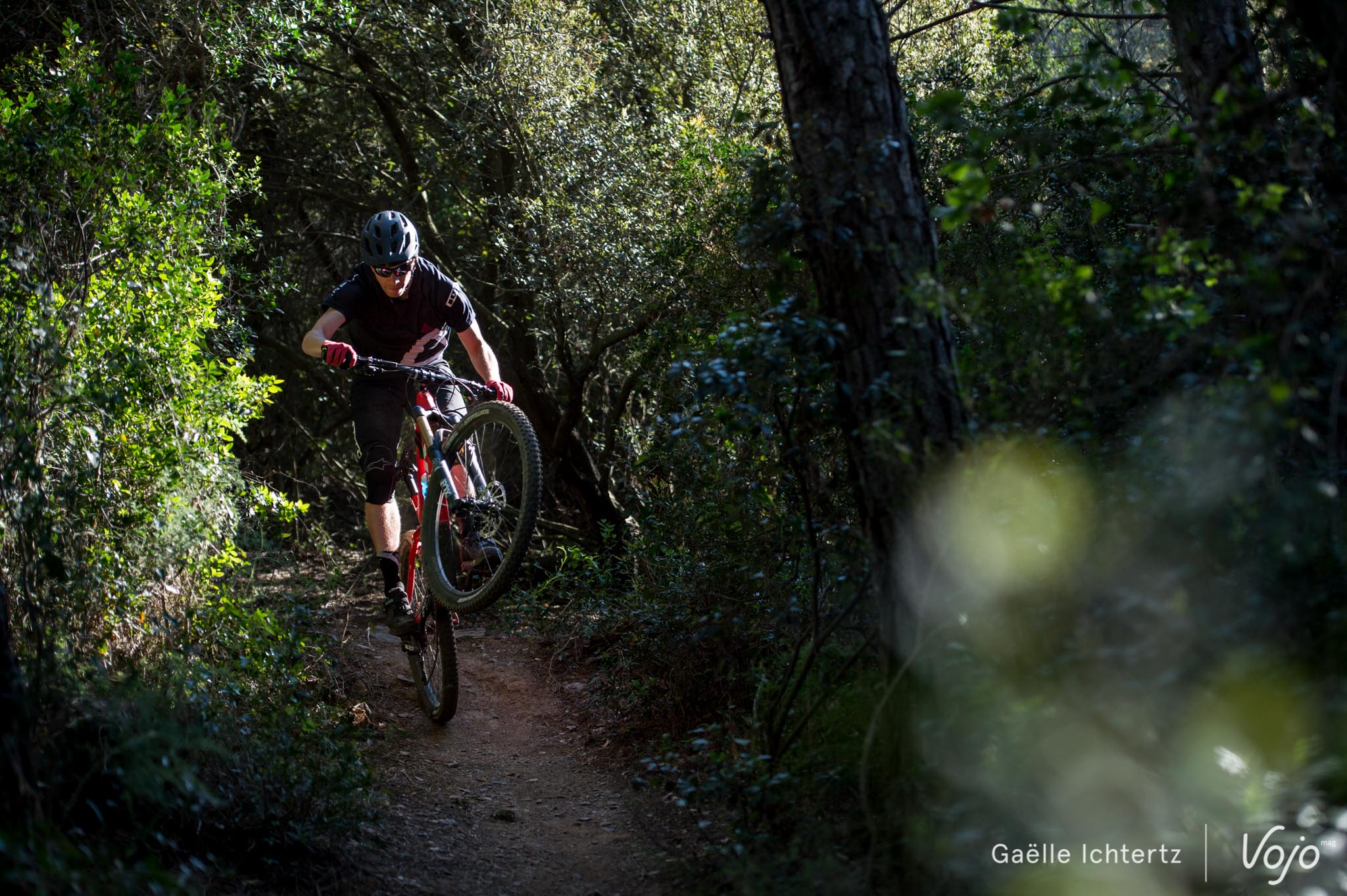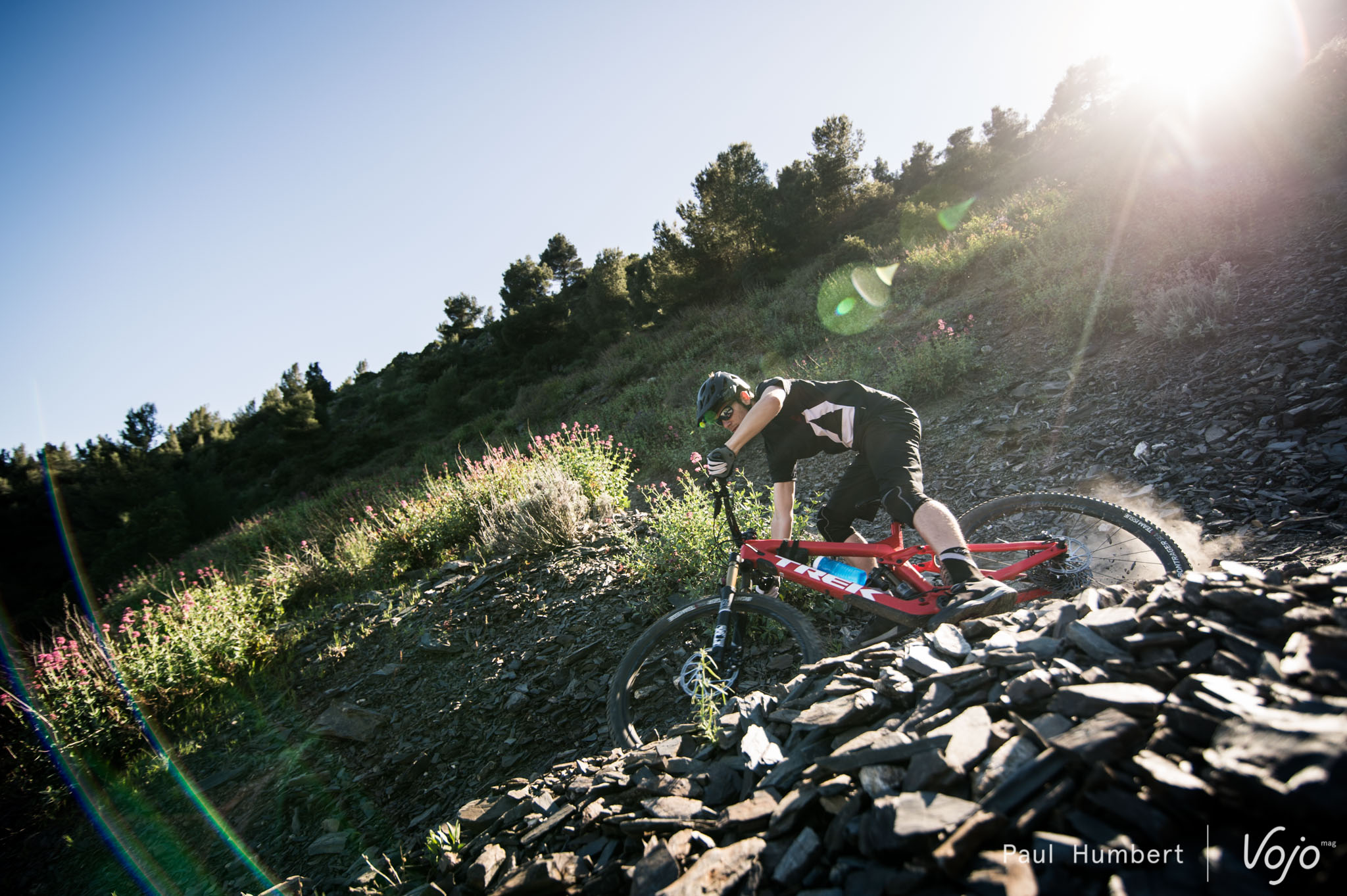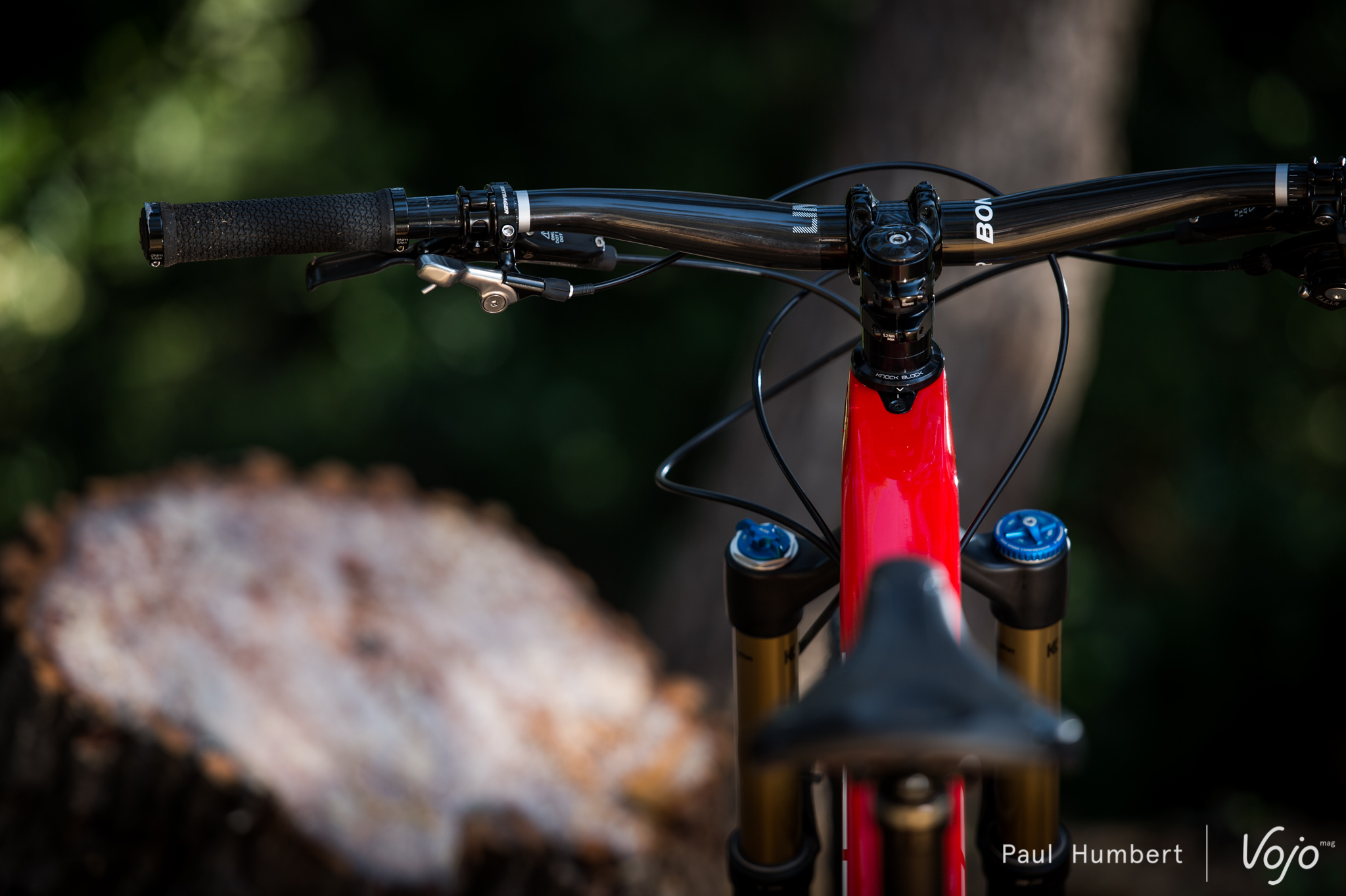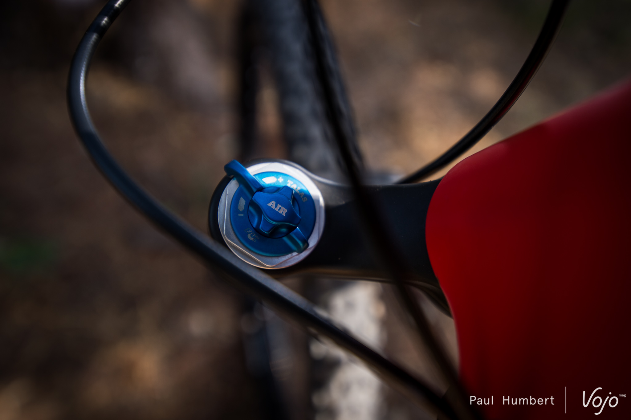 De temps à autre, en montée, on adapte la hauteur de la fourche en tirant profit du système Talas, qui ramène le débattement à 130mm. Cette fourche, qui s’est révélée performante et confortable, empêche toutefois l’utilisation de spacers en interne. Une limitation des réglages qui pourrait gêner les plus fins techniciens.
