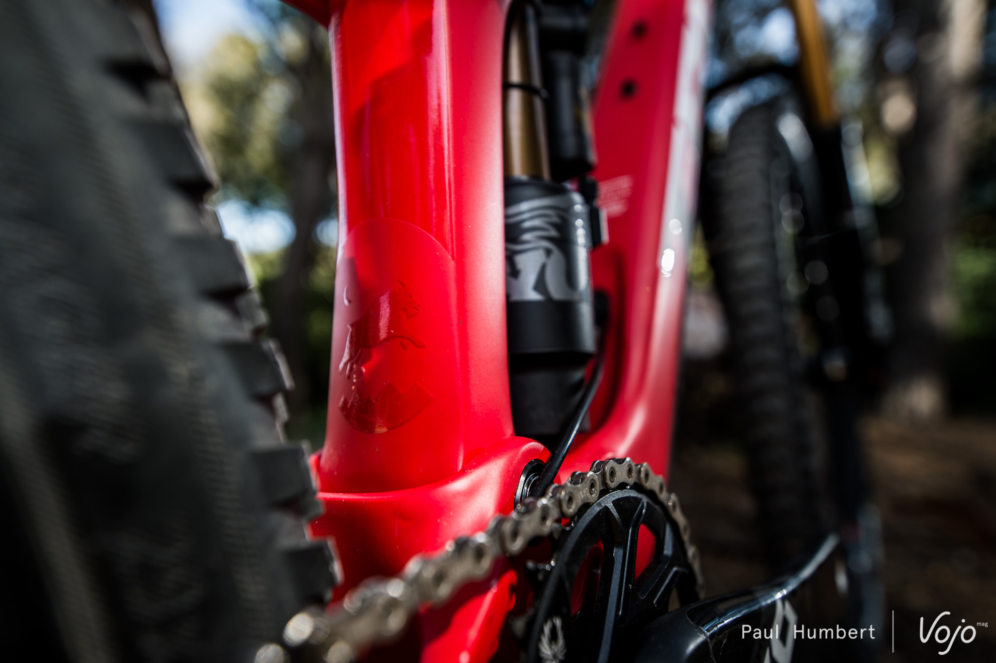 La version la plus haut de gamme RSL, pour « Race Shop Limited », est présentée dans sa livrée rouge, offre un équipement au top et des cotes on ne peut plus engagées à l’attention de ceux qui souhaitent sortir de leur magasin de vélo pour s’aligner immédiatement, et sans avoir à se faire du souci, sur des courses d’enduro.