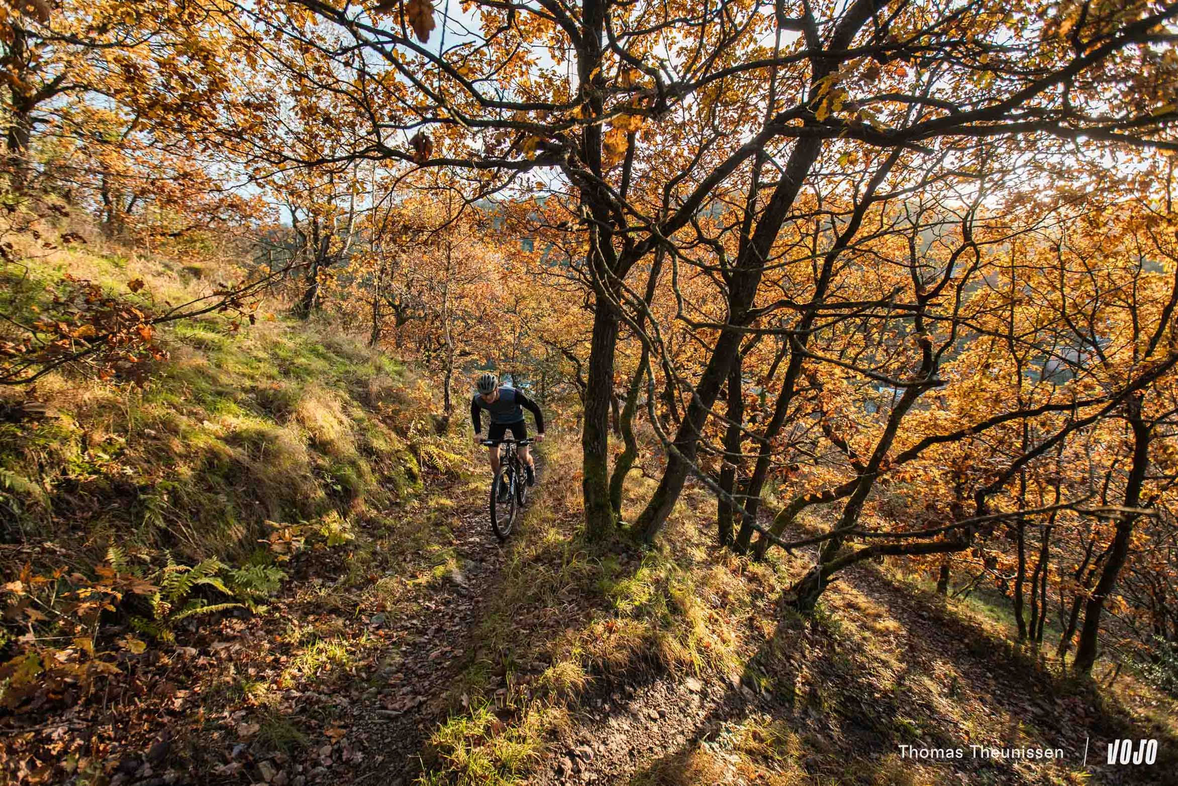 Le vélo reste assez haut dans son débattement et l’on se sent bien positionné pour attaquer ces passages techniques en côte, avec un caractère calme et posé, notamment grâce à l’allongement des bases et à l’ouverture de l’angle de chasse par rapport à la première génération. Le SuperCaliber offre ainsi cette impression que tout est plus simple et que l’on a juste à se concentrer sur notre pédalage.