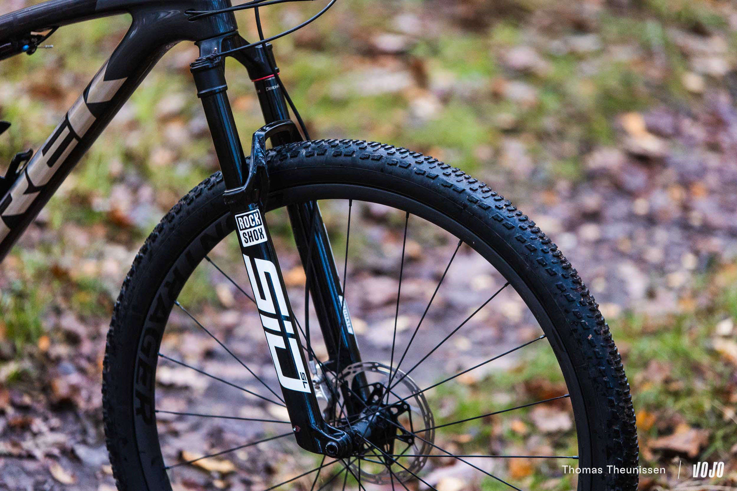 En cherchant la petite bête à ce Trek SuperCaliber, la paire de roues maison, les Kovee RSL, nous ont paru très rigides et donnent l’impression d’être indéformables. Il faut également remarquer qu’elles ne sont pas aidées par la monte de pneus très étroits et peu cramponnés qui se destinent aux terrains très secs et durs.