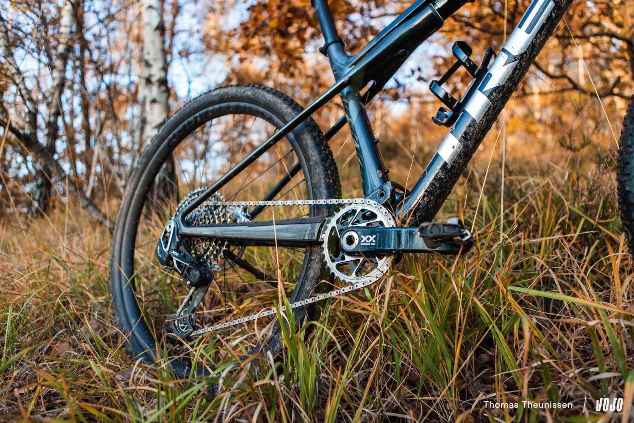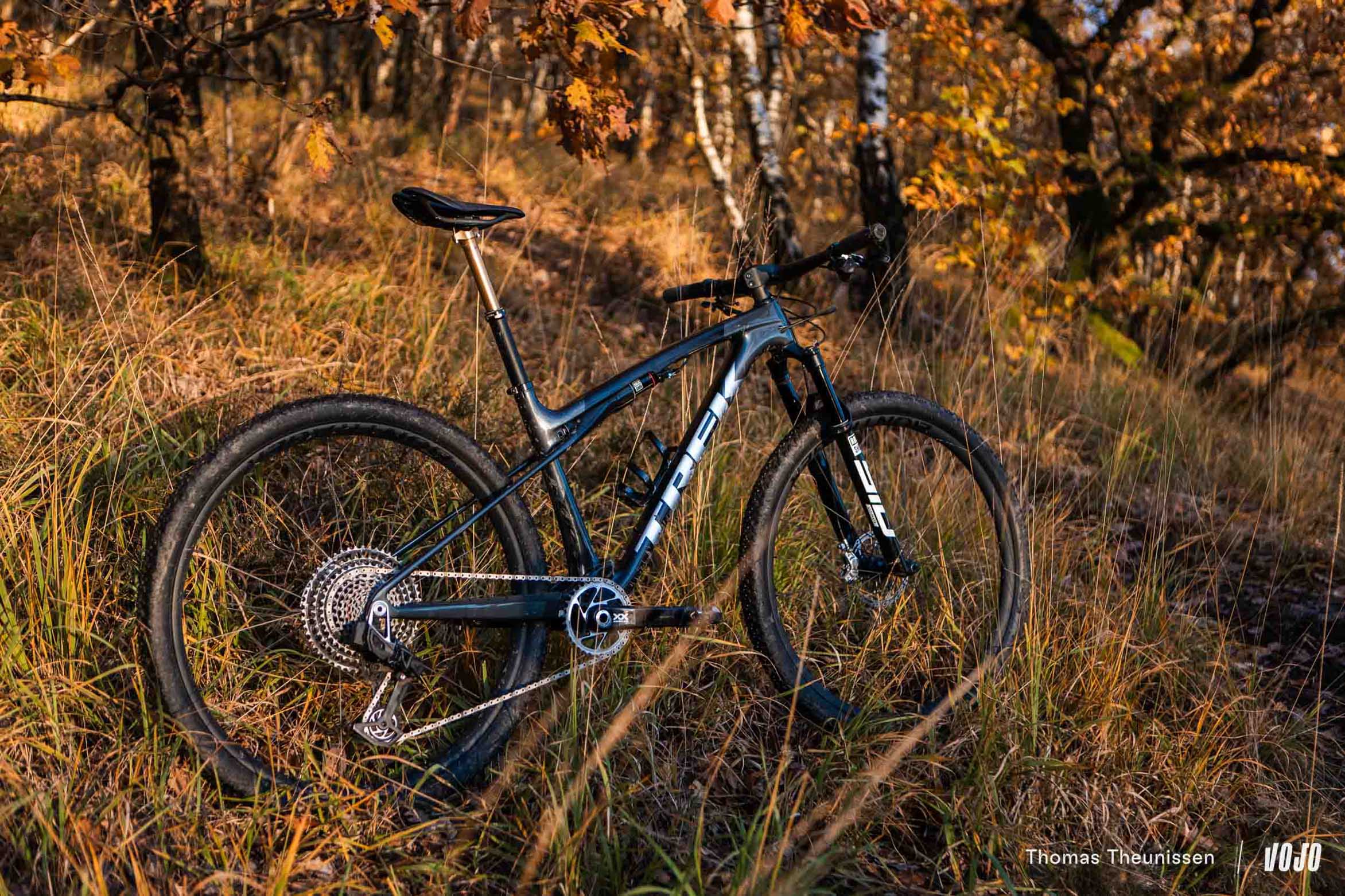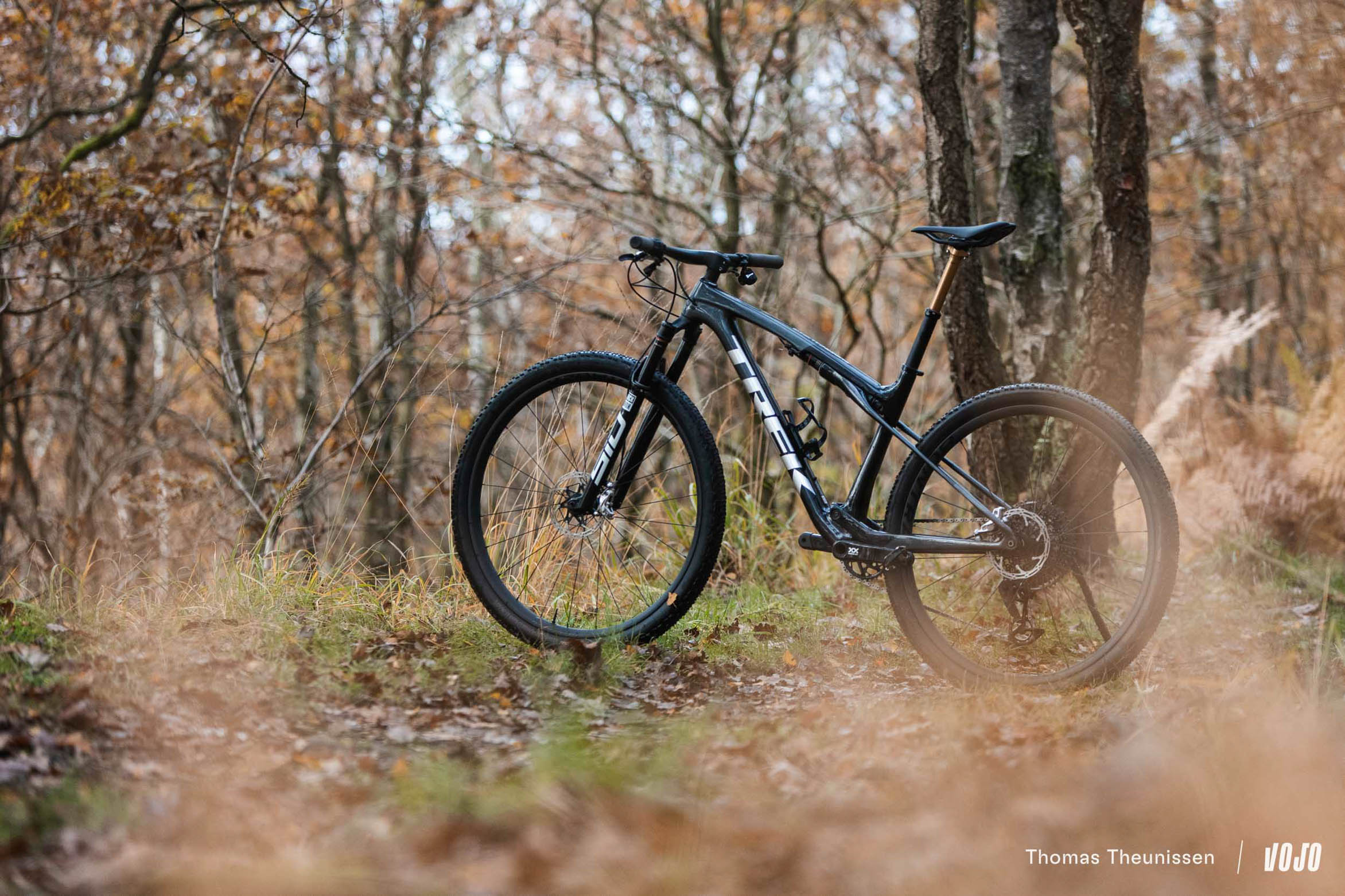 En cherchant la petite bête à ce Trek SuperCaliber, la paire de roues maison, les Kovee RSL, nous ont paru très rigides et donnent l’impression d’être indéformables. Il faut également remarquer qu’elles ne sont pas aidées par la monte de pneus très étroits et peu cramponnés qui se destinent aux terrains très secs et durs.