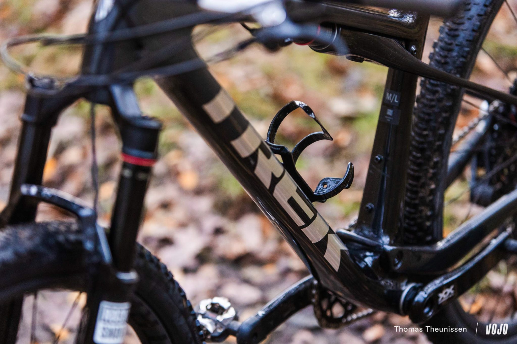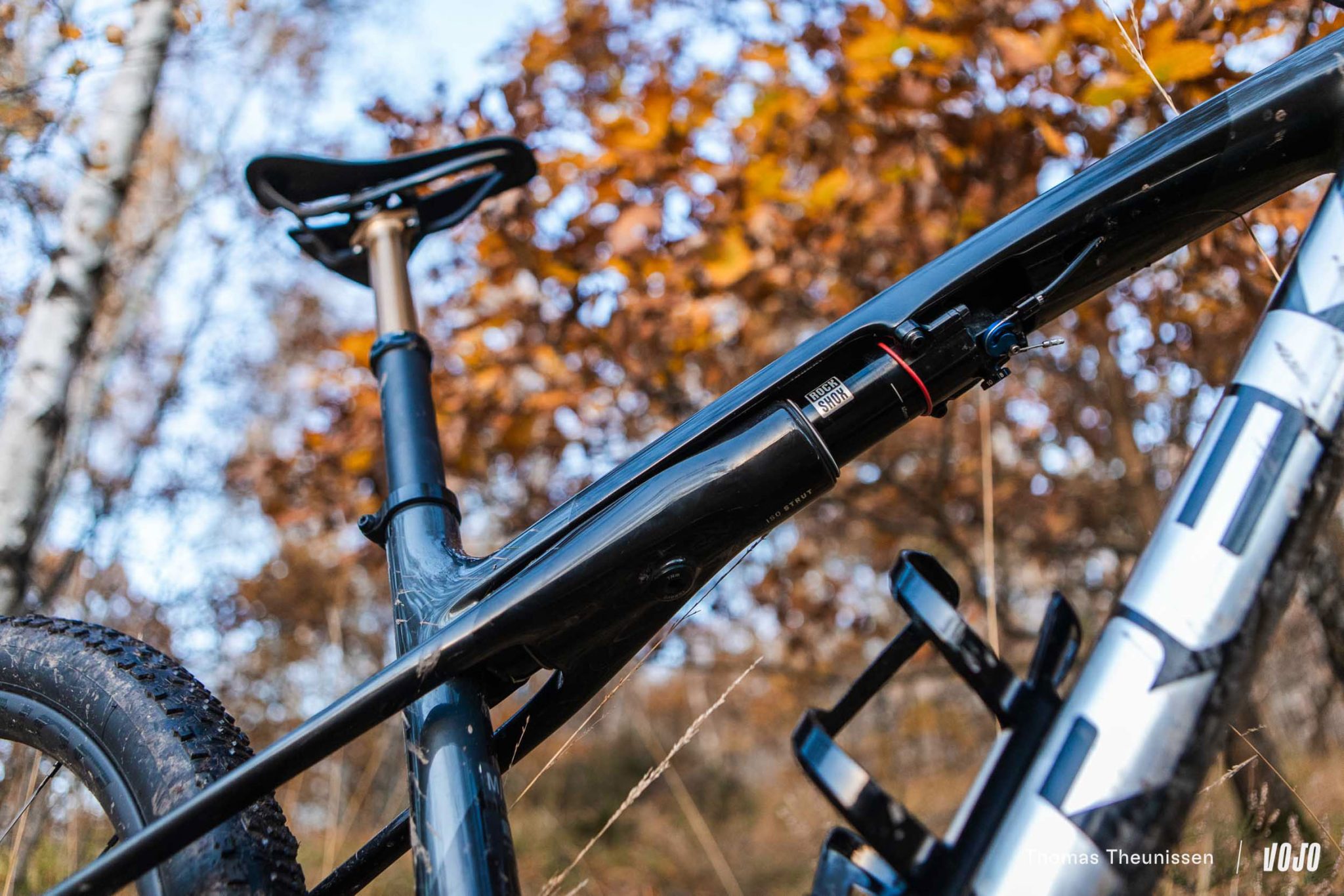 Le passage des câbles se fait en interne, avec une entrée située sur le haut du tube diagonal, et non directement au niveau de la potence ou du jeu de direction comme on le voit de plus en plus. Le cadre laisse la place pour embarquer deux bidons au sein du triangle avant, même sur les tailles les plus petites. Pratique d’un point de vue encombrement d’avoir un amortisseur presque intégré au tube supérieur, n’est-ce pas ?