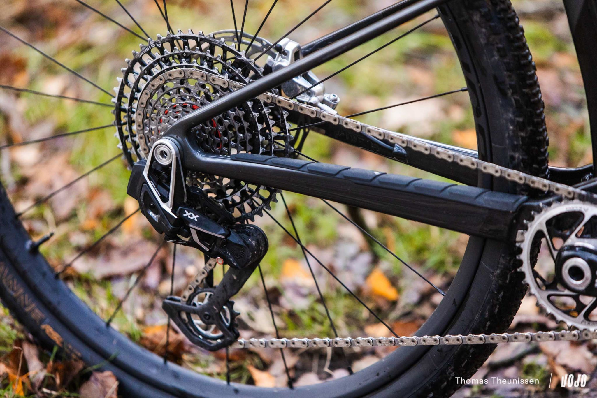 C’est Sram qui est aux commandes du côté de la transmission et du freinage. On retrouve ainsi un excellent groupe Sram XX SL T-Type, dont notre test est à retrouver juste ici : Test | Sram Eagle AXS 2023 : sans égal.