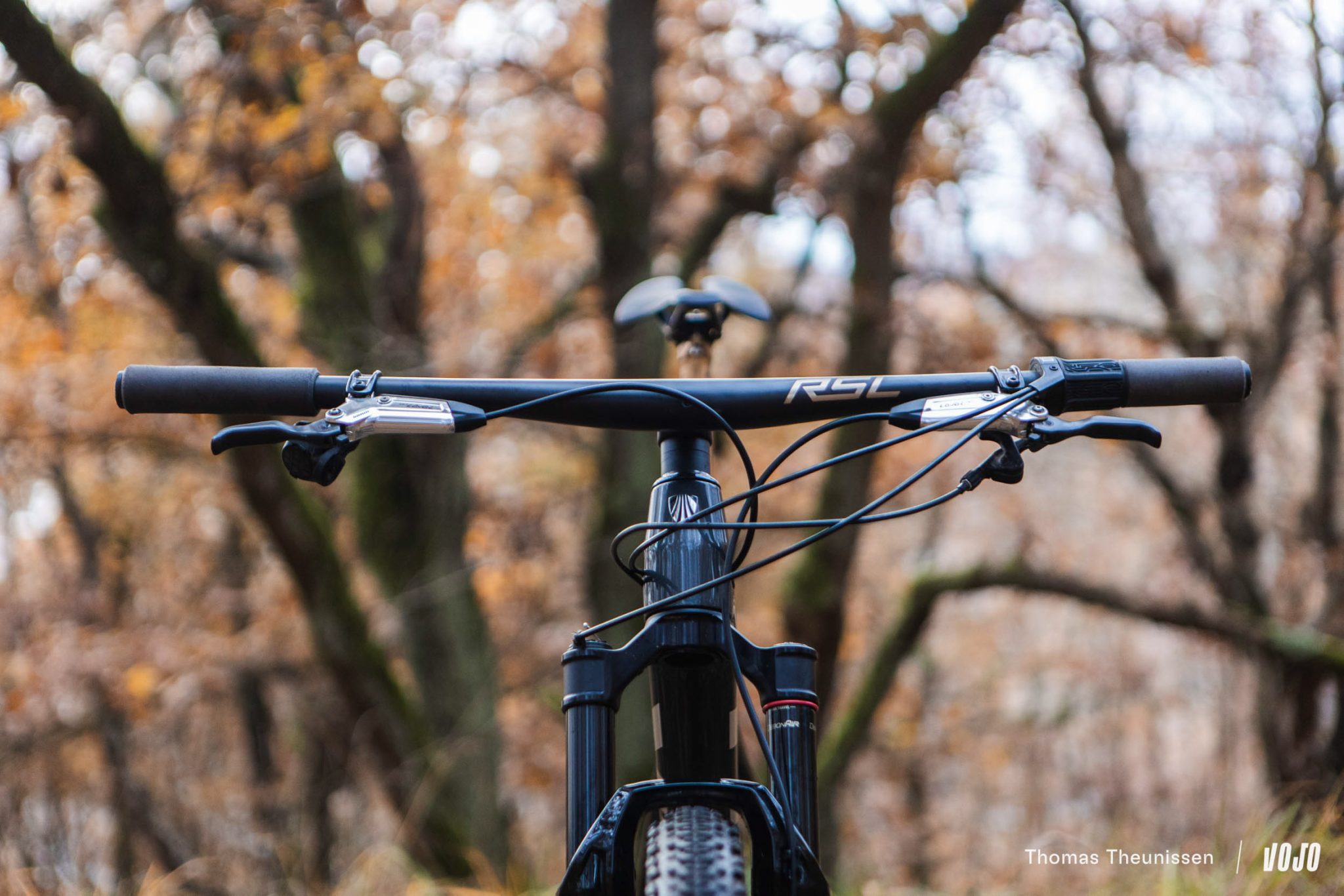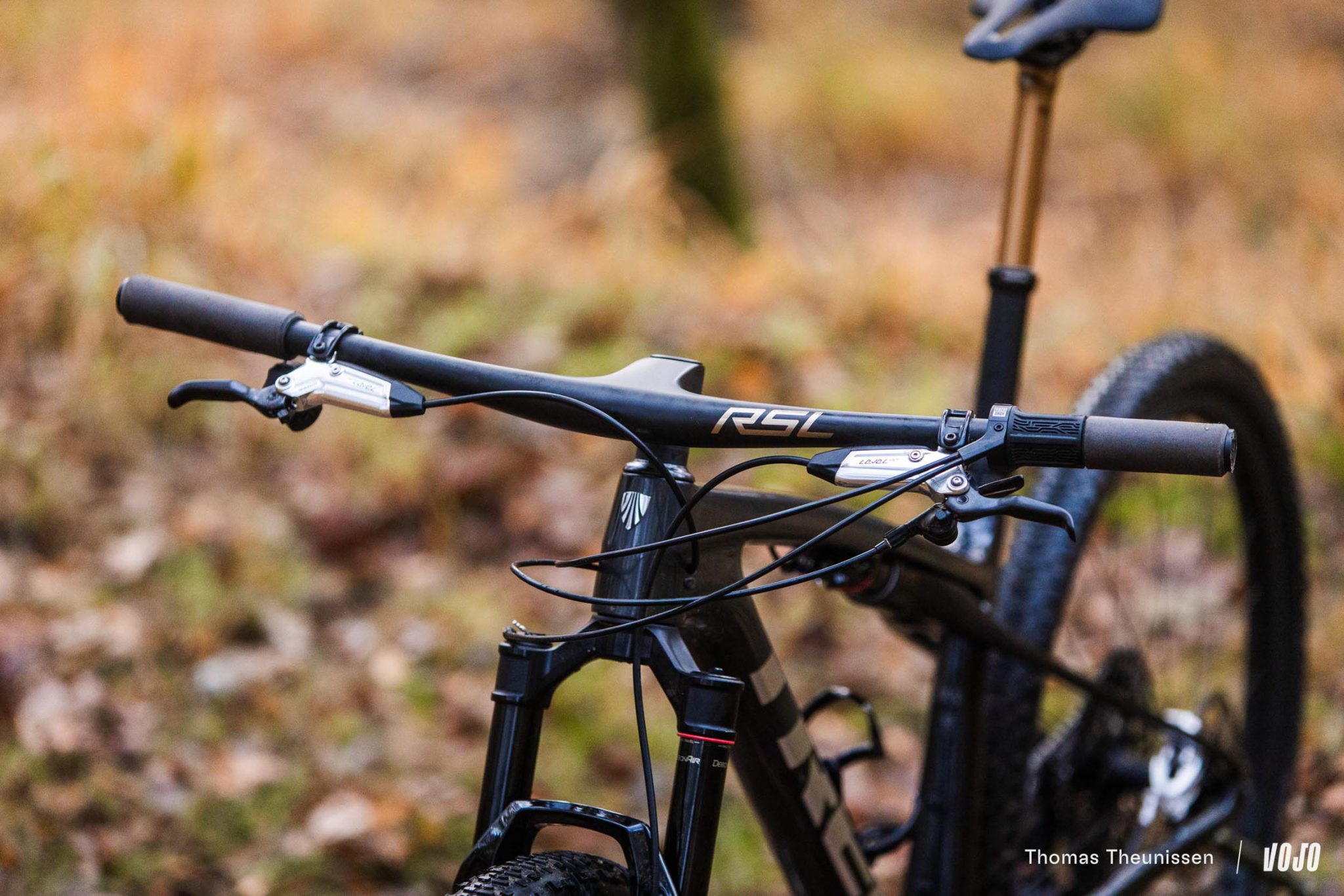 Le train roulant est composé des exclusives Bontrager Kovee RSL, chaussées de pneumatiques Bontrager Sainte-Anne RSL XR à l’avant et Pirelli Scorpion XC à l’arrière, tous deux en 2,20″ de section. Notons toutefois que le cadre est en mesure de recevoir des pneus jusque 2,4″ de section.
