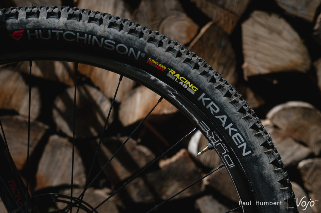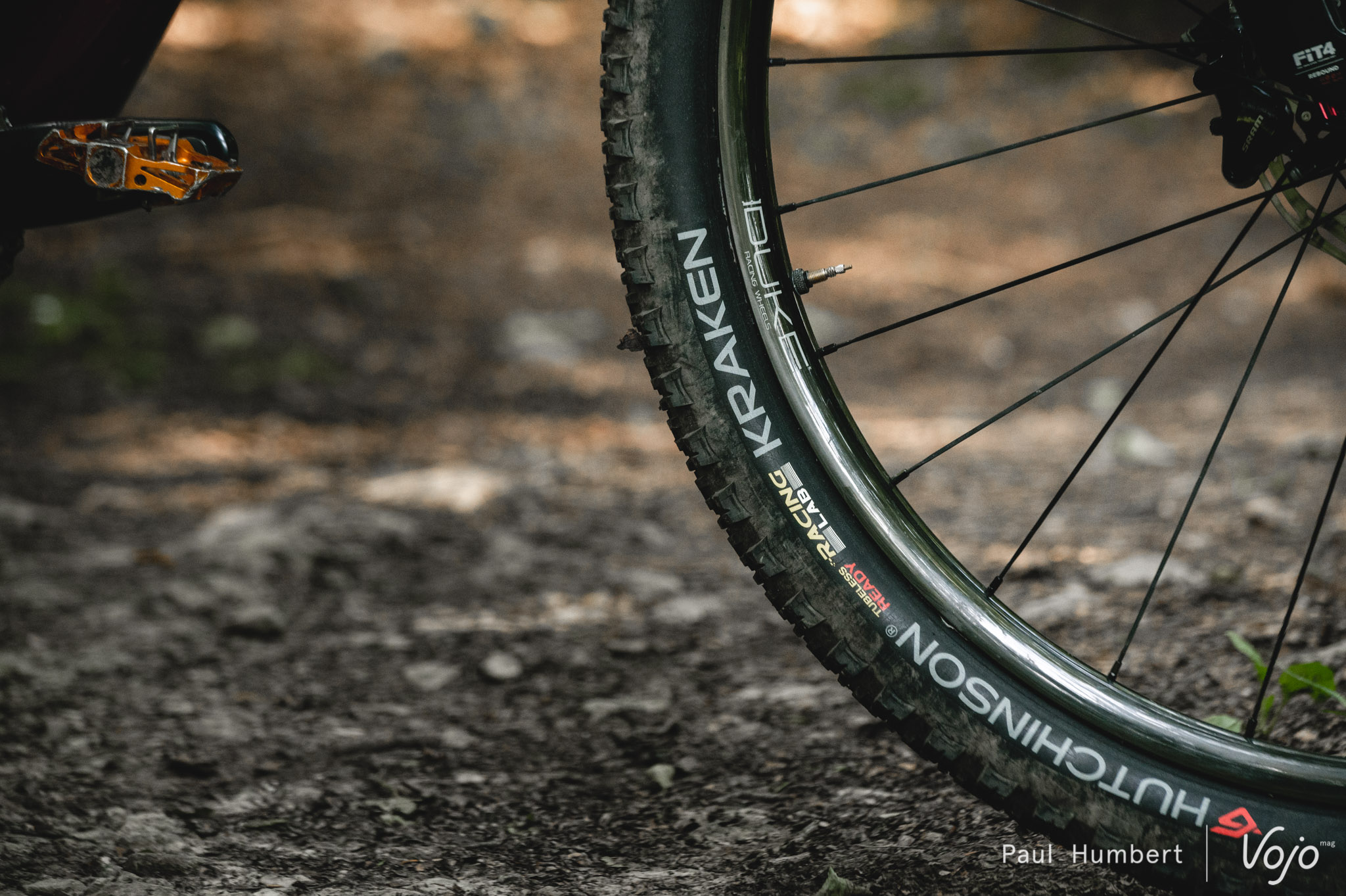 Un passage par la case atelier s’impose pour donner au vélo un comportement un peu plus digne d’un VTT moderne. Exit les Hutchinson Skeleton 2.15, on passe sur du plus large et plus cramponné. En ce qui nous concerne, nous avons opté pour un montage Mitas Monarch (AV) / Hutchinson Kraken (AR) ou Kraken (AV) / Skeleton (AR) selon les terrains et les conditions.