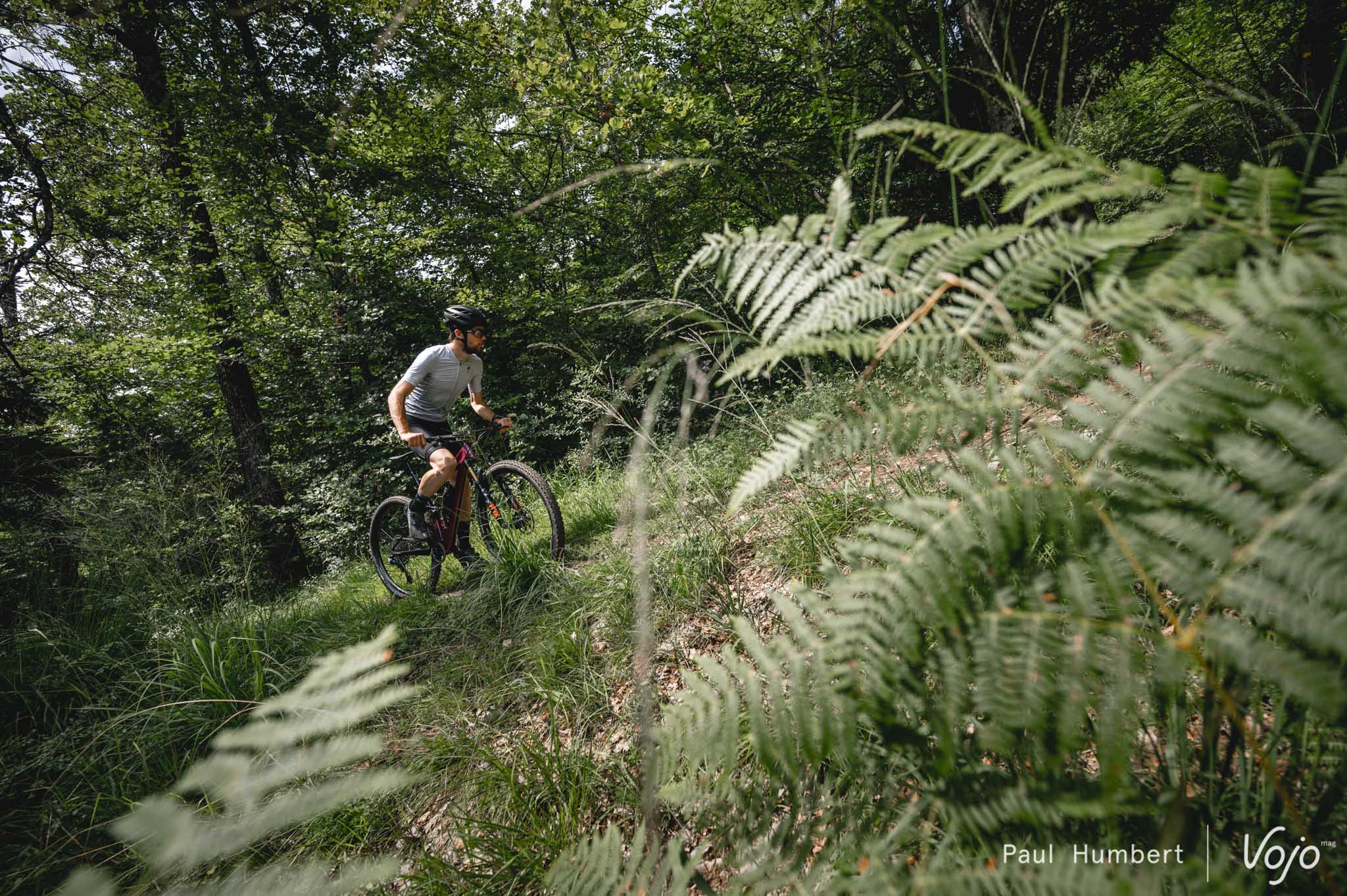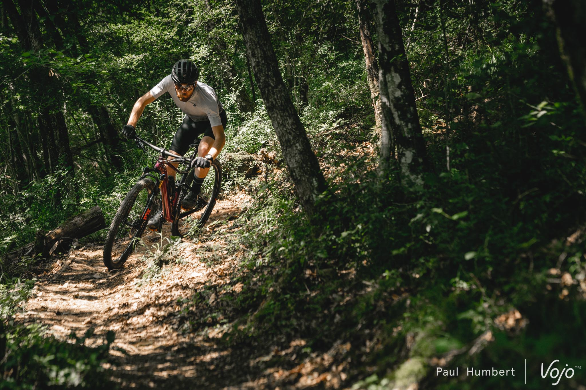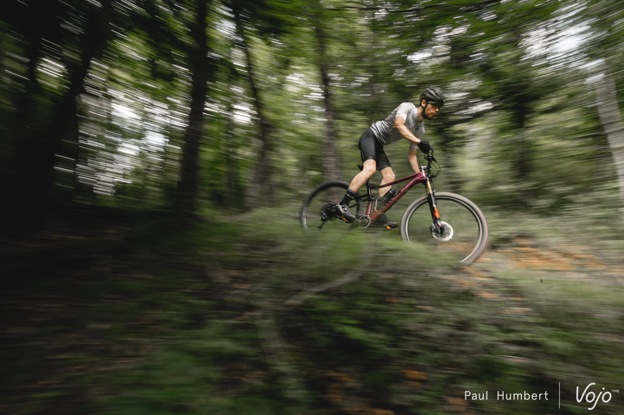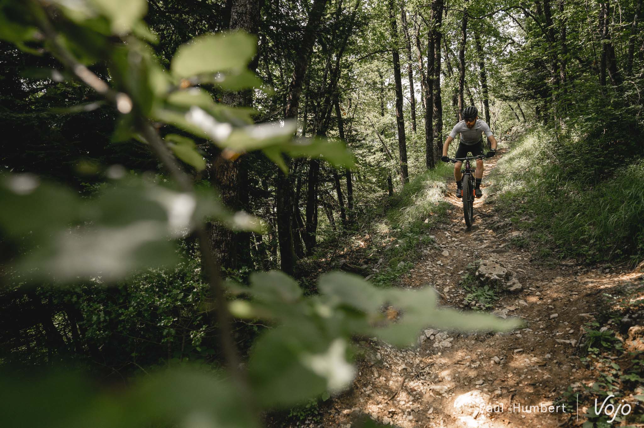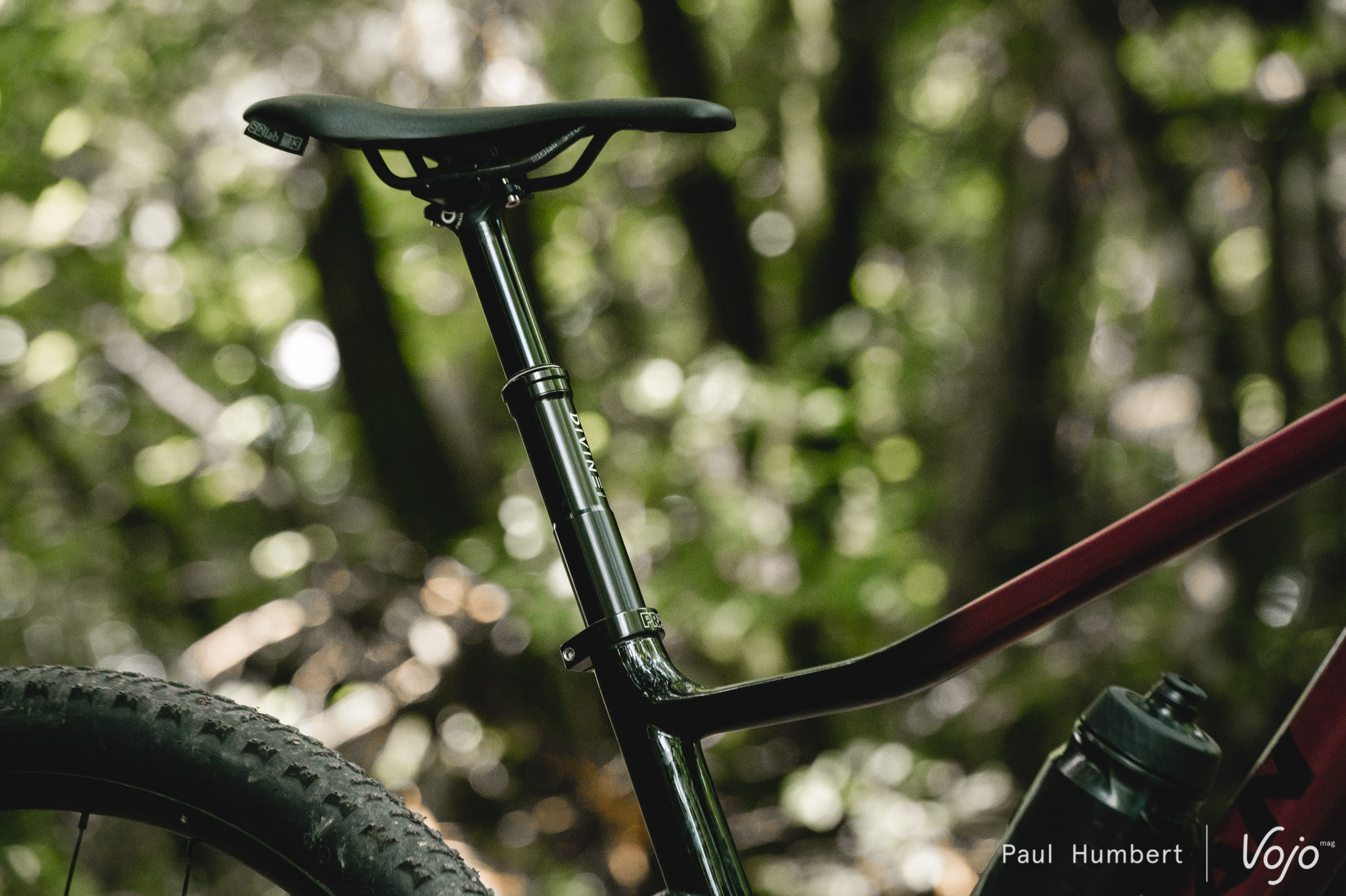 En descente en revanche, c’est une autre histoire. On ne va pas tourner autour du pot, nous n’avons vraiment pas pris de plaisir avec le Panache TS+ dans son montage d’origine. On ne se sent pas à l’aise malgré la tige de selle télescopique, déséquilibré sur l’avant dès que la pente se fait un peu raide ou qu’on lance un bunny-up, et le pneu avant ne fait rien pour arranger les choses, on atteint vite ses limites.