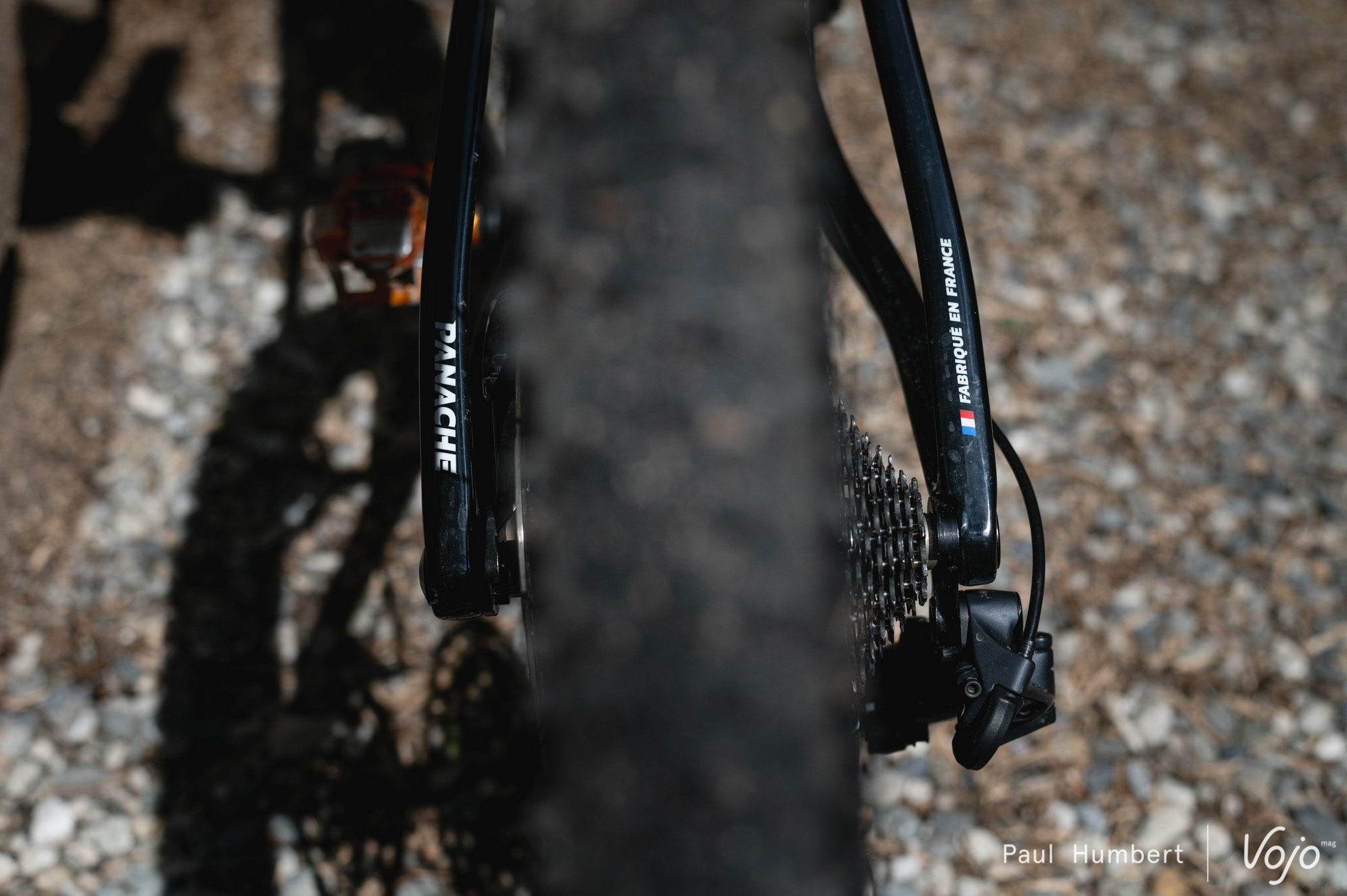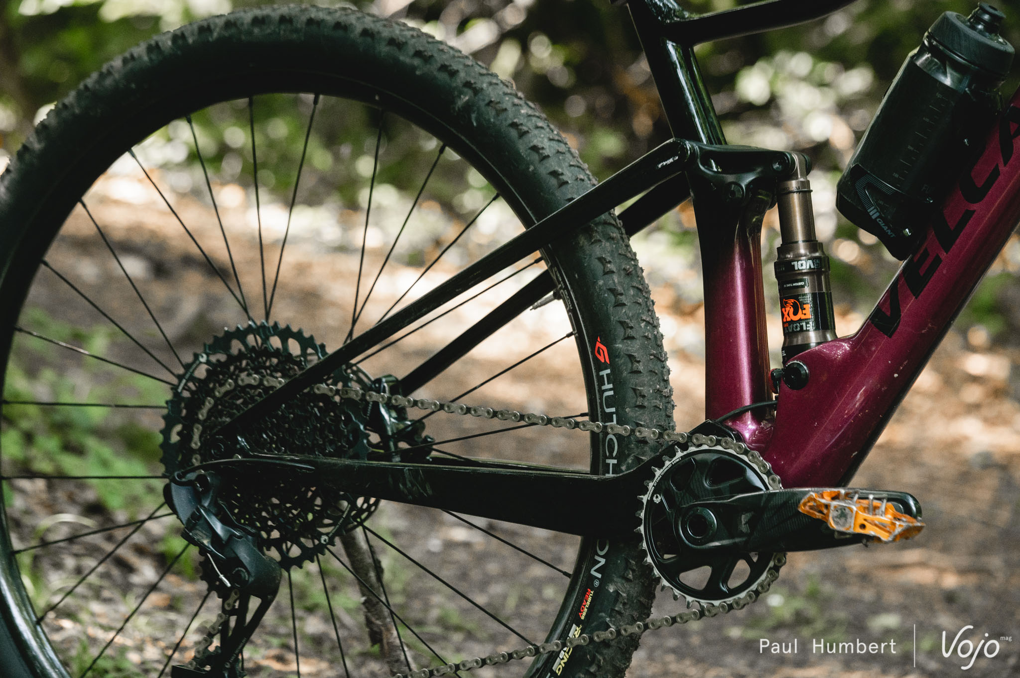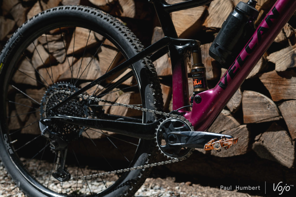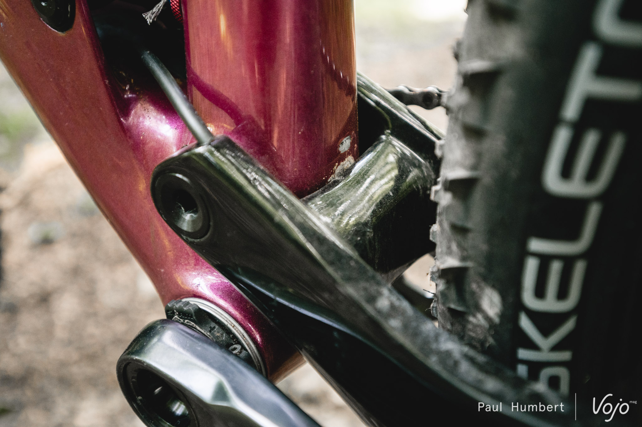 Les plus observateurs auront également remarqué que notre cadre est comme « poncé » derrière le tube de selle. Il s’agit ici du triangle arrière qui venait frotter sur le triangle avant lorsque la suspension était détendue ou fortement compressée mais Velcan nous a confirmé que ce problème est réglé depuis plusieurs mois, le cadre a été légèrement modifié pour laisser plus de place.