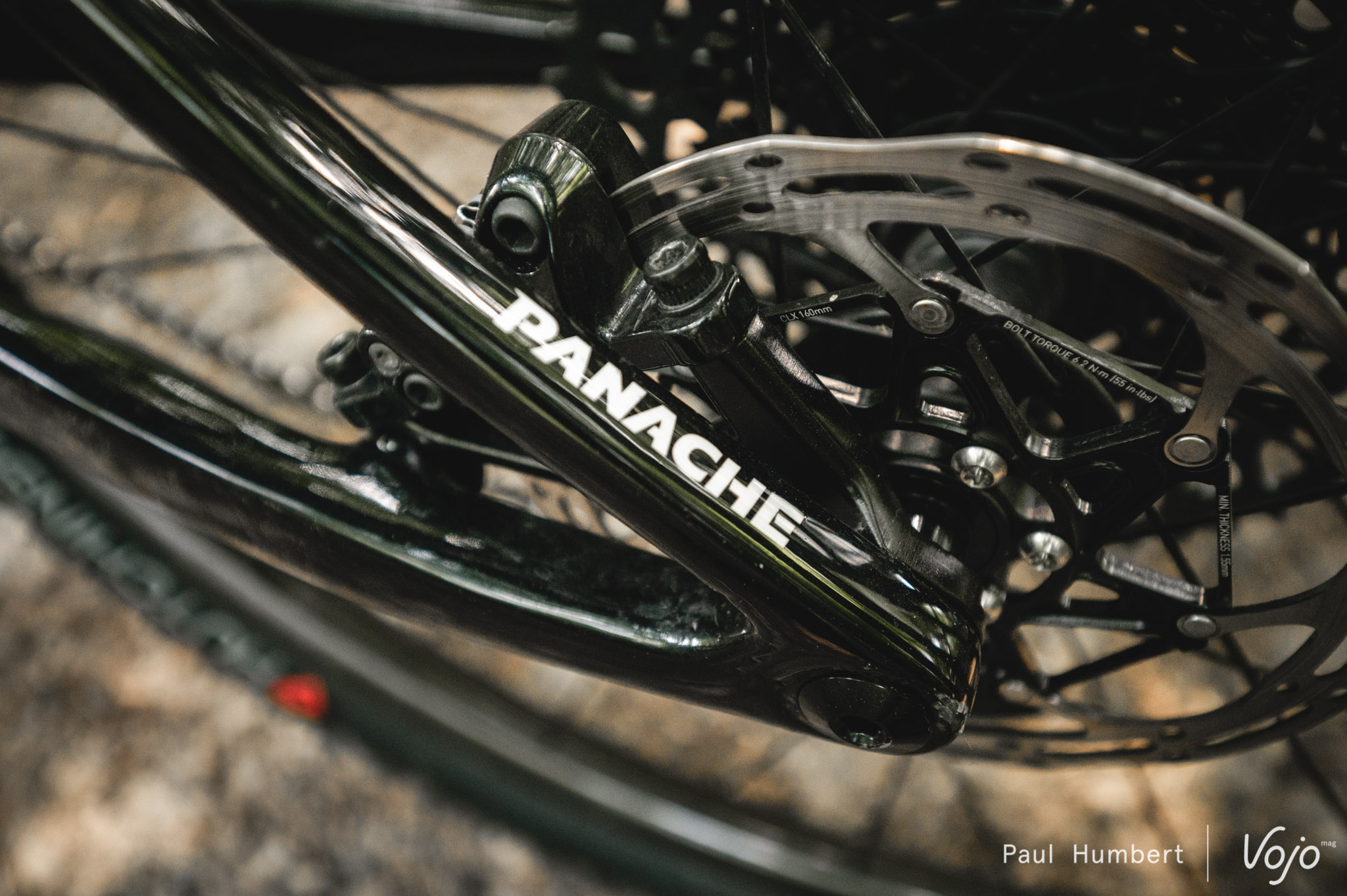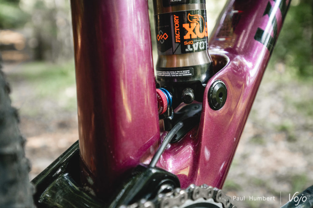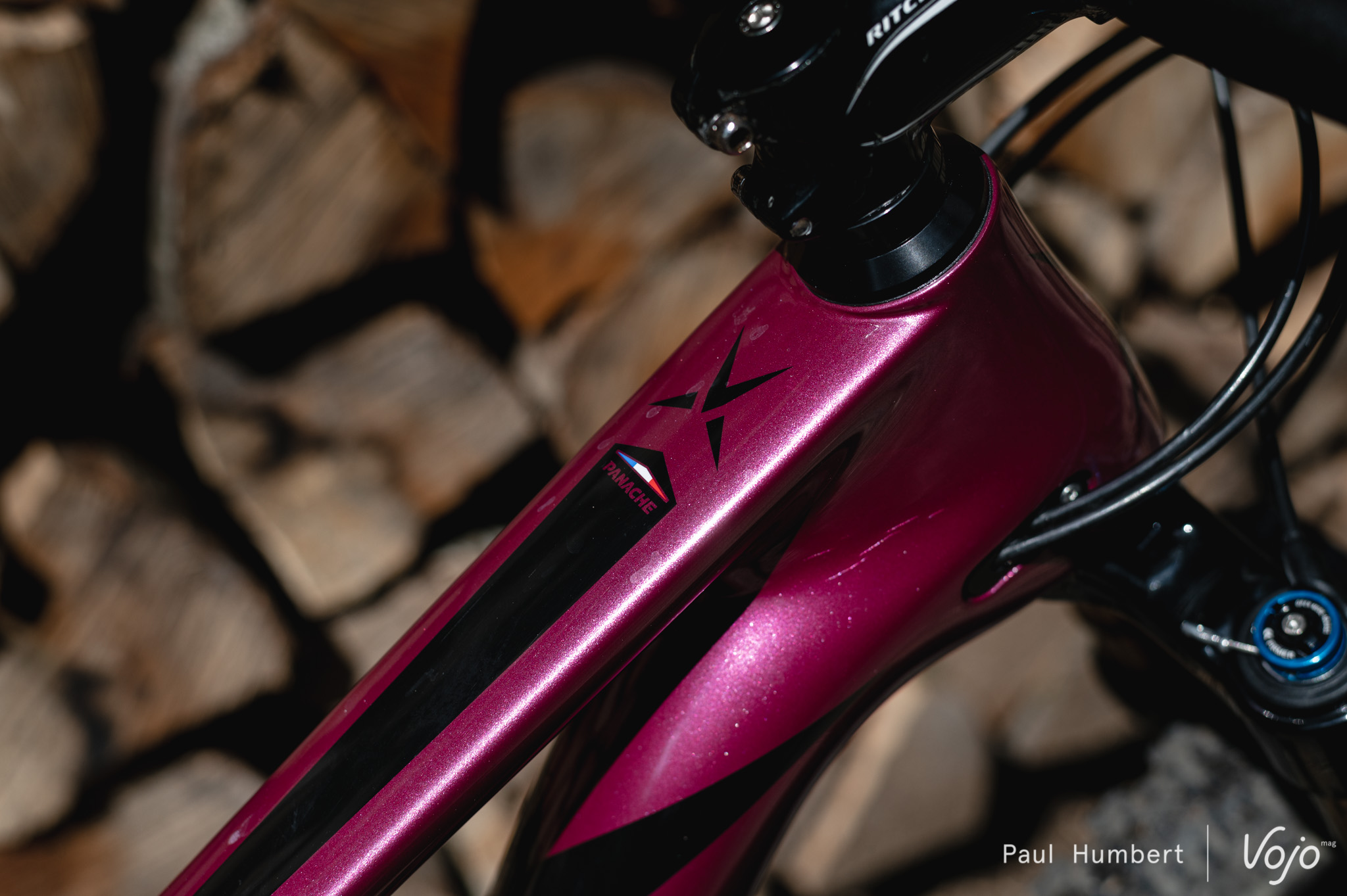 Le cadre étant identique à celui du Panache TS, on imagine que les 10 mm de débattements supplémentaires sont obtenus grâce à l’utilisation d’un amortisseur à la course plus longue pour le même entraxe. Cela reste toutefois une supposition car la marque n’a pas été en mesure de nous confirmer cette information.