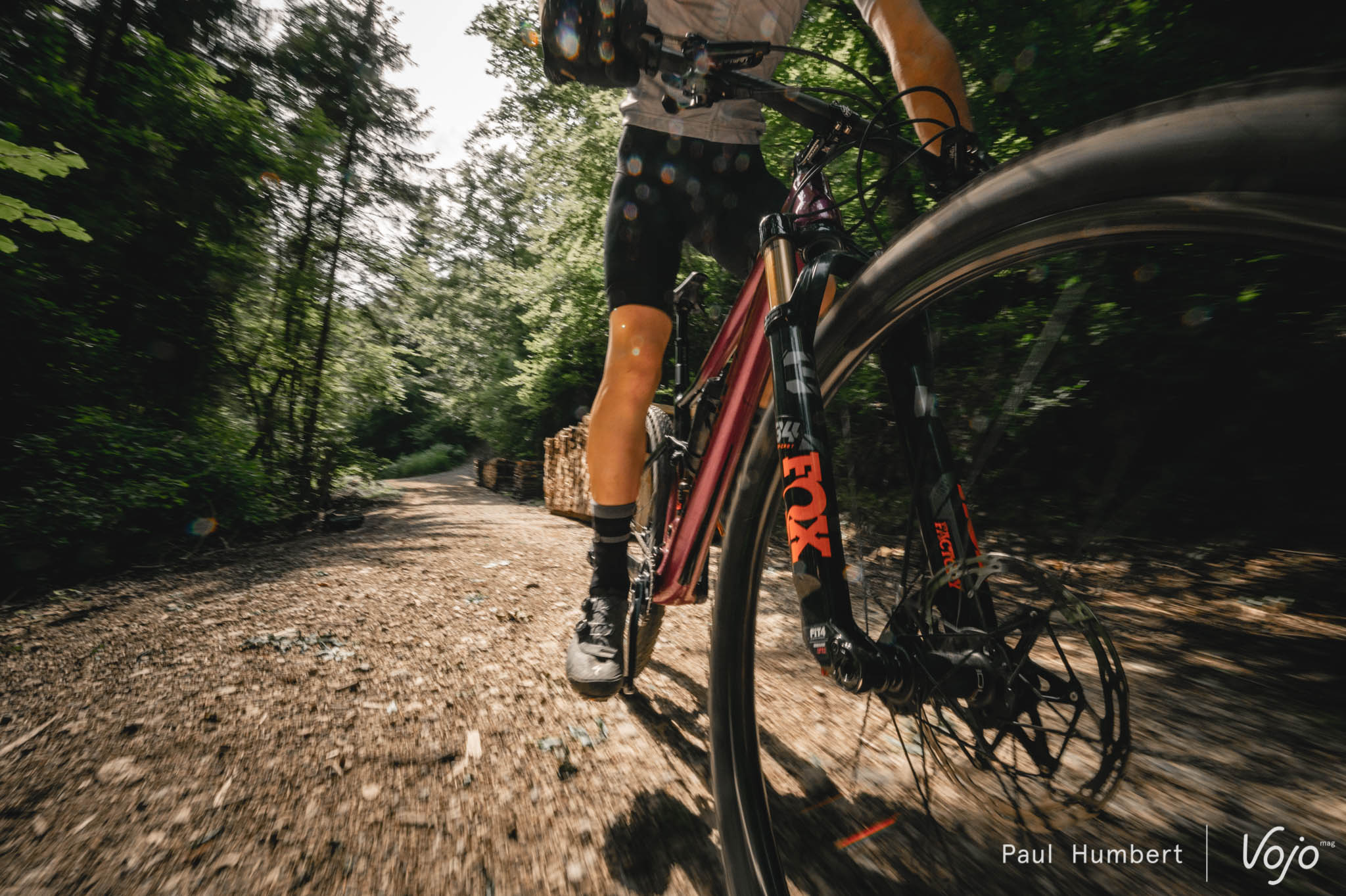 Sur route ou piste lisse, on n’hésite pas à activer le blocage pour tirer tout le parti de ce comportement mais sur chemins, mieux vaut laisser les suspensions ouvertes pour garder un peu de grip.