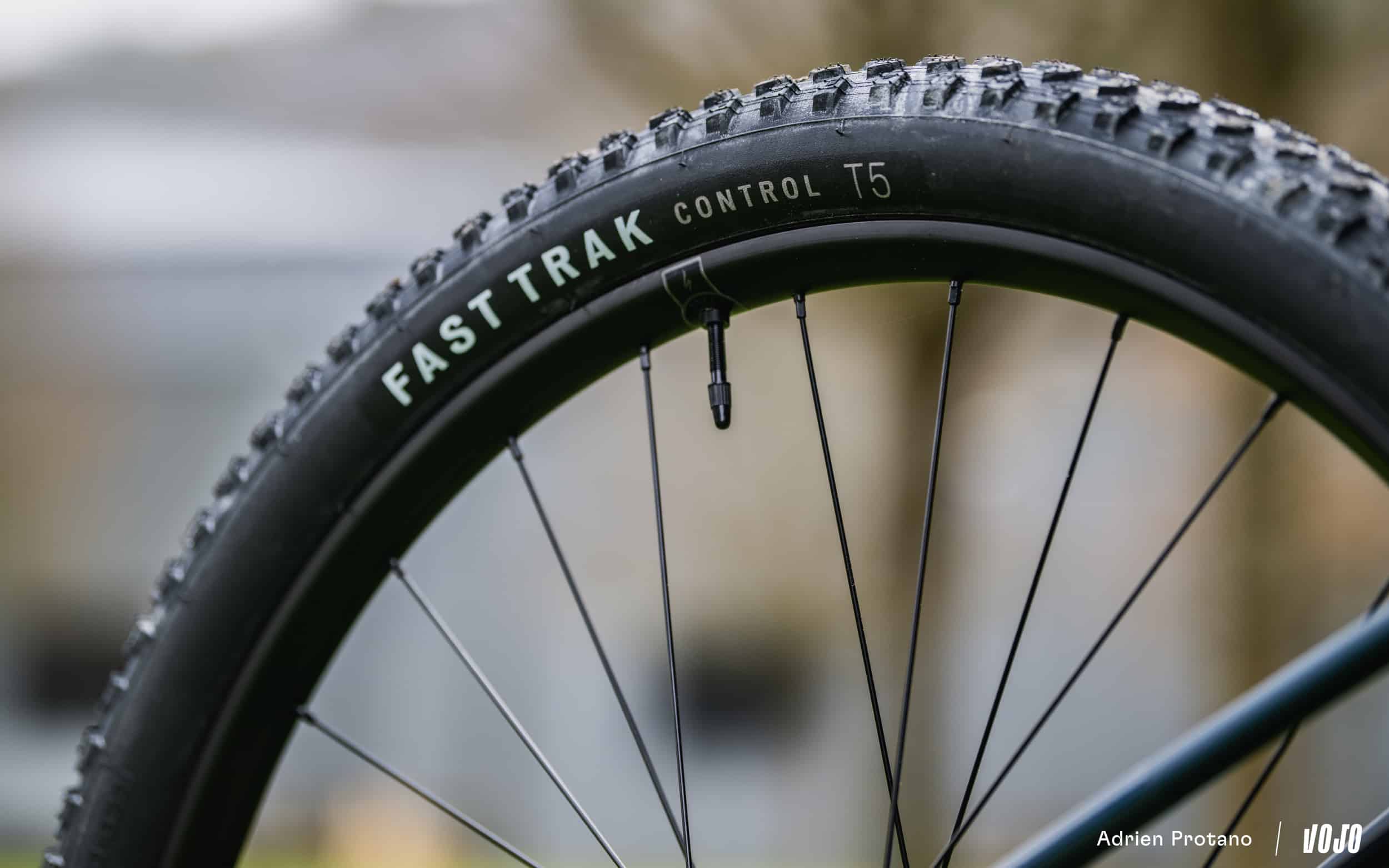 Les roues en aluminium sont maison (largeur interne de 30 mm) et chaussées de pneumatiques Specialized Purgatory (2.4, T9, Grid) à l’avant et Specialized Ground Control (2.35, T7, Grid) à l’arrière.