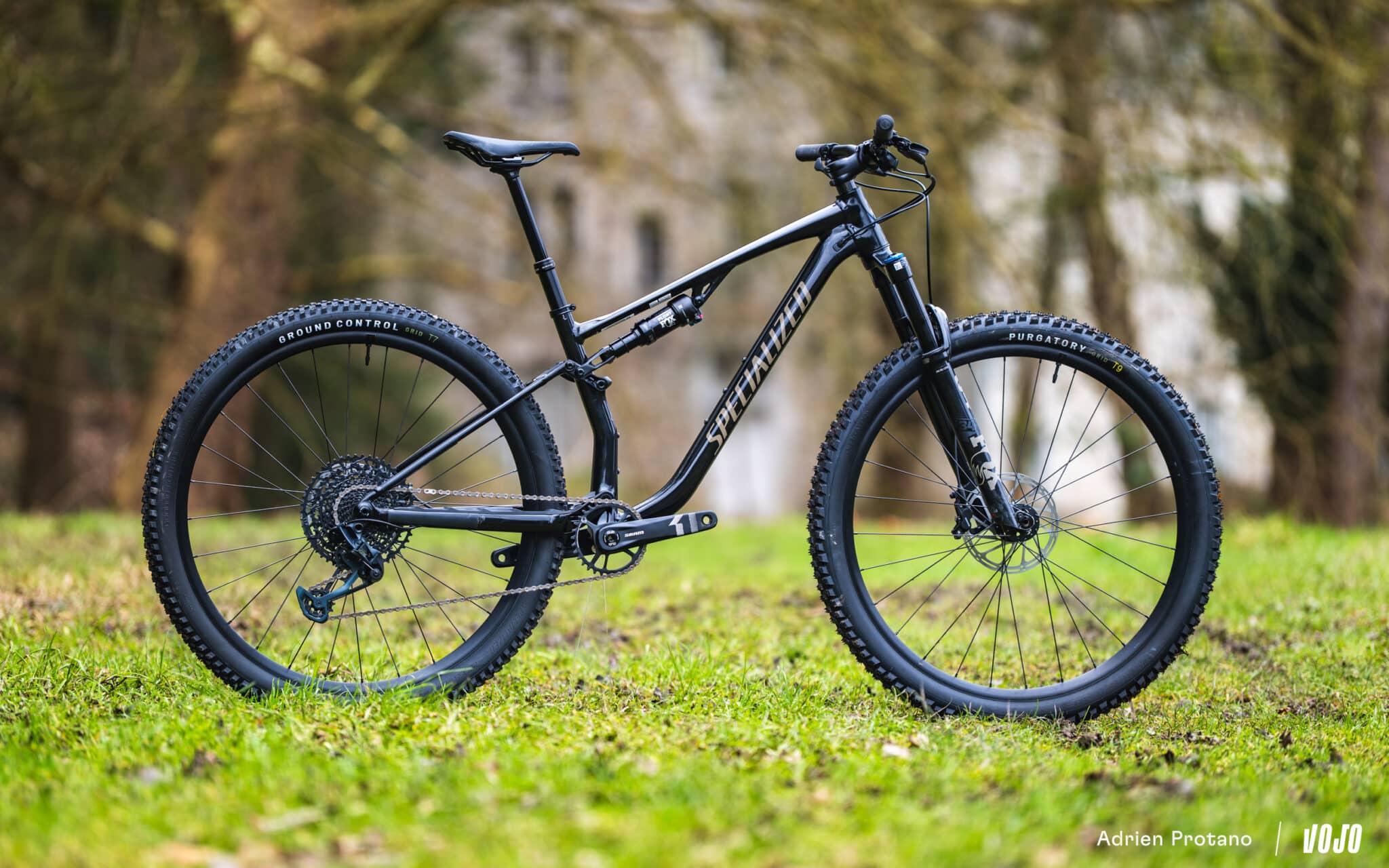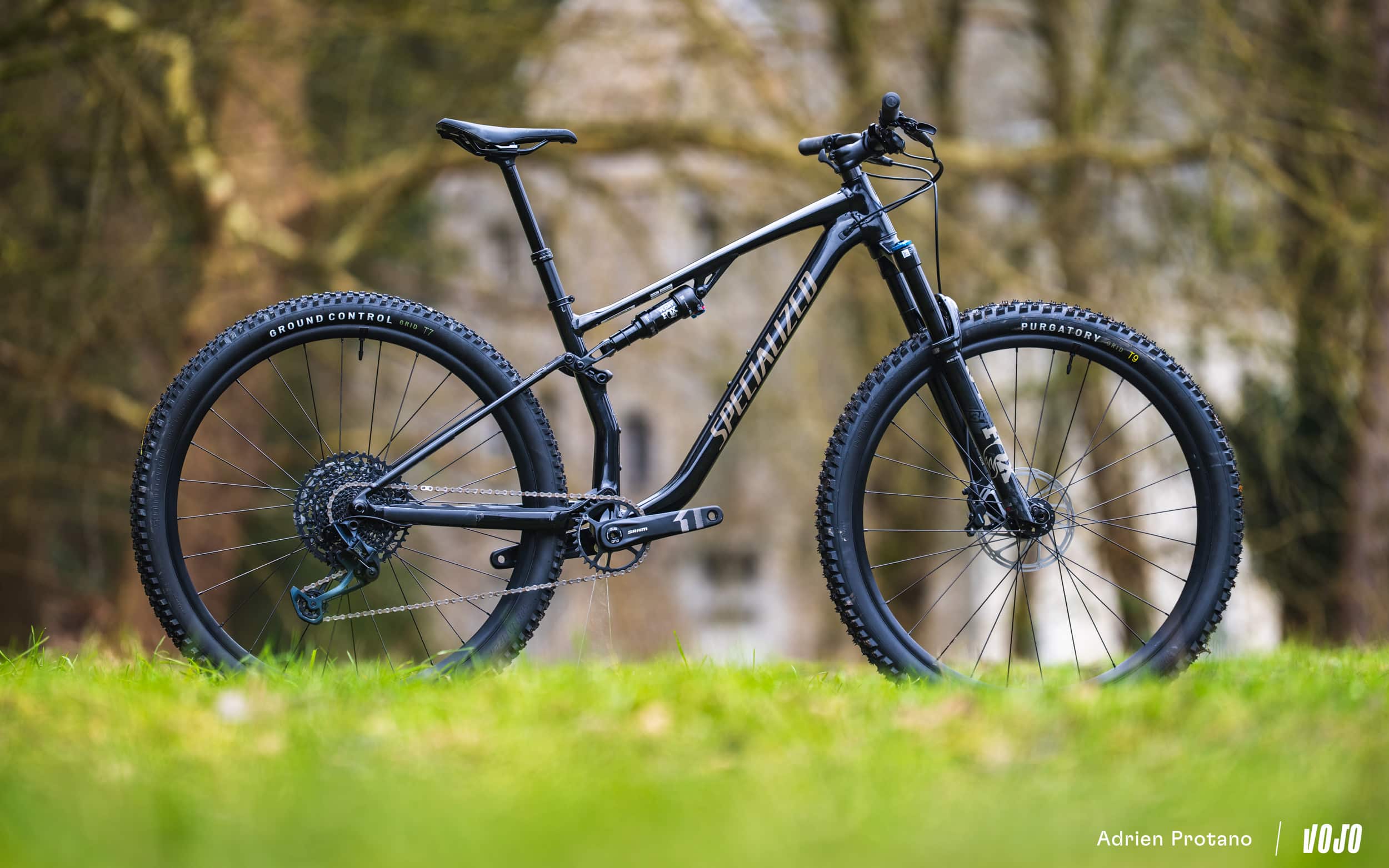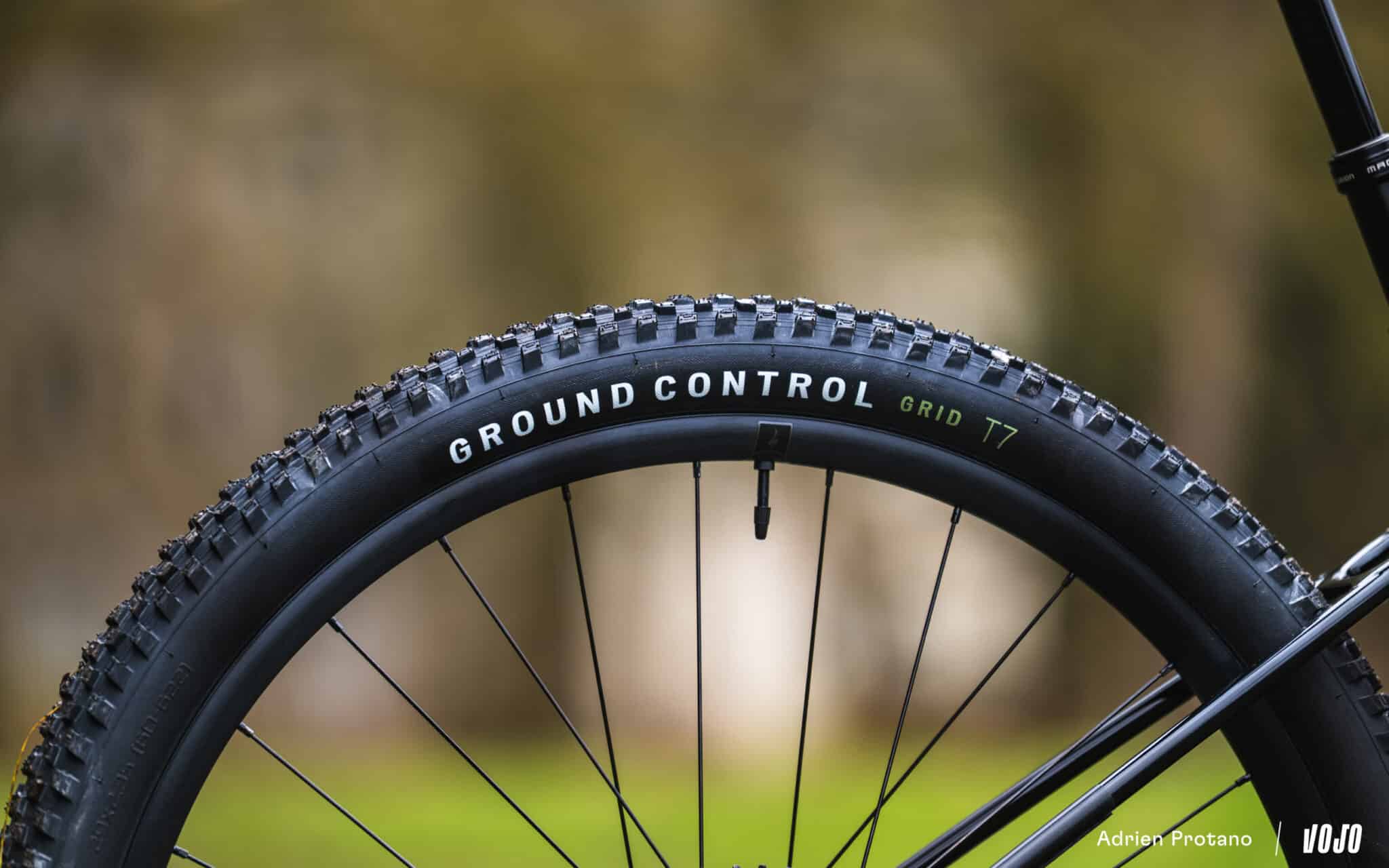 Les roues en aluminium sont maison (largeur interne de 30 mm) et chaussées de pneumatiques Specialized Purgatory (2.4, T9, Grid) à l’avant et Specialized Ground Control (2.35, T7, Grid) à l’arrière.