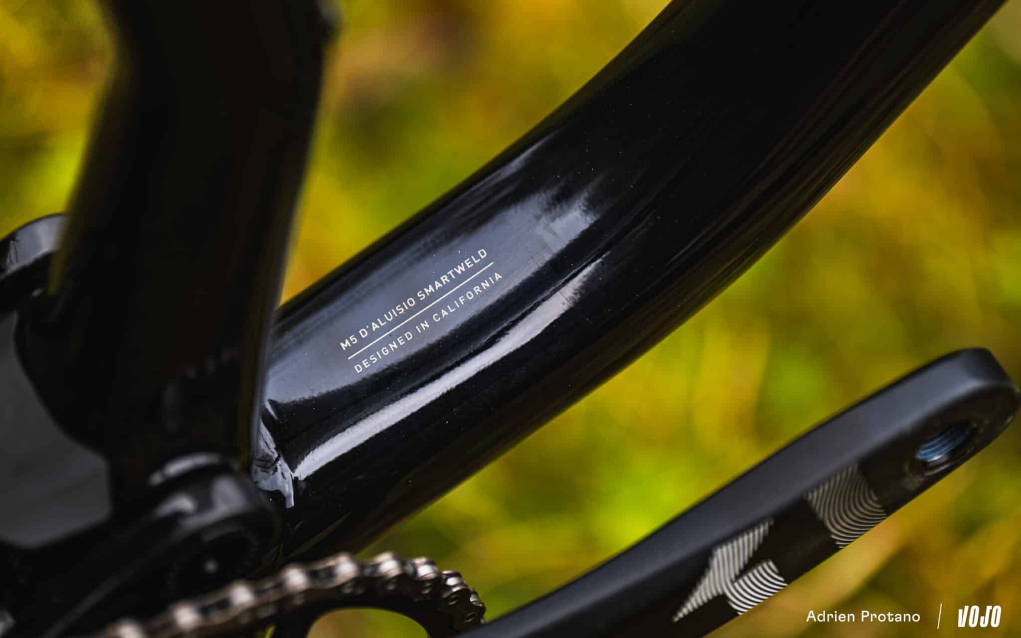 Qui dit aluminium, dit nécessairement soudures. Sur ce Chisel, celles-ci sont apparentes, mais très soignées. Côté fabrication, elles reprennent la technologie « D’Aluisio Smartweld », déjà vue chez Specialized sur certains modèles de route (Allez Sprint) ou de cyclocross (Crux). Cette technique promet, selon la marque, « un point de connexion plus rigide, plus durable et plus cohérent que tout ce qui existe sur le marché ». Une méthode haut de gamme, qu’on ne retrouve que sur les cadres performance de Specialized. L’idée est d’éloigner les soudures des points de faiblesse des tubes pour optimiser leurs formes et donc le poids.