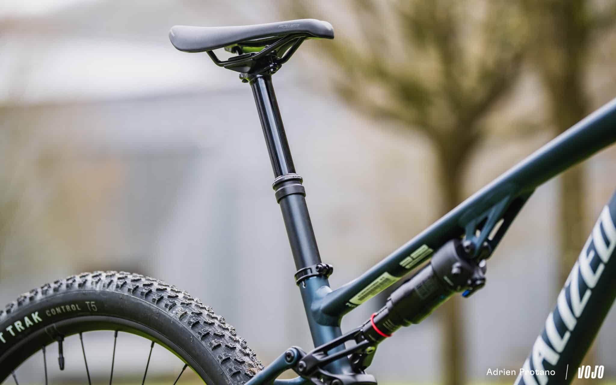 Les deux modèles (Chisel et Chisel EVO sont équipés d’une tige de selle télescopique de série, une (très) bonne décision de la part de Specialized. C’est ici une TranzX de 125 mm en taille M (150 mm en taille L) assez sommaire que l’on retrouve.