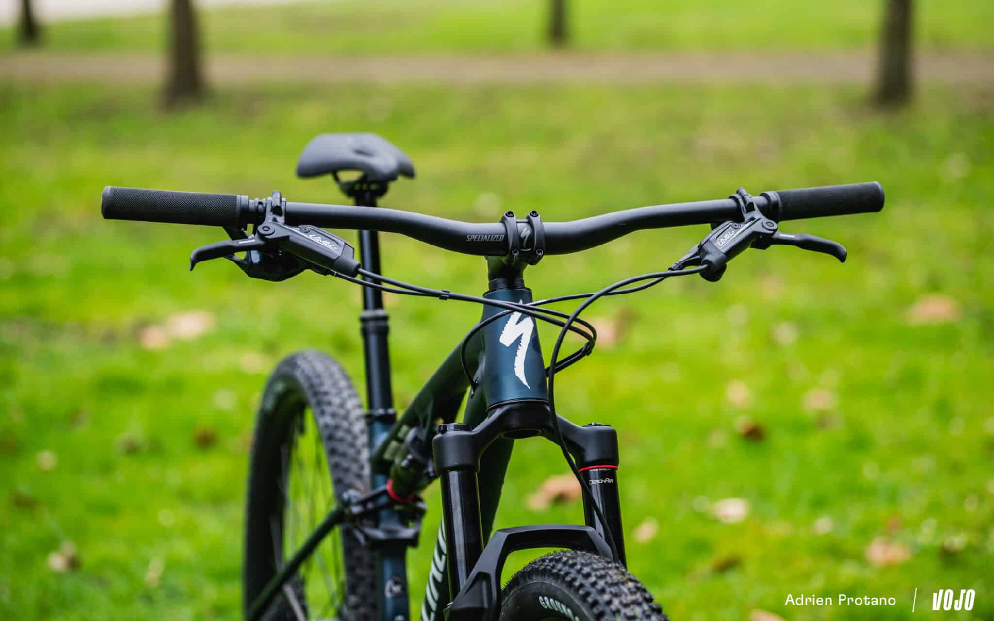 Specialized annonce d’ailleurs que ces 110 mm arrière offrent un comportement « à mi-chemin entre un Epic et un Epic Evo ». Autrement dit, un peu moins exigeant que l’Epic pur jus, mais un peu plus ferme et dynamique que l’Epic Evo quand ce dernier est en position ouverte (voir notre essai du Specialized Epic Evo 8 : virage vers le all-mountain). Car oui, on l’a déjà dit : le Chisel reste avant tout un vélo sportif.