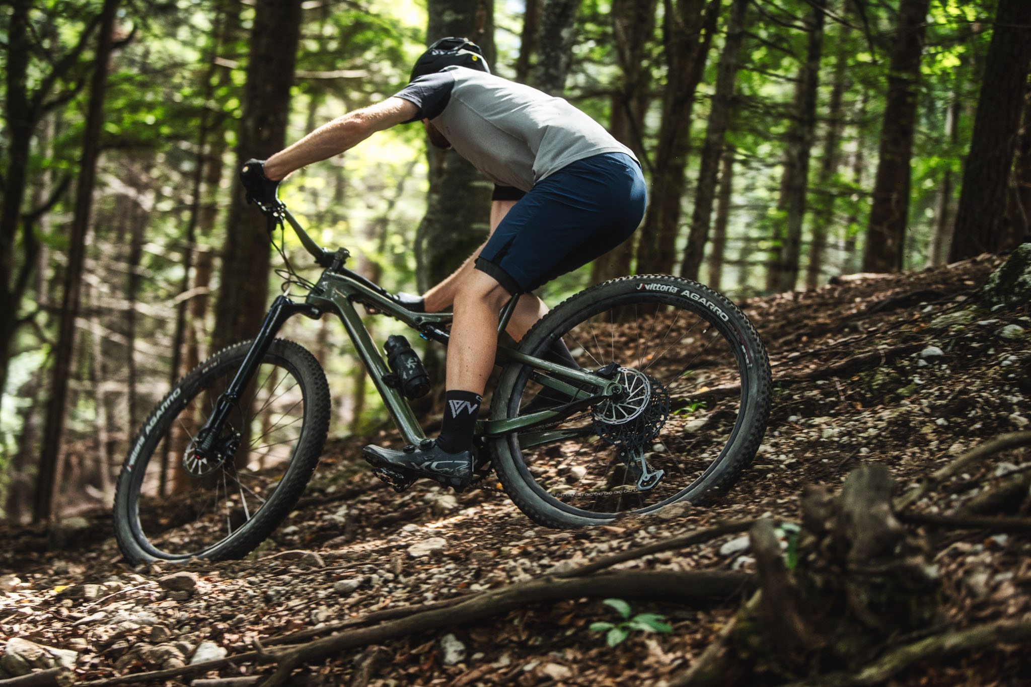 En fait, on ne le sent pas… du tout. Sur le plat au milieu des racines, dans un pierrier ou en descente, on n’a jamais eu l’impression d’avoir un insert qui modifiait ou perturbait le comportement du pneu comme c’était le cas avec les autres modèles (plus typés enduro) qu’on avait pu essayer. Si on ne l’avait pas installé nous-même, on n’aurait même probablement jamais deviné qu’il était là, et à nos yeux c’est une excellente chose.
