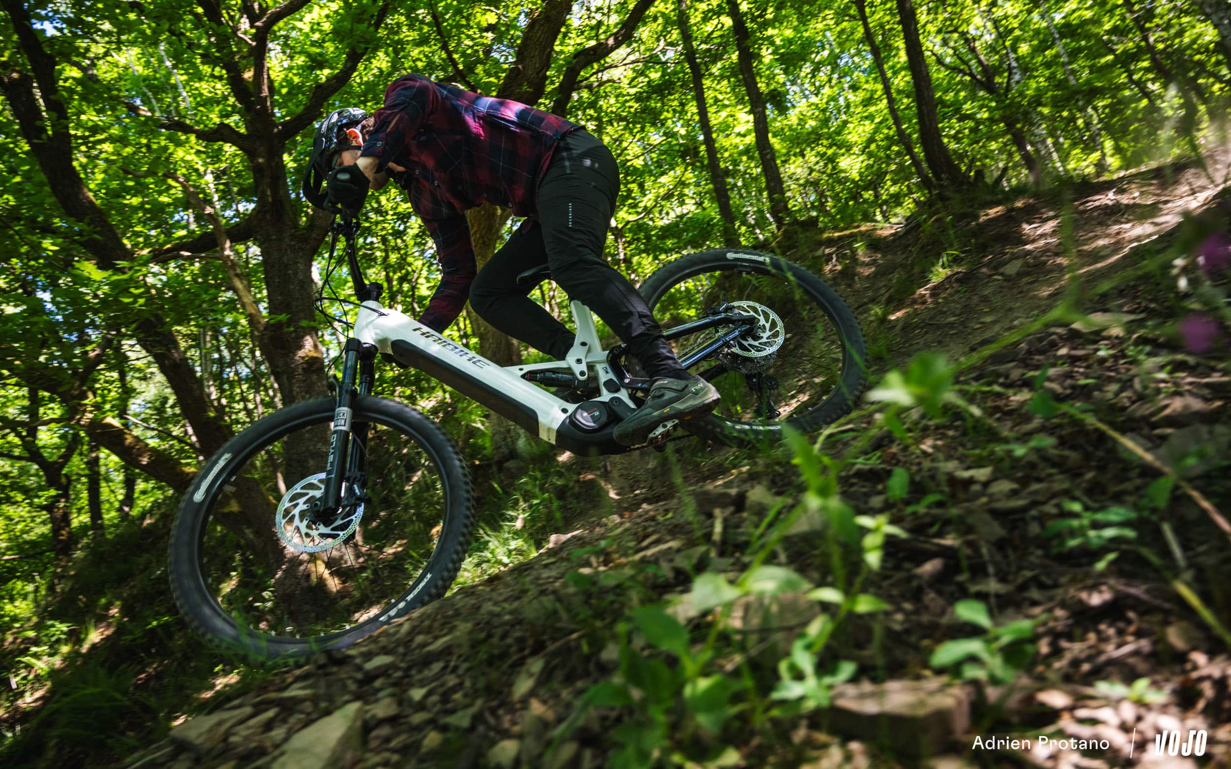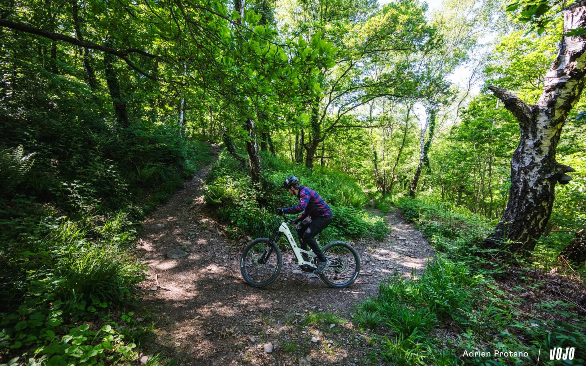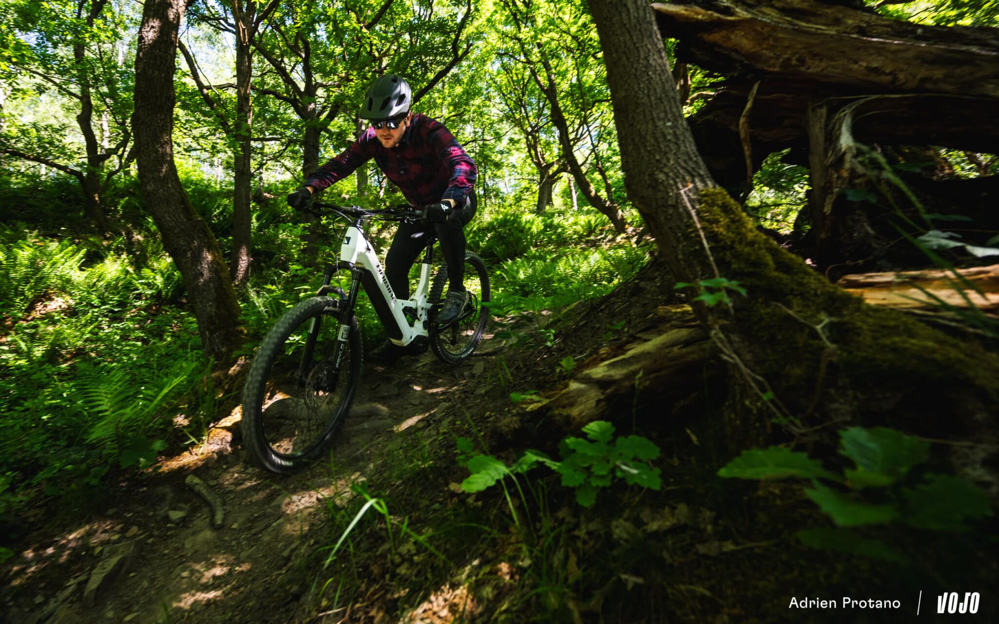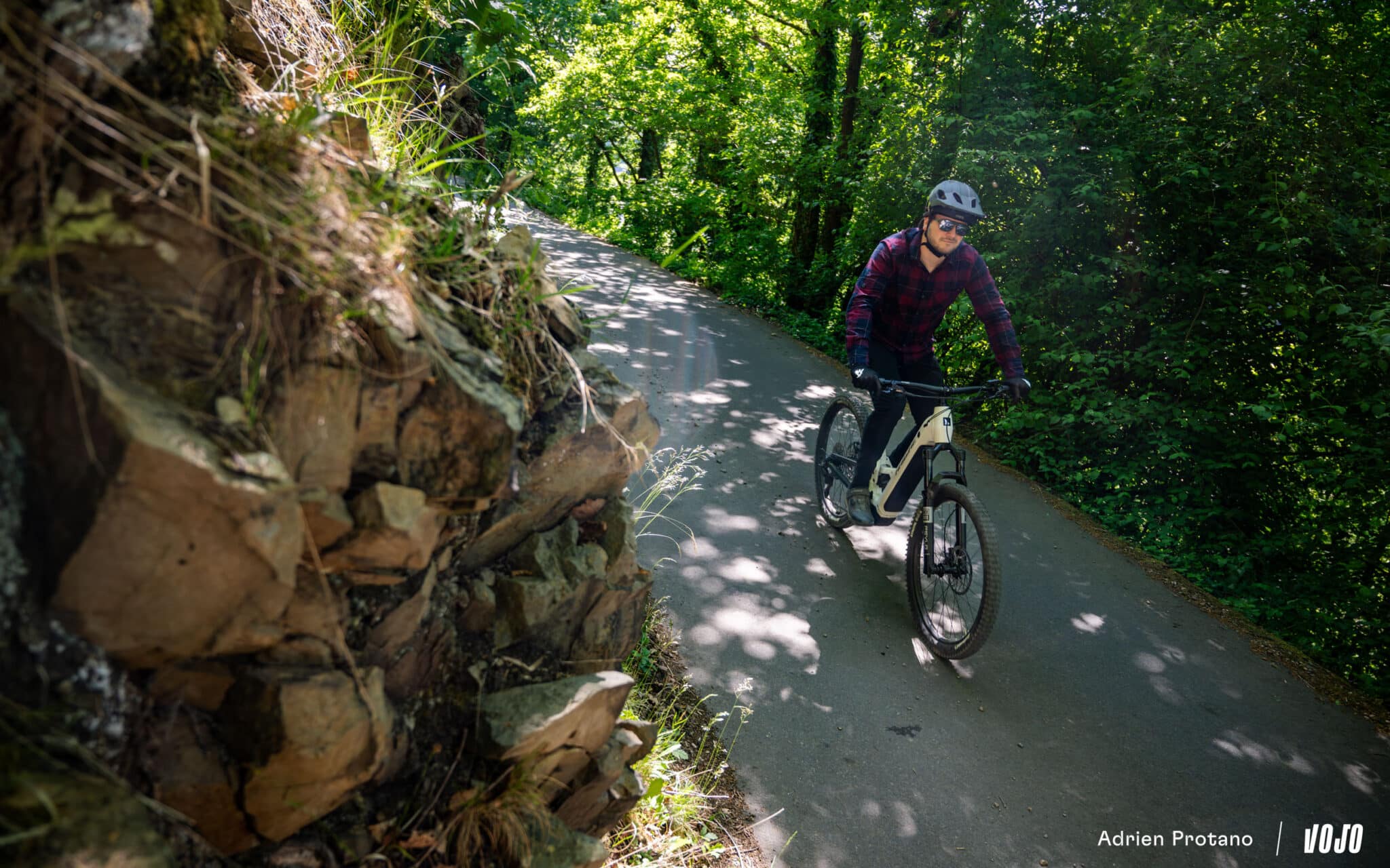 Ces sensations de stabilité et de bien coller au sol sont perceptibles en descente, mais aussi en montée technique où la suspension arrière procure un excellent grip tout en pompant très peu. Ce qui nous a permis de venir à bout de certaines grimpettes où on pensait à la base qu’on allait échouer lamentablement. C’est d’ailleurs un des rares cas où nous avons utilisé le mode eMTB sur le moteur Bosch, car, pour le reste, le vélo invite plus à la balade et à l’usage du mode Tour+ plus doux, qu’aux modes les plus élevés.