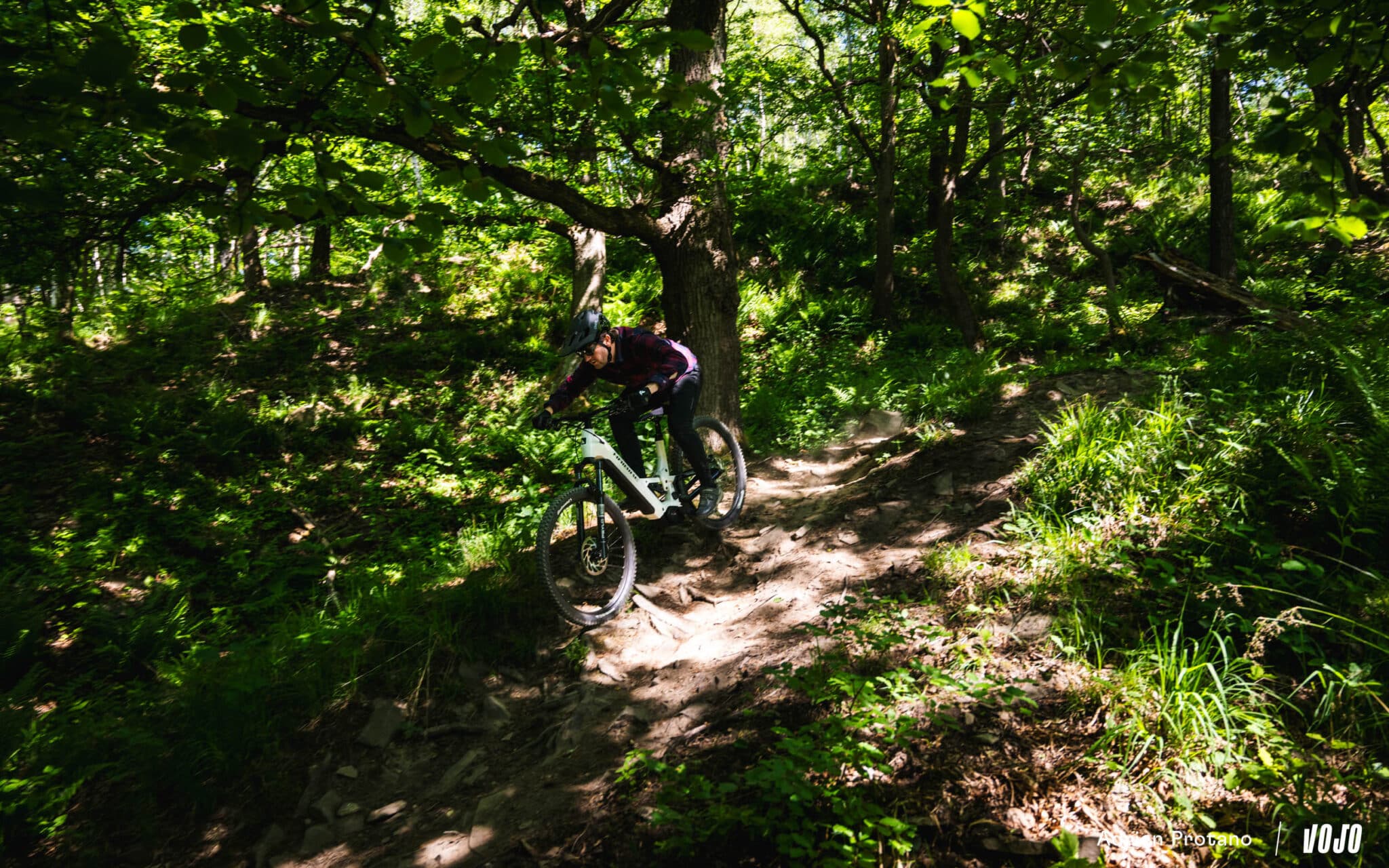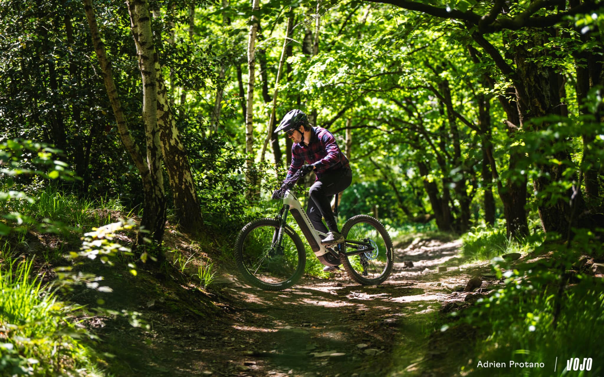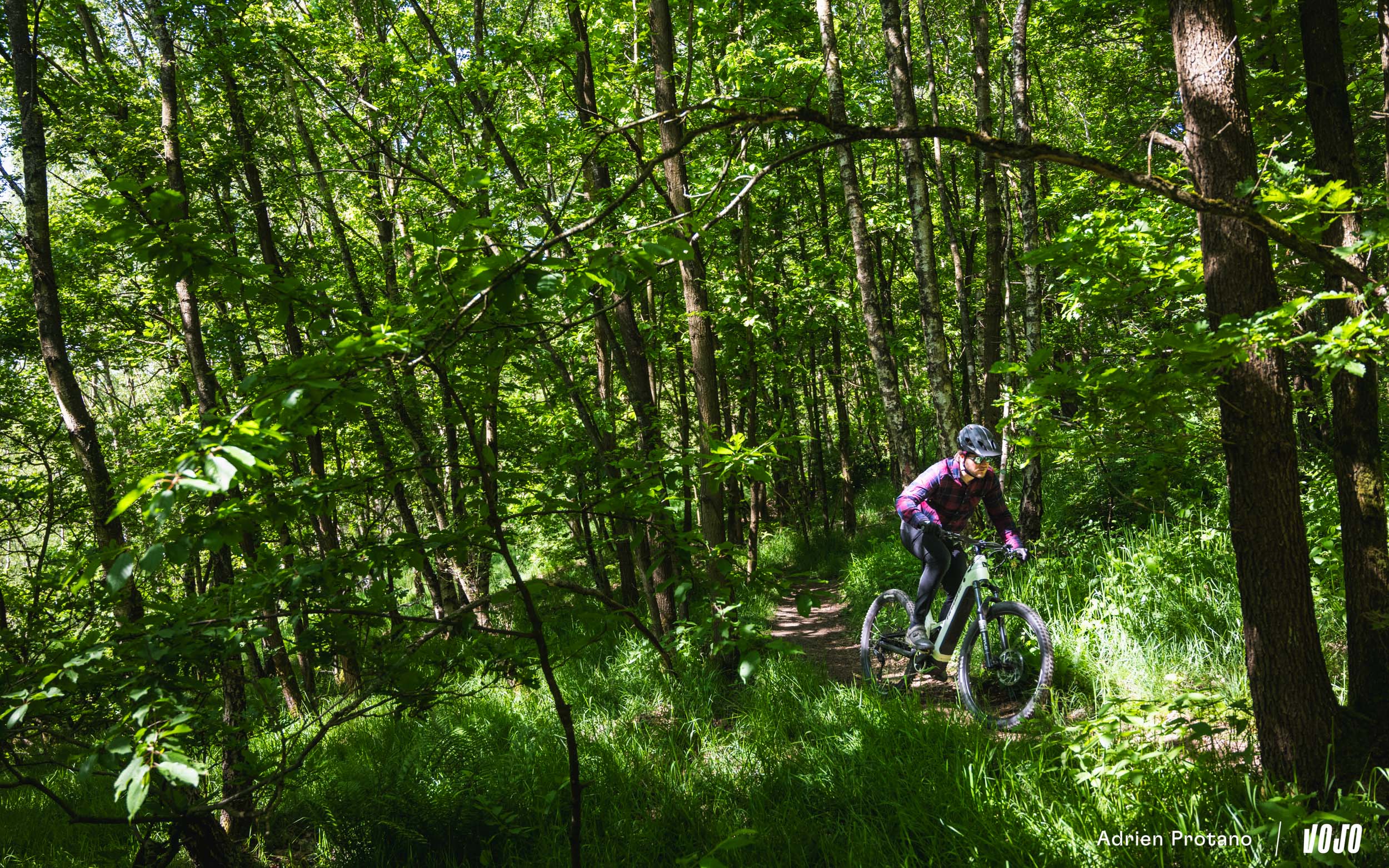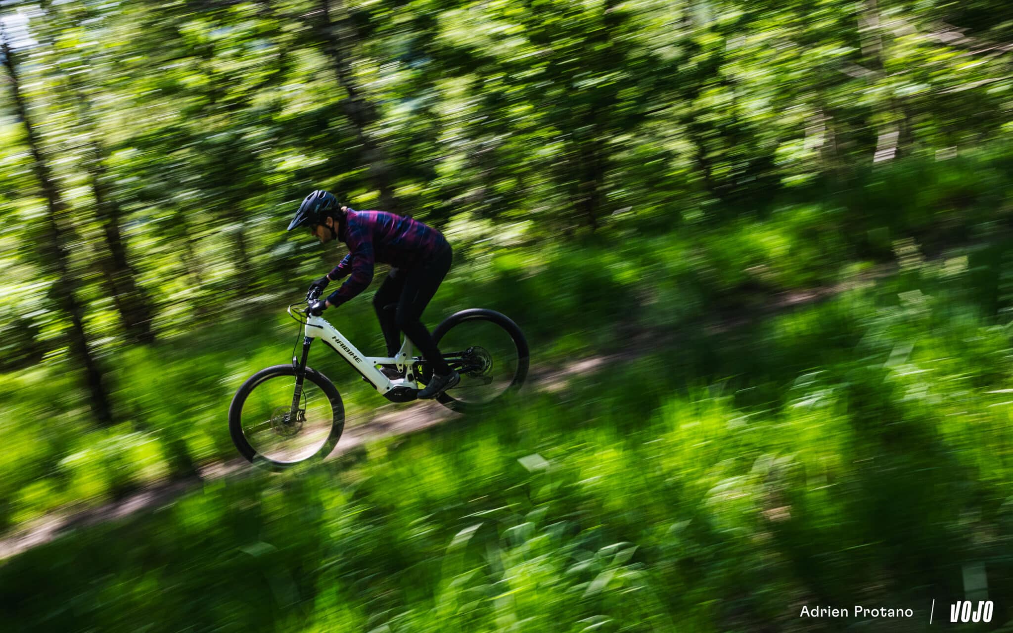 Ces sensations de stabilité et de bien coller au sol sont perceptibles en descente, mais aussi en montée technique où la suspension arrière procure un excellent grip tout en pompant très peu. Ce qui nous a permis de venir à bout de certaines grimpettes où on pensait à la base qu’on allait échouer lamentablement. C’est d’ailleurs un des rares cas où nous avons utilisé le mode eMTB sur le moteur Bosch, car, pour le reste, le vélo invite plus à la balade et à l’usage du mode Tour+ plus doux, qu’aux modes les plus élevés.