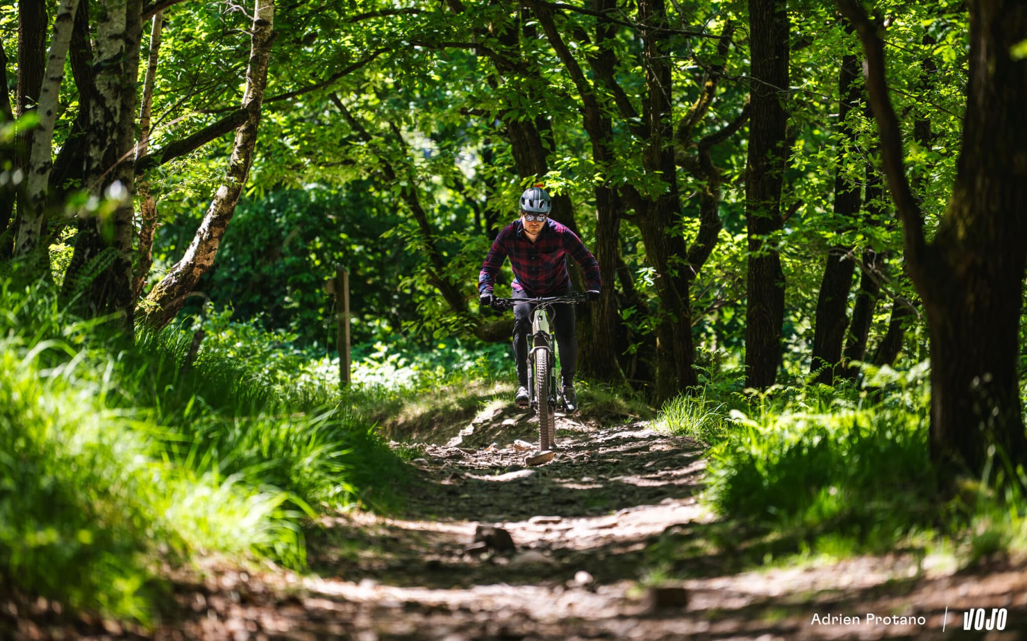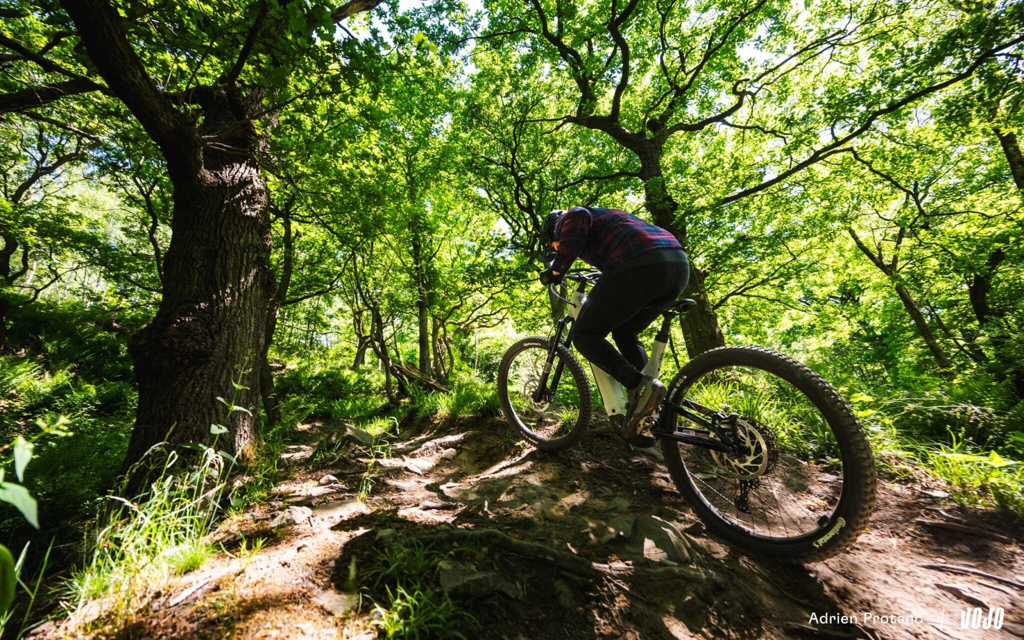 La fourche RockShox Psylo a un peu plus de mal quand on hausse le rythme, car on consomme vite son débattement (pas surprenant vu l’hydraulique basique à l’intérieur), mais elle tient quand même bien le coup. La suspension arrière est, quant à elle, carrément très efficace ! Elle se montre un peu ferme sur les moyens et gros impacts pris à bonne vitesse, mais force est de constater qu’elle permet au vélo de conserver une excellente stabilité et à la roue arrière de rester bien au contact du sol. Au point qu’on en oublie presque qu’on est en « petites » roues de 27,5 pouces et pas en 29.