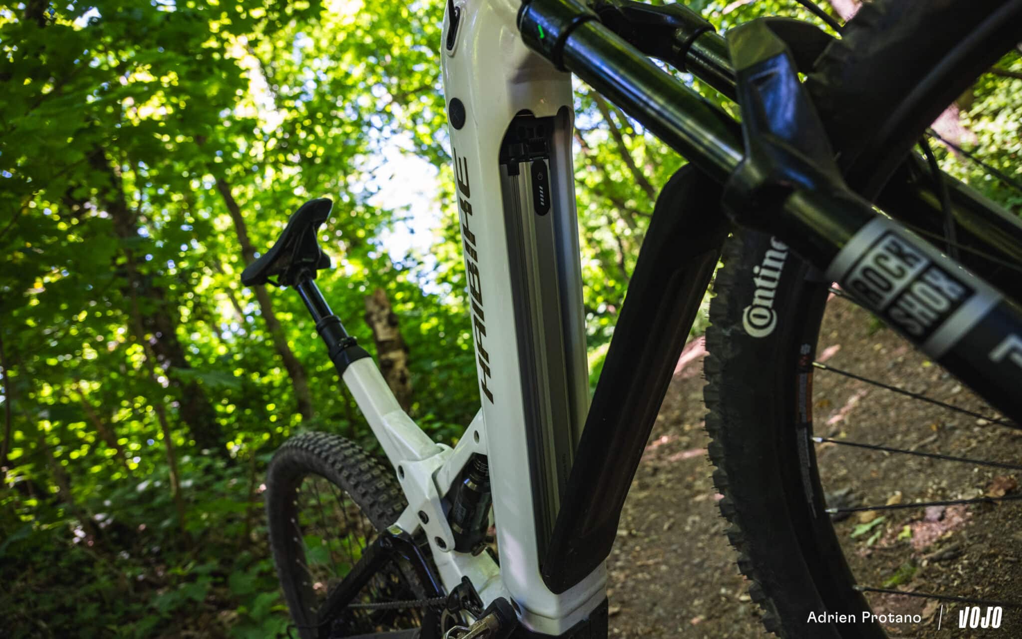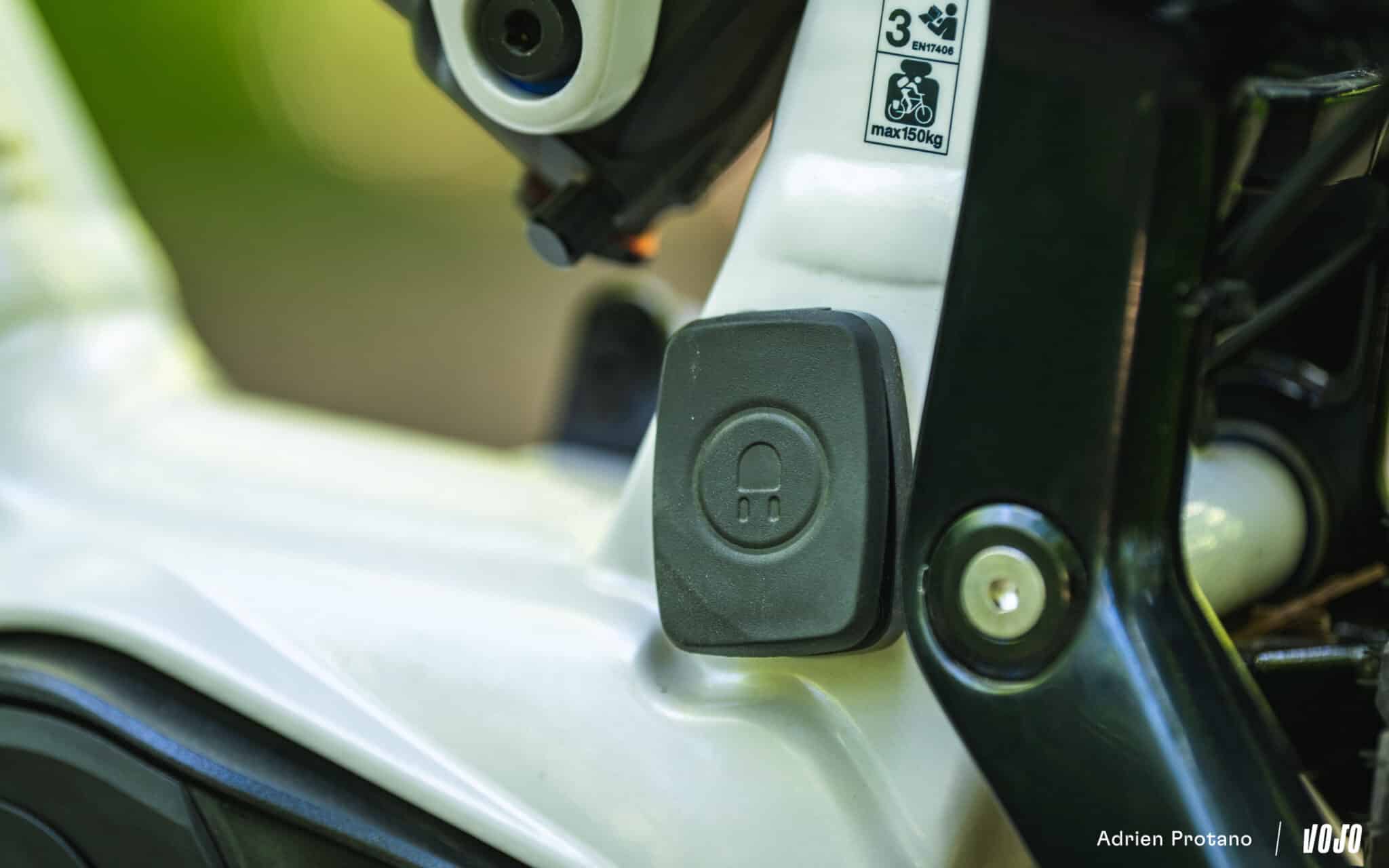Cette motorisation est couplée à une batterie amovible de 600 Wh, avec toujours la possibilité d’ajouter le Range Extender de chez Bosch, à savoir une batterie additionnelle de 250 Wh qui se place directement au sein du triangle avant. Le port de charge est quant à lui situé sur le bas du tube de selle.