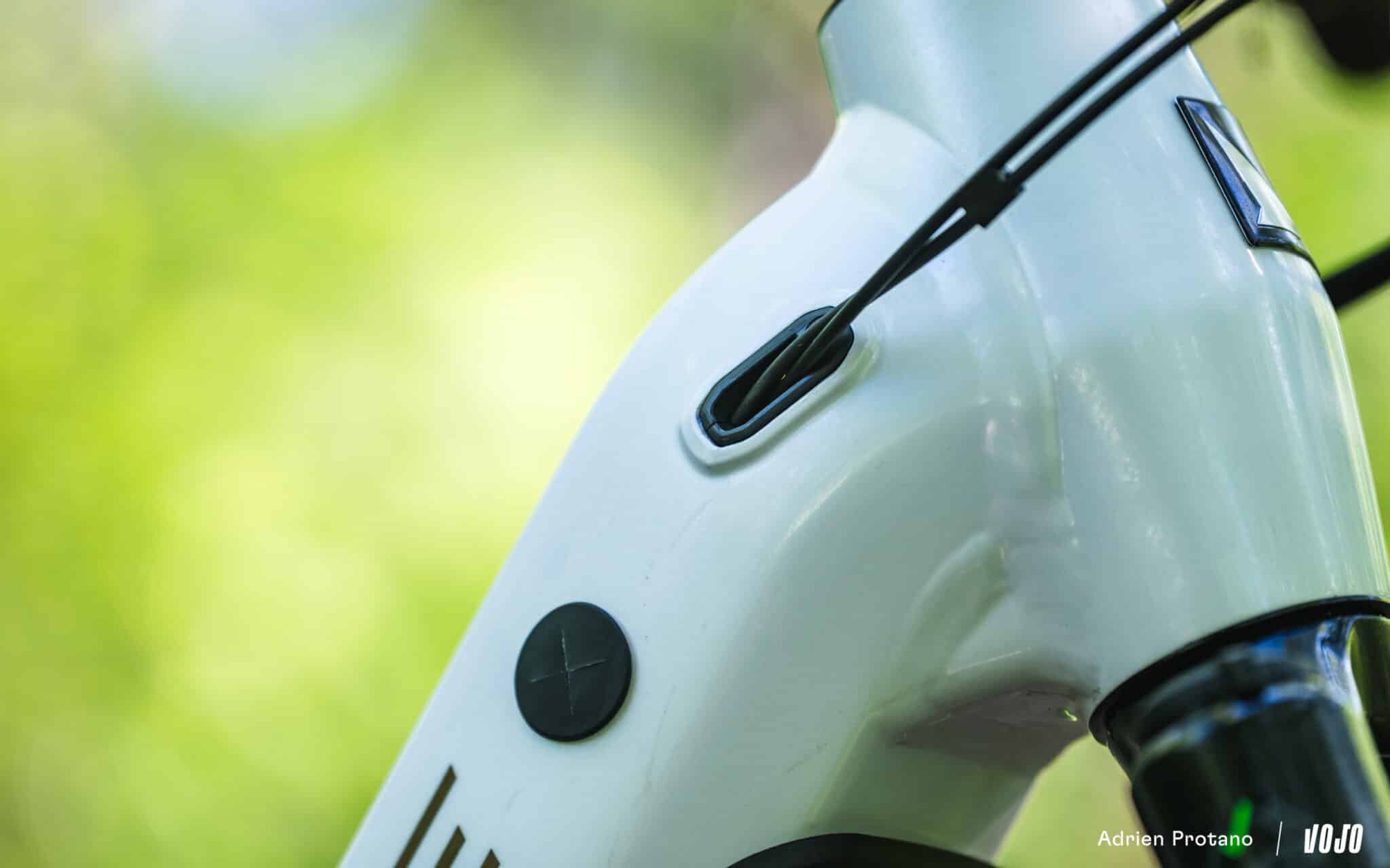 Les câbles passent en interne, avec une entrée située sur le haut du tube diagonal. Une fixation pour un porte-bidon est également prévue, et un garde-boue peut également être installé.