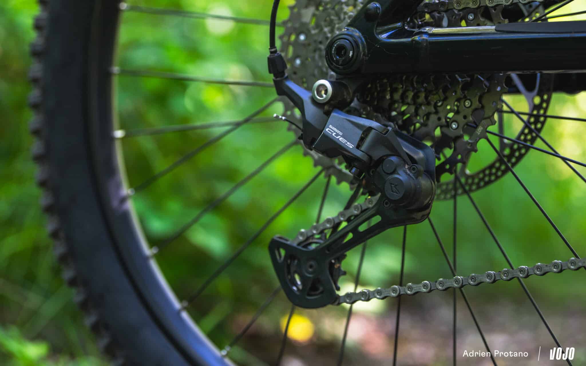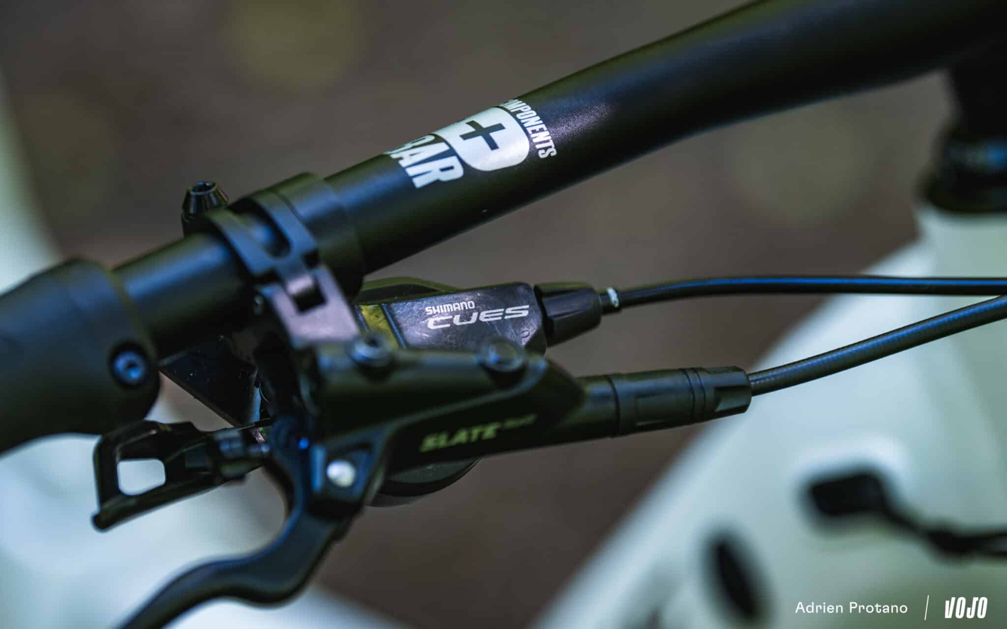 Dans cette version, la transmission est une Shimano Cues à 11 vitesses. Une option plutôt accessible financièrement, mais qui fonctionne remarquablement bien et supporte sans mal les changements de vitesse en charge. On a toutefois noté que le 11 vitesses laisse plus de trous entre les rapports que le 12 vitesses… et ce sont surtout nos testeurs les moins expérimentés qui l’ont relevé.