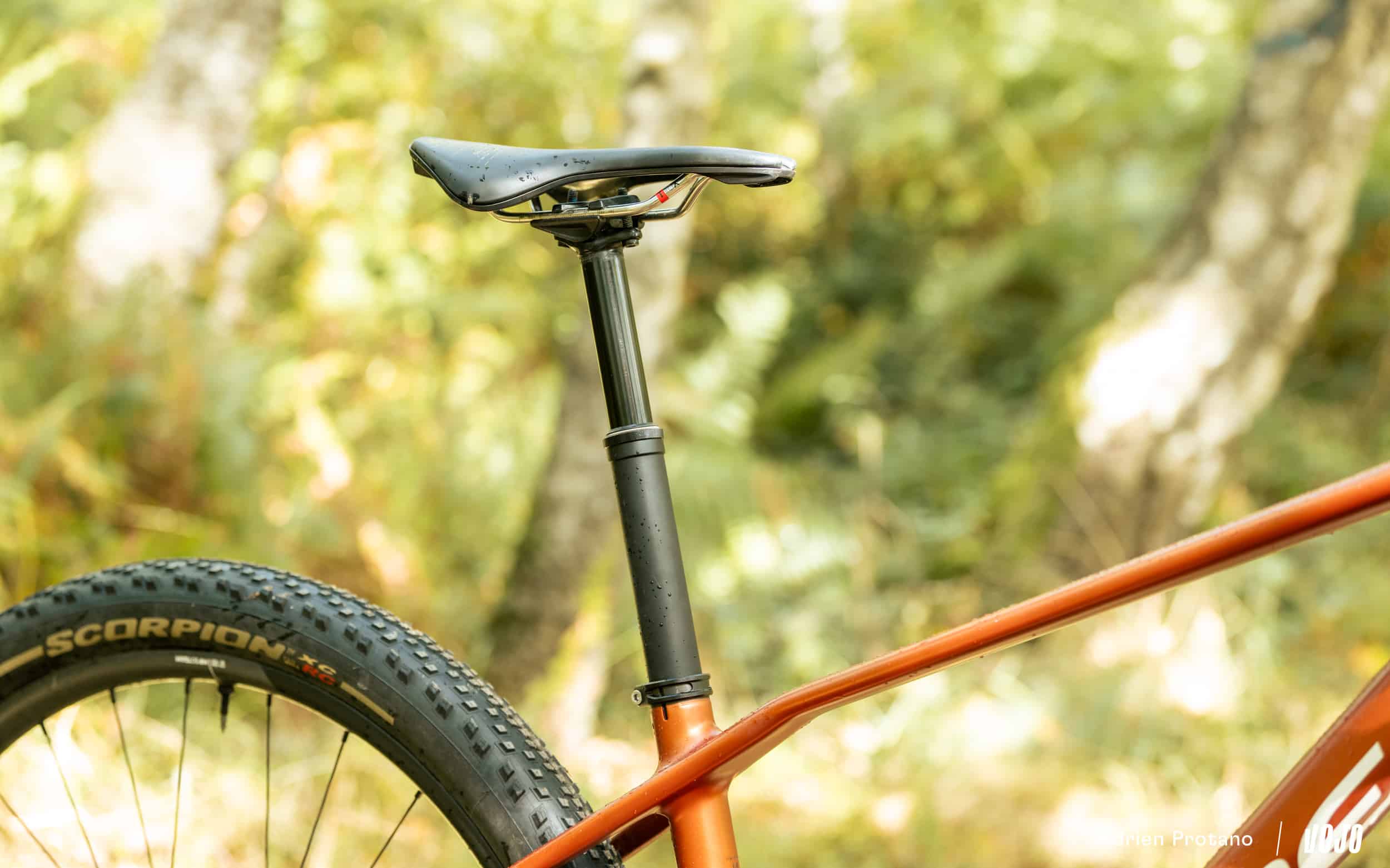 En descente et dans les passages techniques, la géométrie moderne (67° à l’avant, bases courtes de 425 mm) permet de lâcher les freins en toute confiance. La tige de selle télescopique, proposée en option via le configurateur, change radicalement la donne : on conseille sans hésiter d’investir dans cet upgrade.