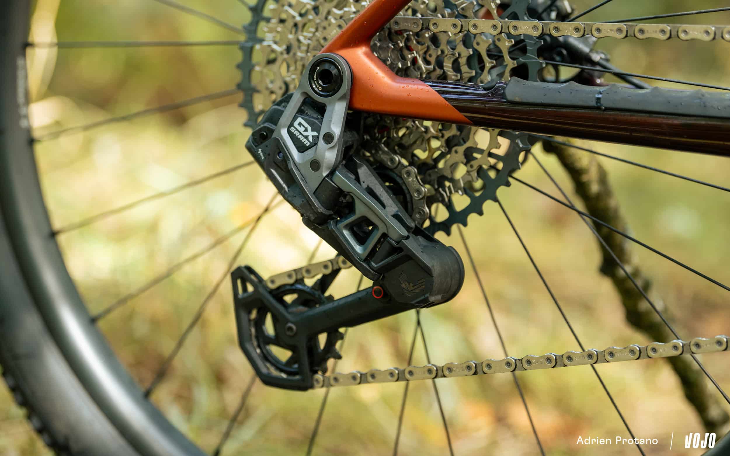 Sram est également présent du côté de la transmission avec un (très bon) groupe GX AXS T-Type à 12 vitesses (cf. Test nouveauté | Sram GX Eagle AXS 2023 : le T-Type se démocratise).