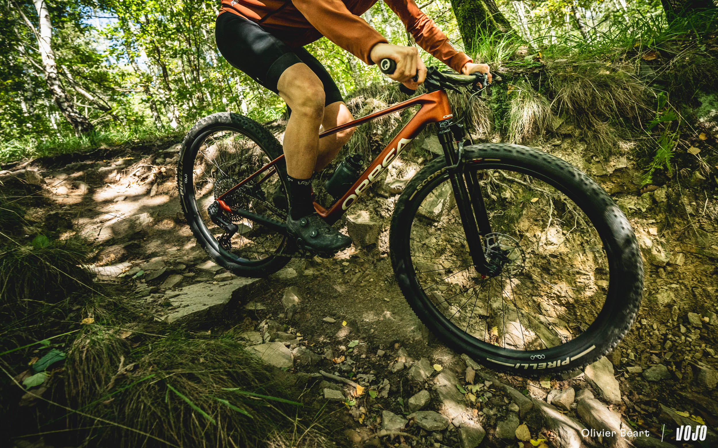 Là où il se démarque, c’est par son niveau de filtrage exceptionnel pour un semi-rigide. Si Orbea communique beaucoup sur le flex de son tube de selle, on sent que c’est l’ensemble du cadre qui travaille légèrement, apportant un confort bienvenu sur les terrains cassants.