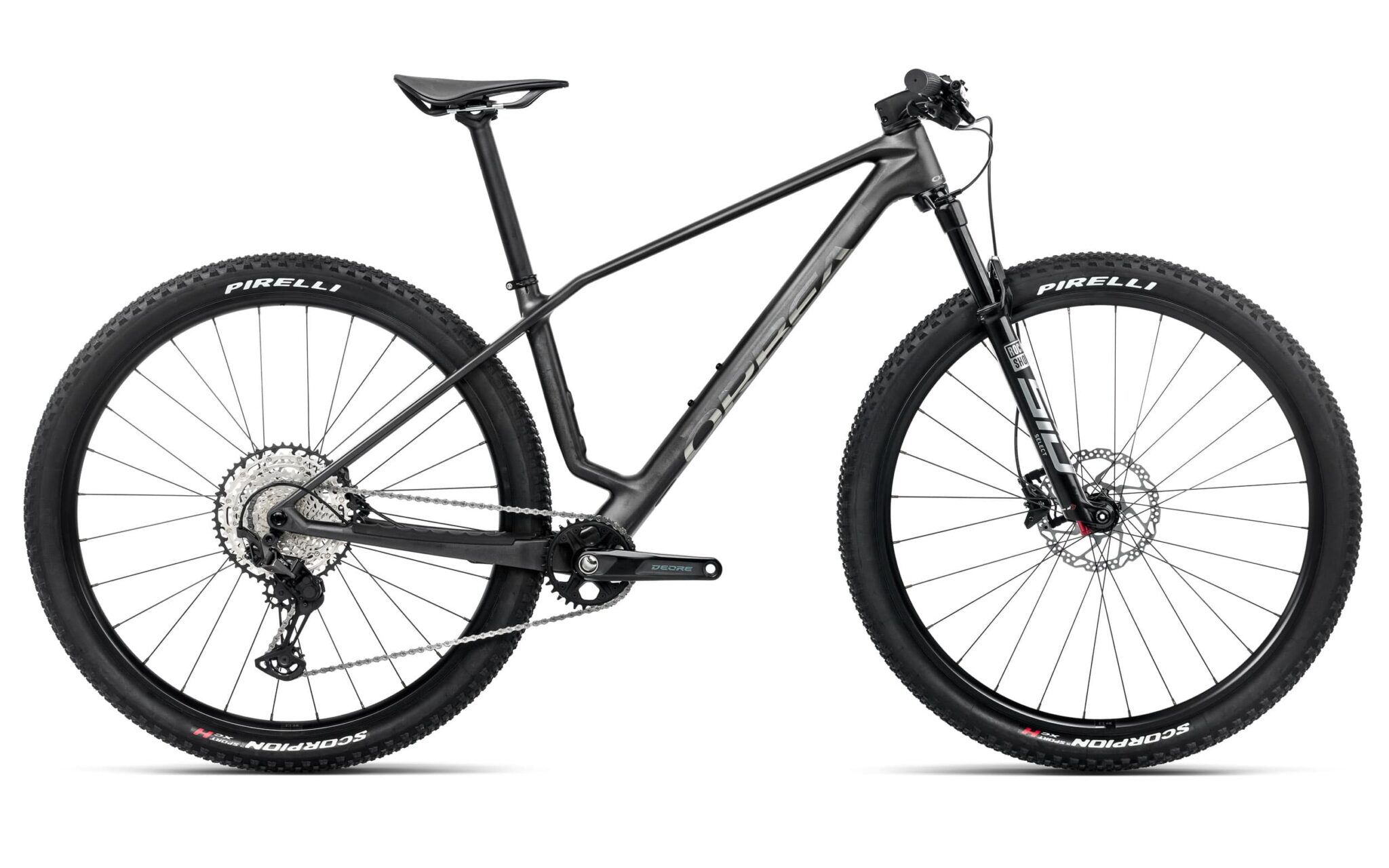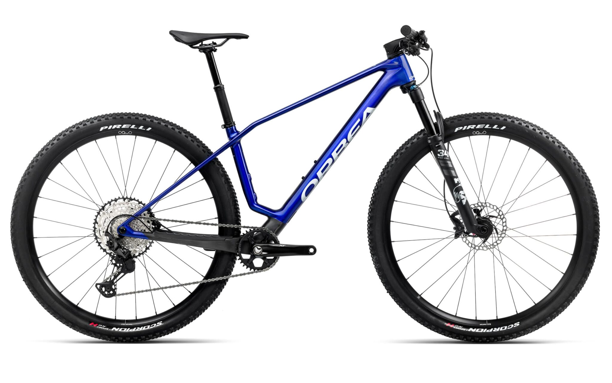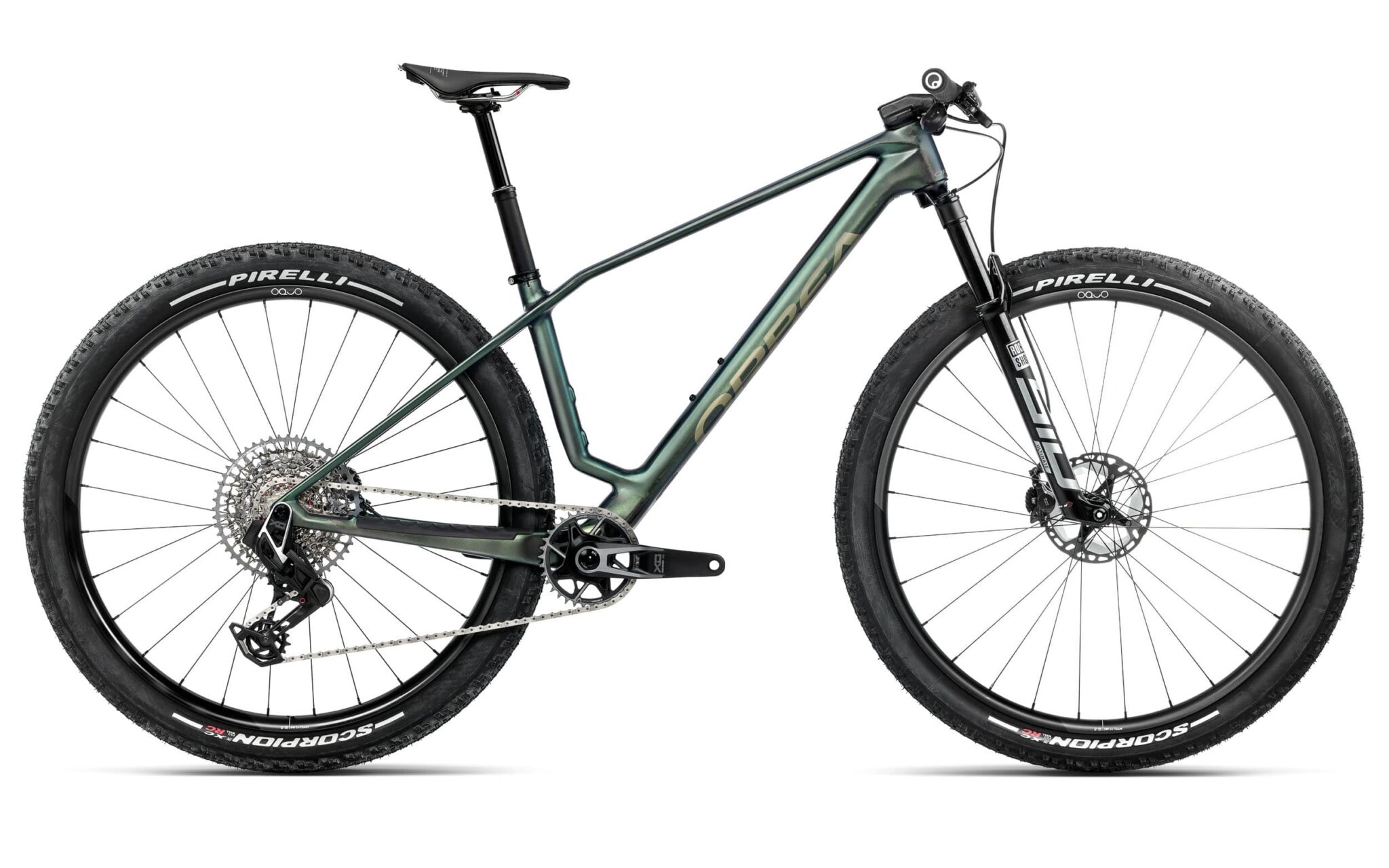 À 3999 €, l’Orbea Alma Pro (qui illustre notre article) est en fourche SID SL Select, transmission Sram GX AXS T-Type, freins Shimano MT 6100, roues Oquo alu MP28 Pro, tige de selle carbone fixe OC (dropper en option), cockpit carbone intégré OC MP10 et pneus Pirelli Scorpion XC RC 2.4
