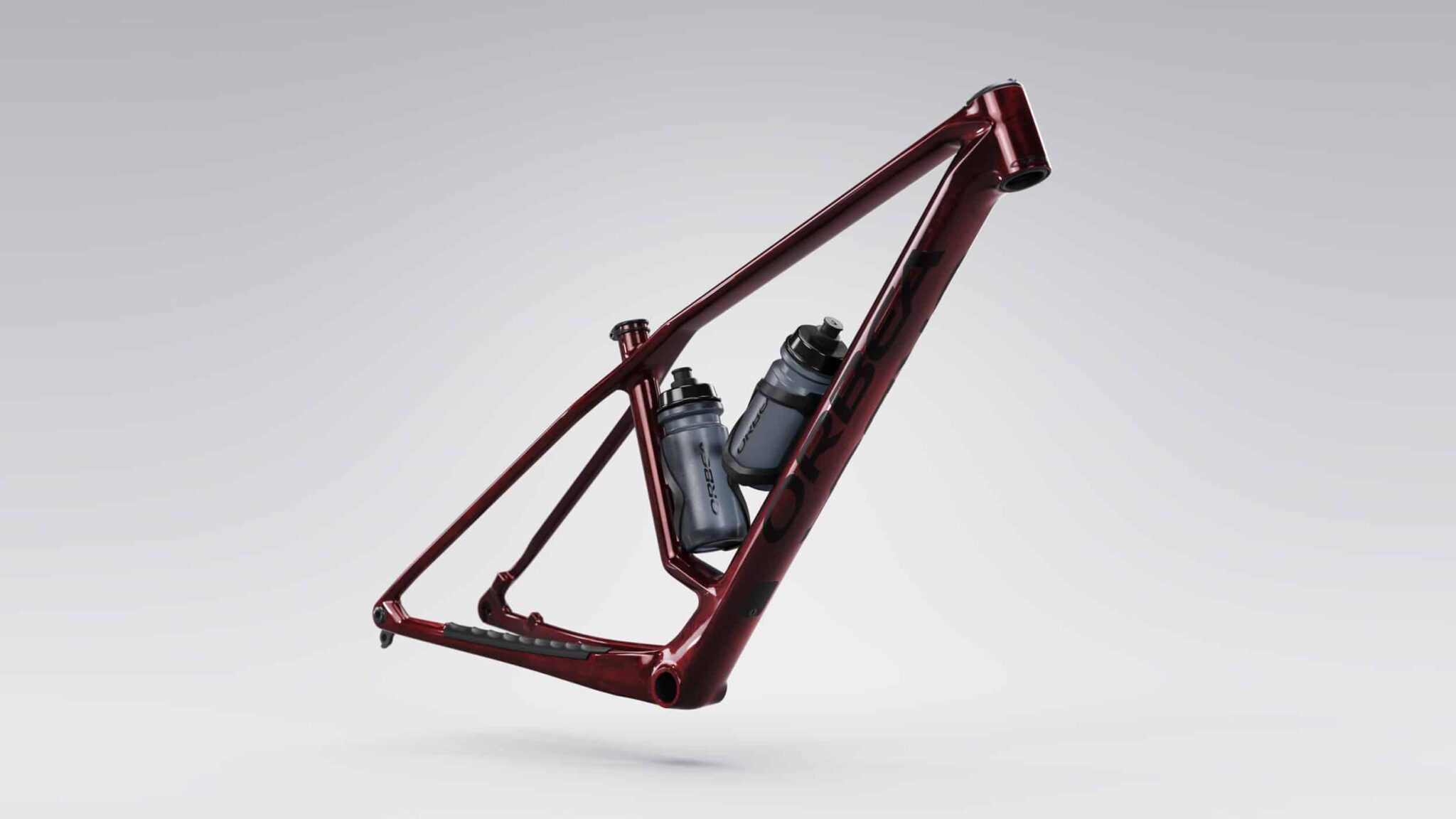Les traditionnels inserts filetés laissent désormais place à deux ouvertures rectangulaires. Elles peuvent être simplement obturées pour permettre une insertion maximale de la tige de selle télescopique. Mais Orbea va plus loin : il est possible d’y insérer deux petits blocs filetés qui offrent un second emplacement de porte-bidon. Selon le modèle de porte-bidon choisi et la longueur des vis, il sera même possible de cumuler une tige de selle longue et un deuxième bidon.