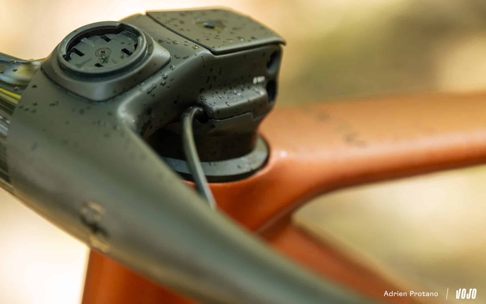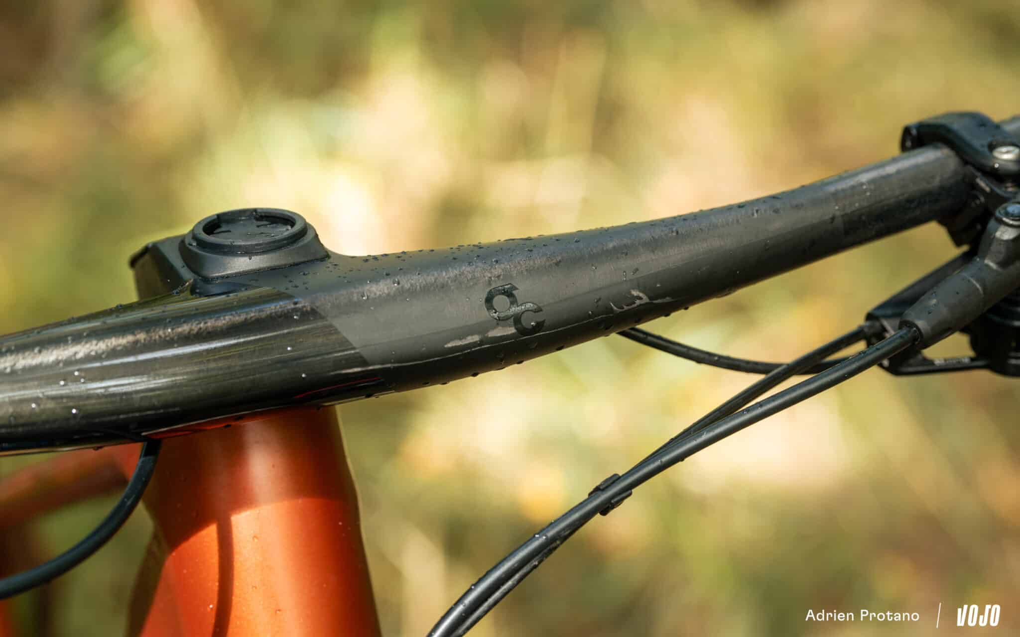 Orbea équipe son Alma d’un cockpit OC carbone très réussi : rigide juste ce qu’il faut, avec un poste de pilotage qui inspire confiance et une excellente prise en main. Le support GPS intégré est un petit détail mais on l’a beaucoup apprécié au quotidien.