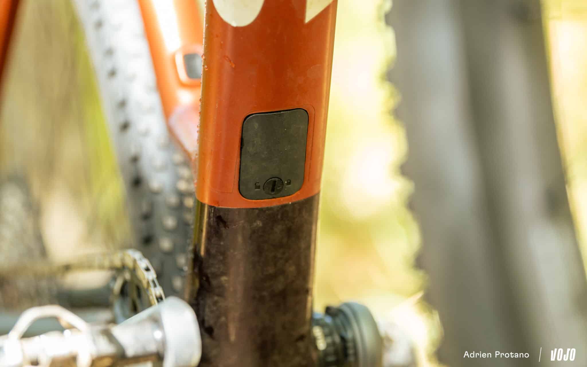 Autre point fort : l’intégration. Les câbles passent entièrement en interne, mais via un système propre et accessible qui facilite l’entretien. On remarquera la présence de cette petite trappe sous le tube diagonal afin de faciliter le passage des câbles, notamment pour la tige de selle télescopique.