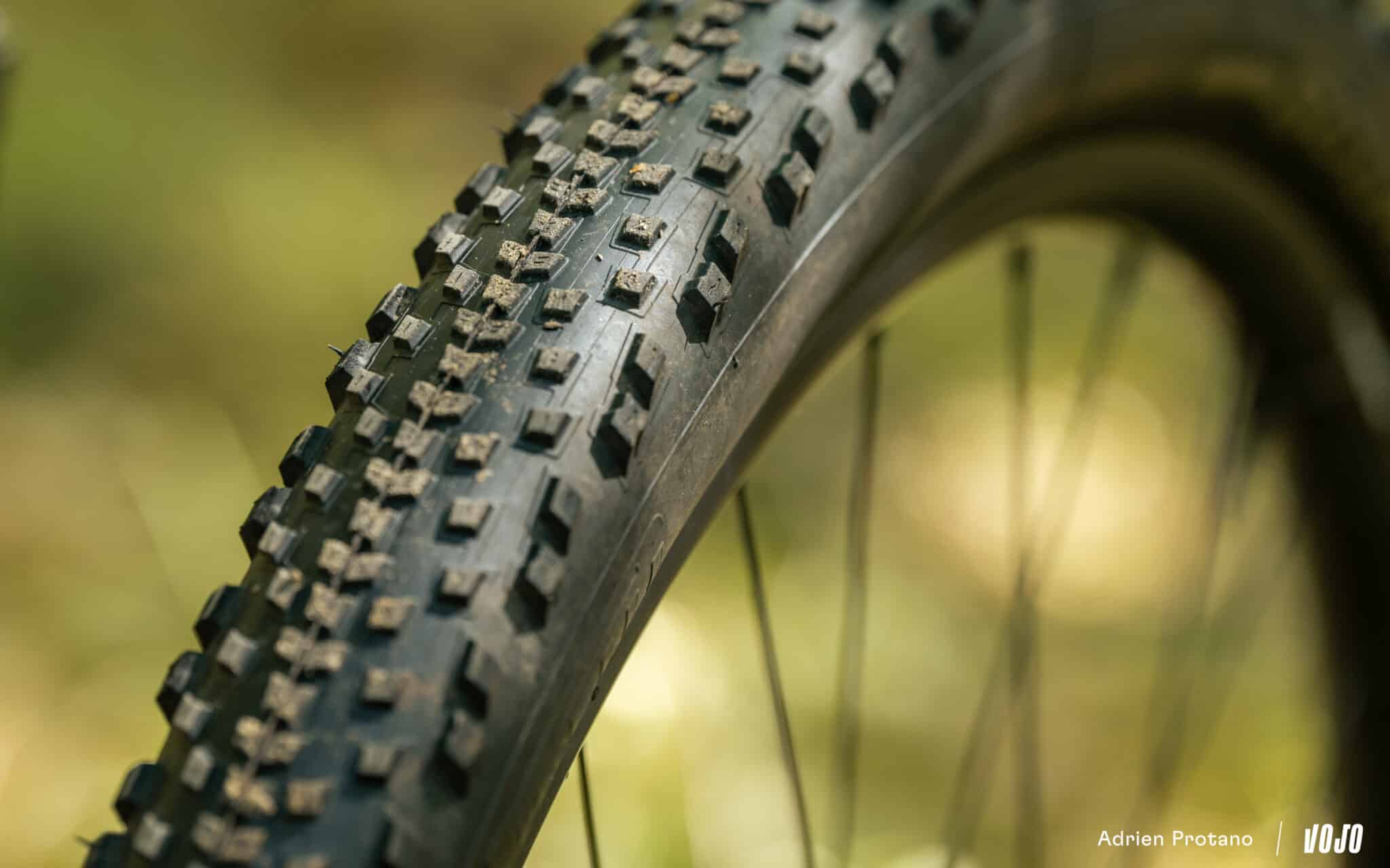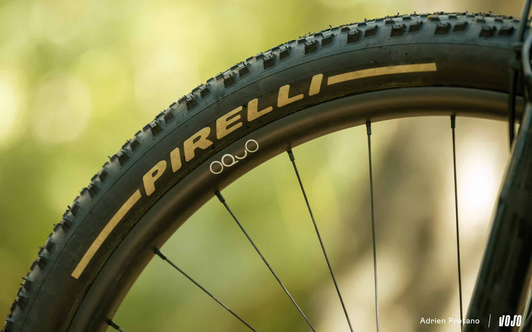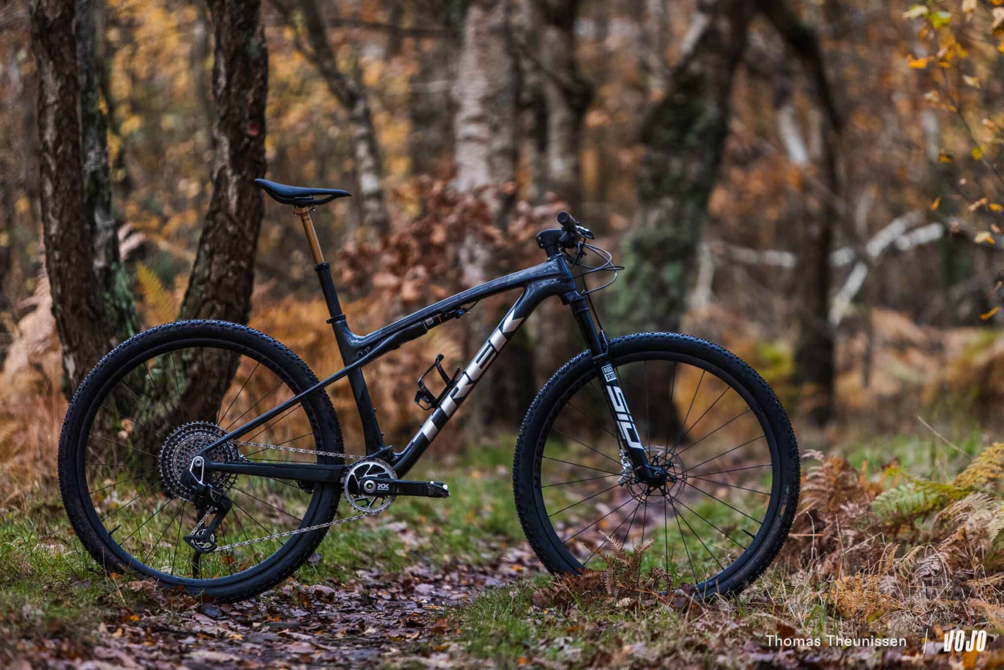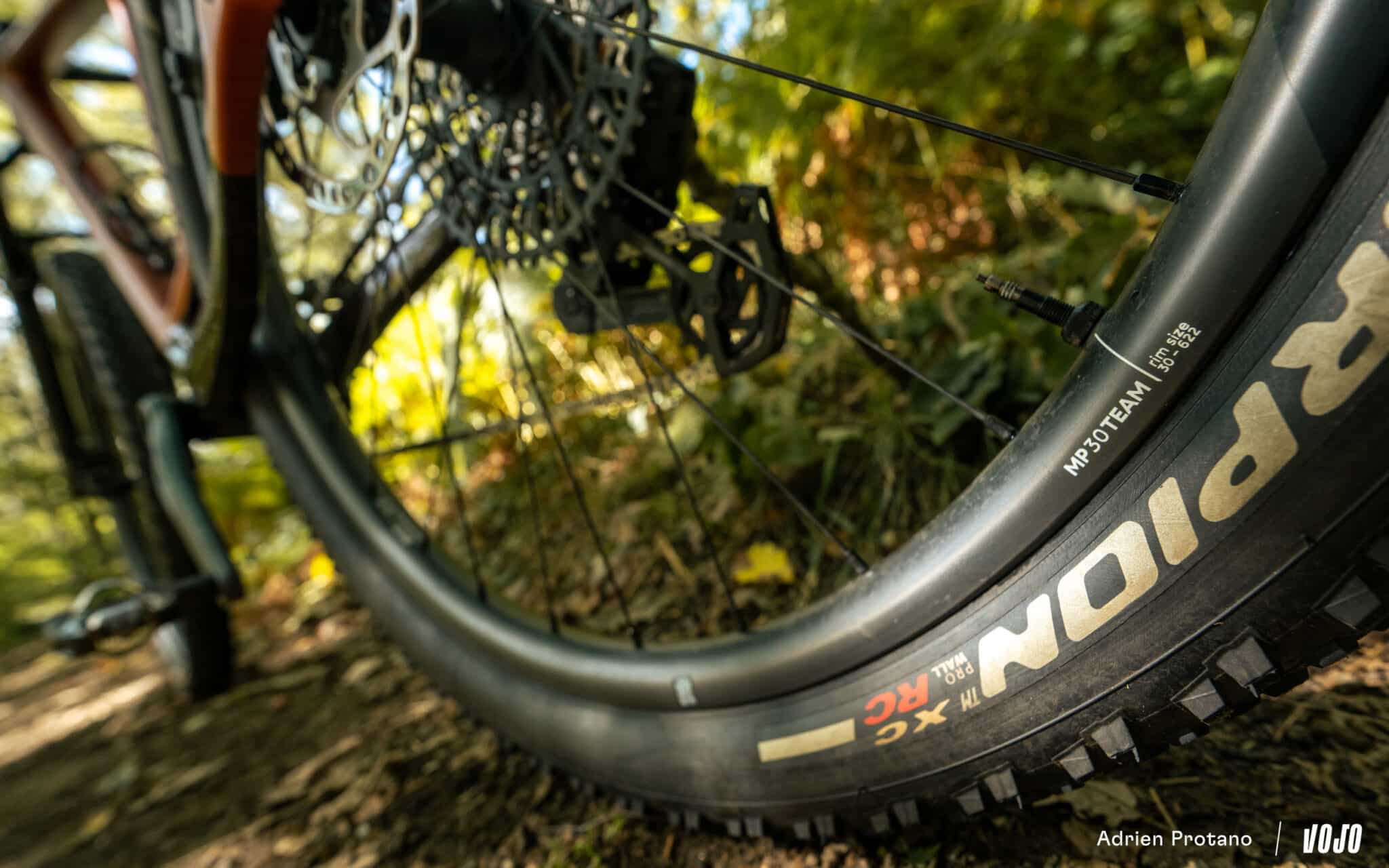 Petite remarque sur les roues : notre modèle de test est équipé des roues carbone Oquo MP30 Team, mais la version de série reçoit ici normalement les Oquo MP28 Pro en aluminium. De quoi allèger quelque peu le vélo et le portefeuille (+ 599€ de supplément sur le configurateur en ligne de la marque). Les pneus sont des Pirelli Scorpion XC RC 2.4.