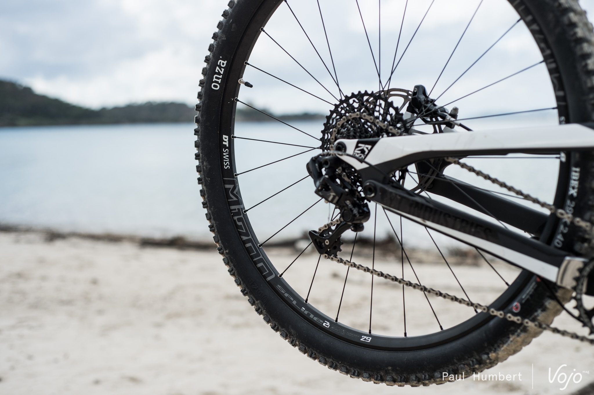 Sur ces roues étaient montés des pneus Onza Ibex. Comme on le disait déjà dans notre test du BMC Speedfox Trailcrew, ces derniers ne brillent sur aucun tableau et si ils sont convenables sur terrain sec, ils deviennent vraiment moyens en terrain humide. Côté résistance aux crevaisons, nous avons plutôt été épargnés, et c’est une bonne chose !