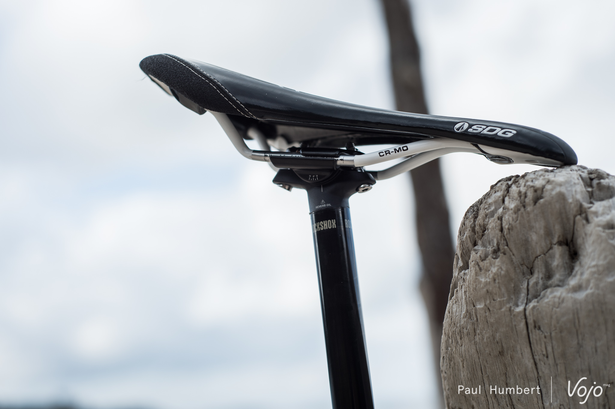 Une selle SDG Fly est montée sur une tige de selle Rock Shox Reverb. Sur la dernière version du modèle, la tige de selle a été remplacée par une Raceface Turbine qui n’a pas su nous convaincre lors de notre essai mais qui a, dit-on, été améliorée. On trouve aussi une paire de roues E Thirteen TRS 29 sur laquelle nous manquons de recul mais qui ne devrait pas altérer le comportement du vélo.