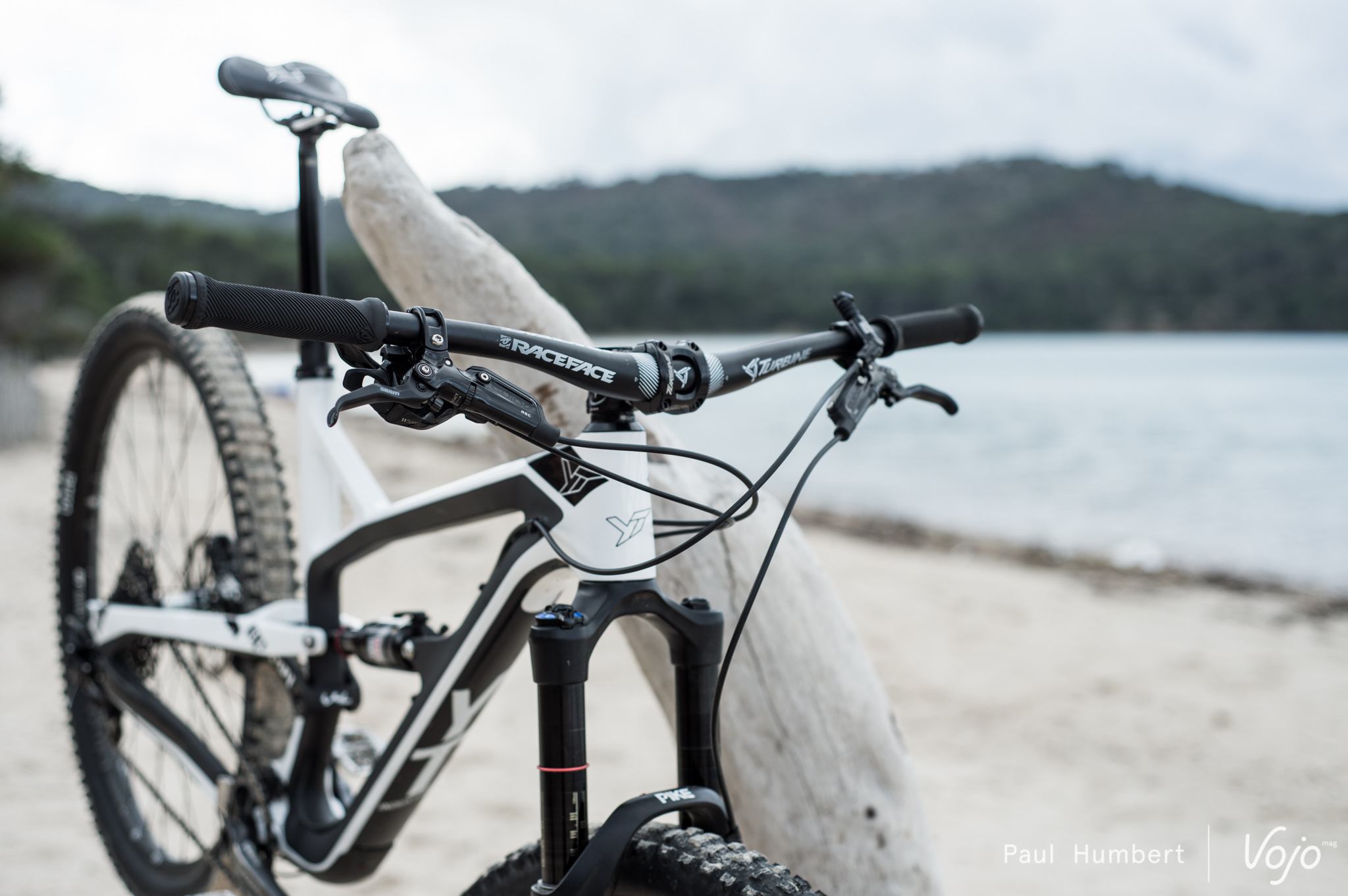 Le poste de pilotage a été confié à RaceFace avec la potence (de 60mm en taille L) et le cintre Turbine de 770mm de large. Comme on l’avait déjà remarqué lors de notre test du YT Capra, la marque opte pour un poste de pilotage au diamètre 35mm. Presque trop rigide sur le vélo d’enduro en 27,5, nous n’avons pas été dérangés cette fois-ci. Sur ce plus petit vélo en 29 pouces, moins rigide, nous y avons cette fois vu un gain en terme de rigidité et de précision.