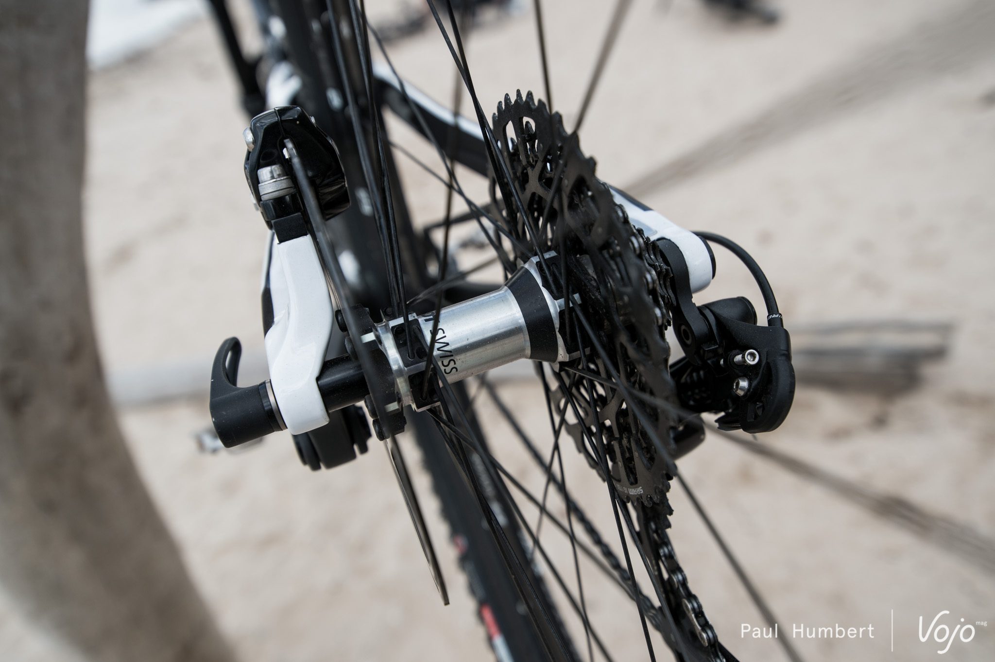 Dans cette version 2016 que nous avons testée pendant de longues semaines, le vélo était équipé de roues DT Swiss M1700 Spline 2 parfaitement adaptées au programme, autant par leurs qualités dynamiques que par leur relative rigidité.