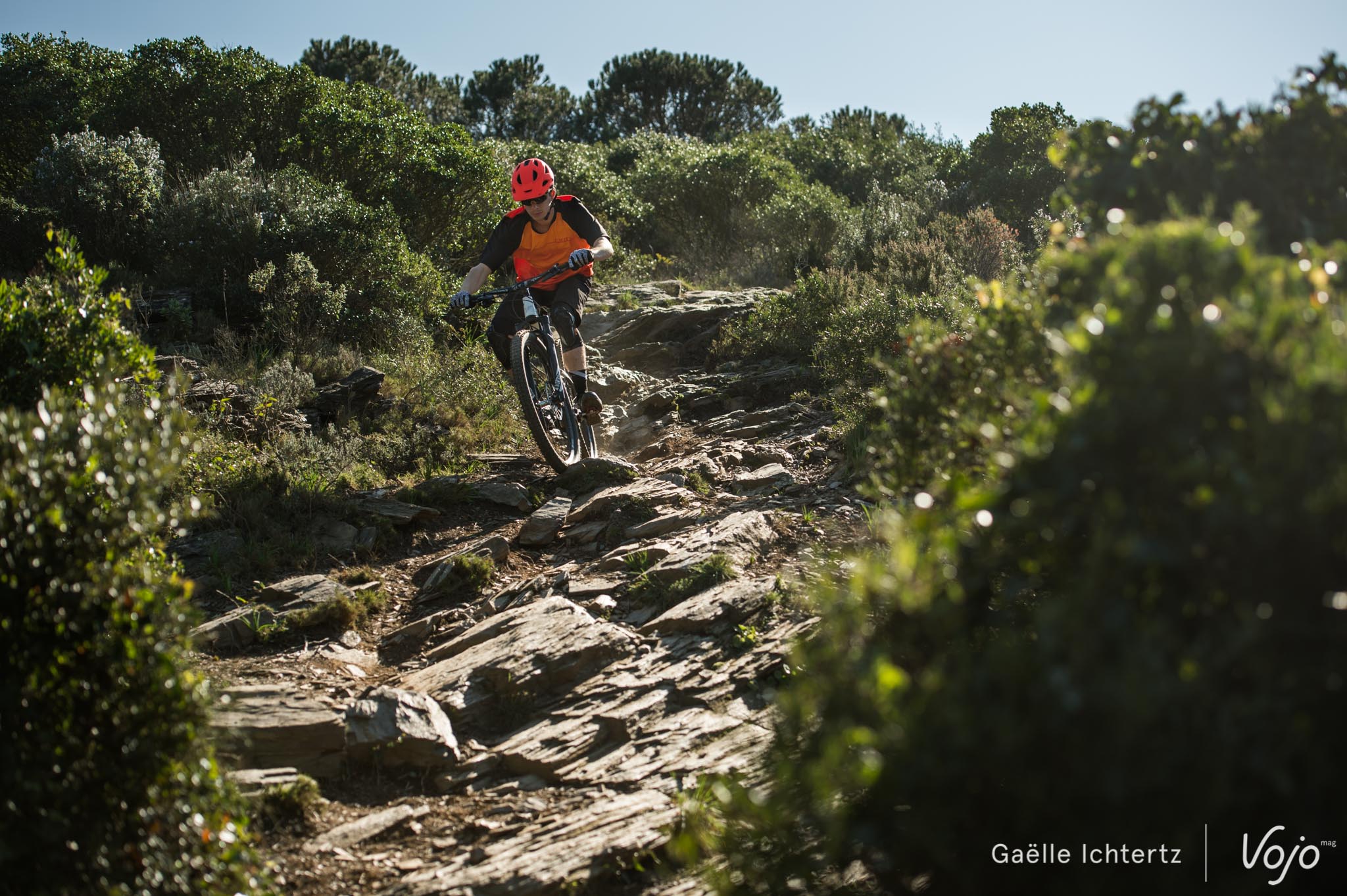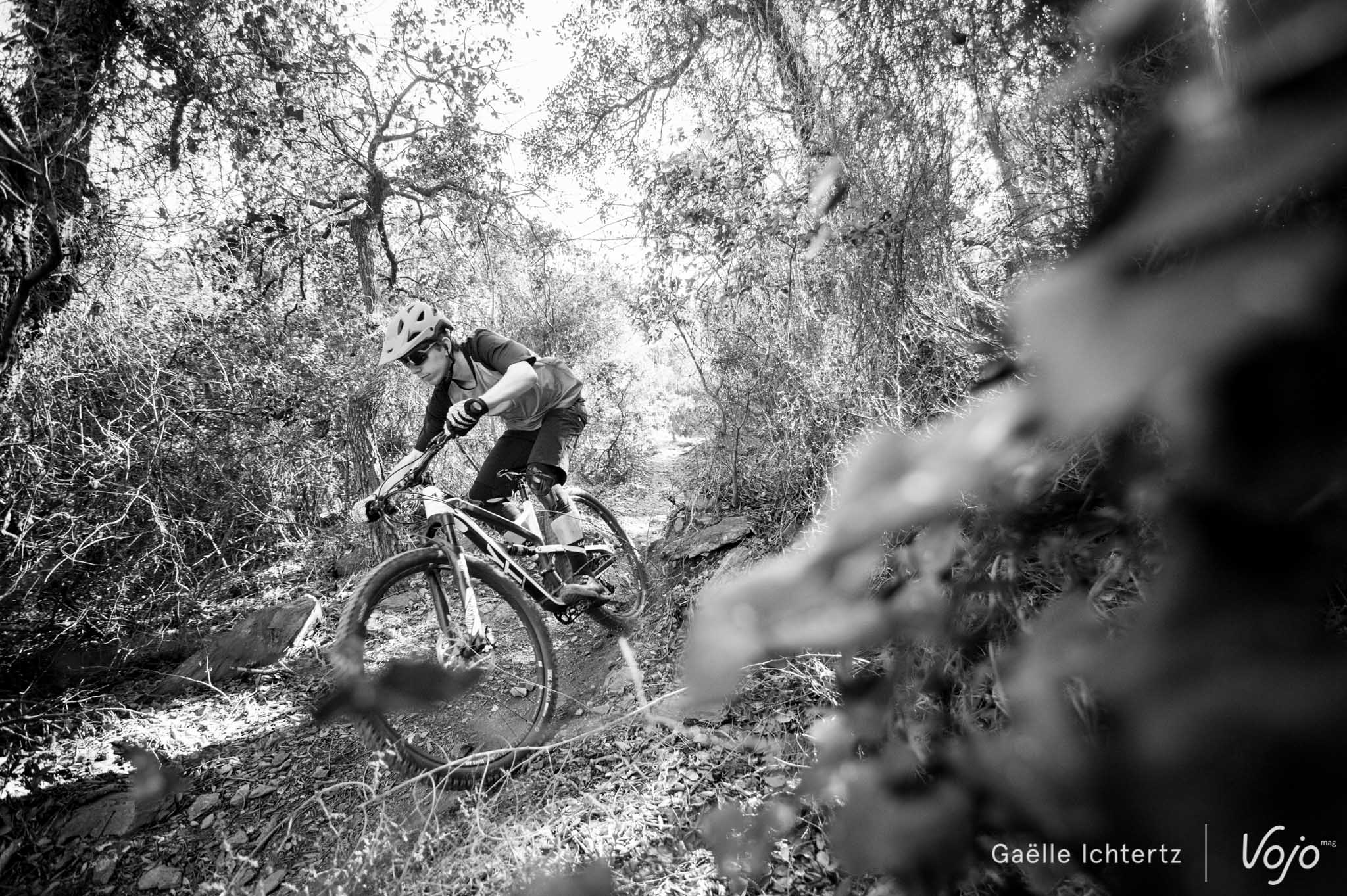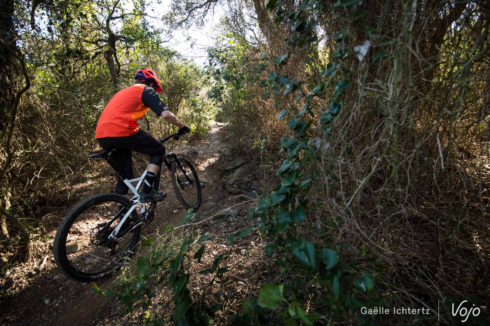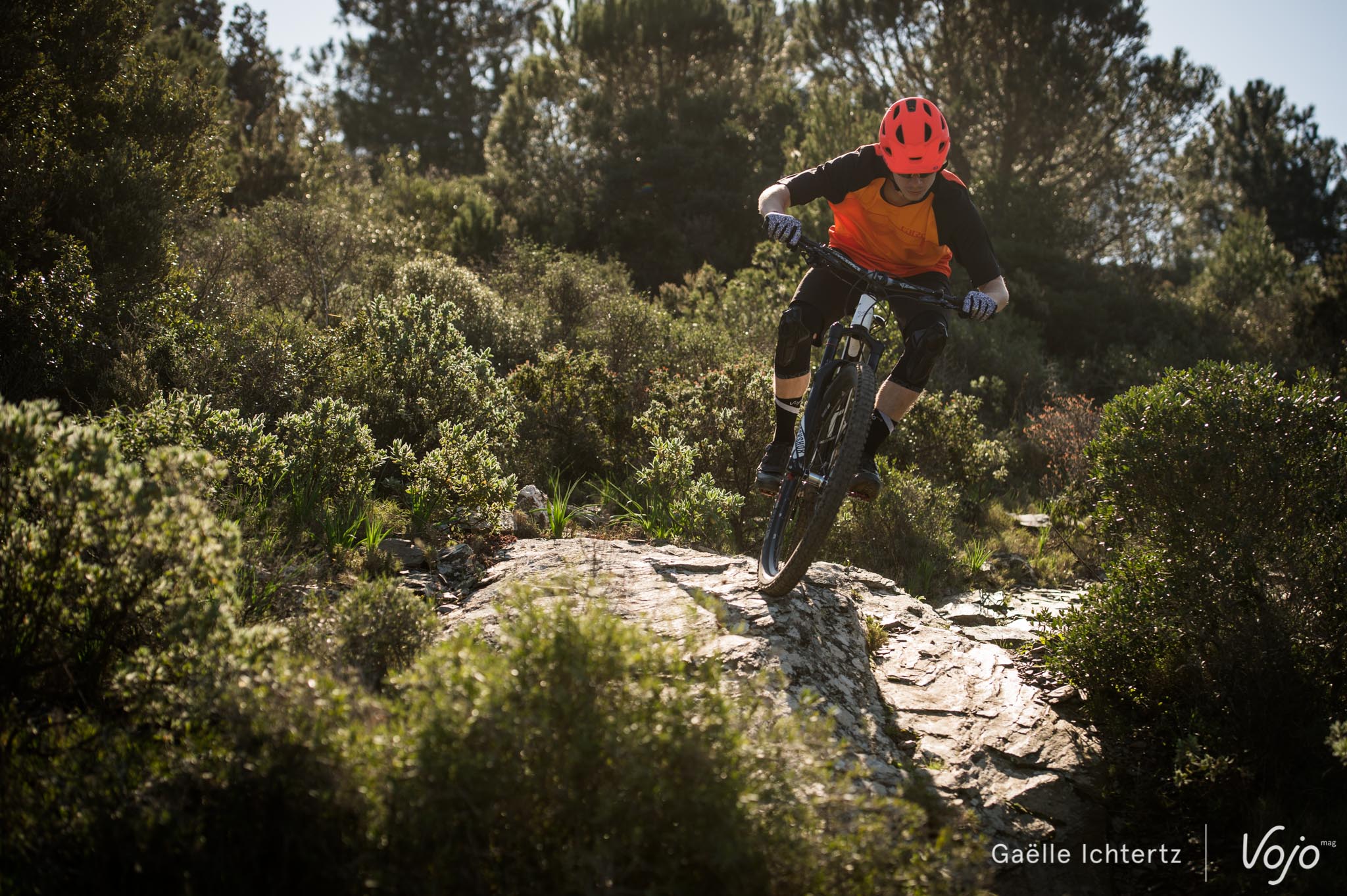 Le vélo encaisse sans broncher, la compression est très progressive et on se demande vraiment quelle est la limite du vélo qu’on a entre les jambes. Toutefois,toutes les bonnes choses ont une fin et le vélo nous rappelle à l’ordre quand le pilotage est vraiment brutal. La fin de course est bien gérée mais au « bout du bout », on sent la limite du vélo. Avec ses 140mm de débattement, on croirait parfois en avoir plus… mais on se fait de temps en temps rappeler à l’ordre quand on oublie sur quel type de machine on est. La géométrie et la position nous permettent toutefois de tout exploiter sereinement.