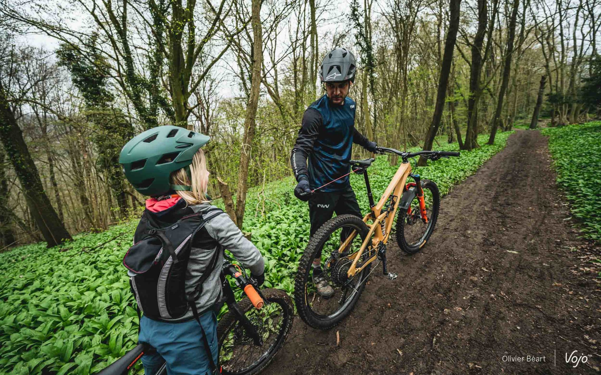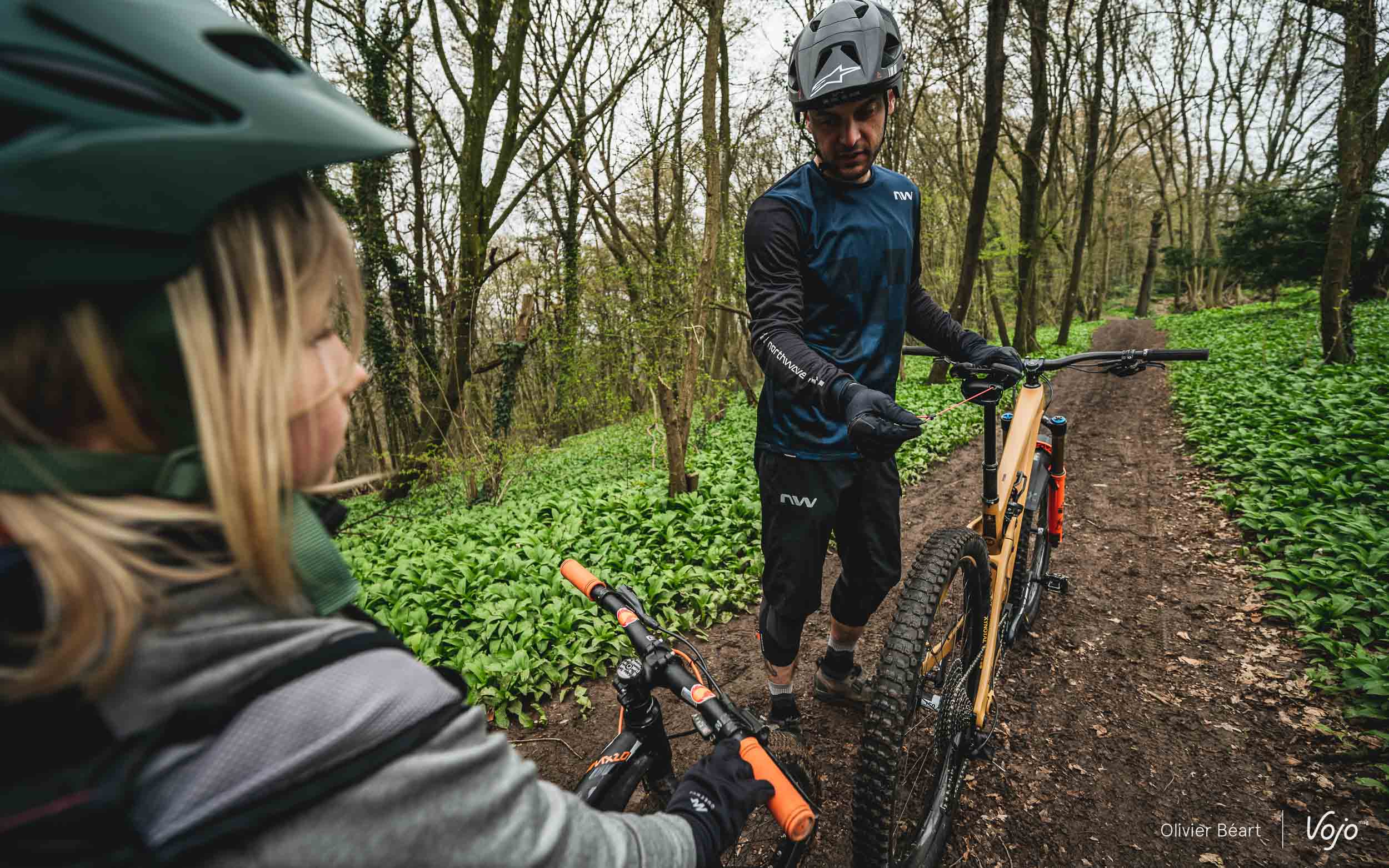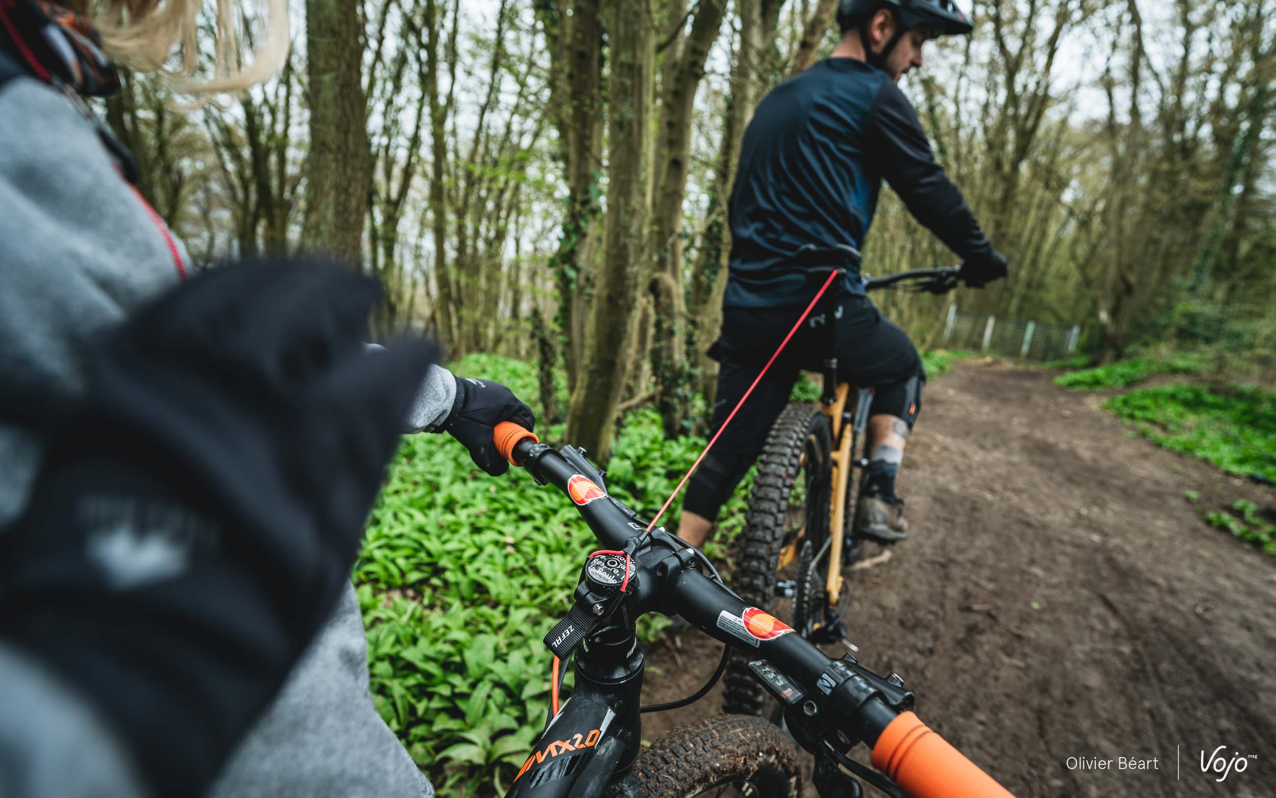 Ce test, je vais l’écrire à la première personne car j’ai testé le Bike Taxi essentiellement avec ma fille Mila, 7 ans et demi, qui pose ici sur les photos avec un ami qui s’est prêté au jeu le temps d’un shooting. Depuis un peu plus d’un an, elle va au cours de VTT à Chaudfontaine, près de Liège. Elle aime bien ça être dans la nature, rouler à vélo dans la boue et aussi être avec les copines qu’elle s’est faites à l’école VTT. Sans doute aussi qu’elle veut un peu faire comme papa, mais j’ai toujours fait attention à ne pas pousser mes enfants absolument vers le VTT. Et le Bike Taxi, me direz-vous ? Eh bien c’est vraiment quelque chose qui m’a tout de suite intéressé car si Mila aime bien le plat et les descentes, les montées ce n’est pas trop sa tasse de thé, même si elle est volontaire.