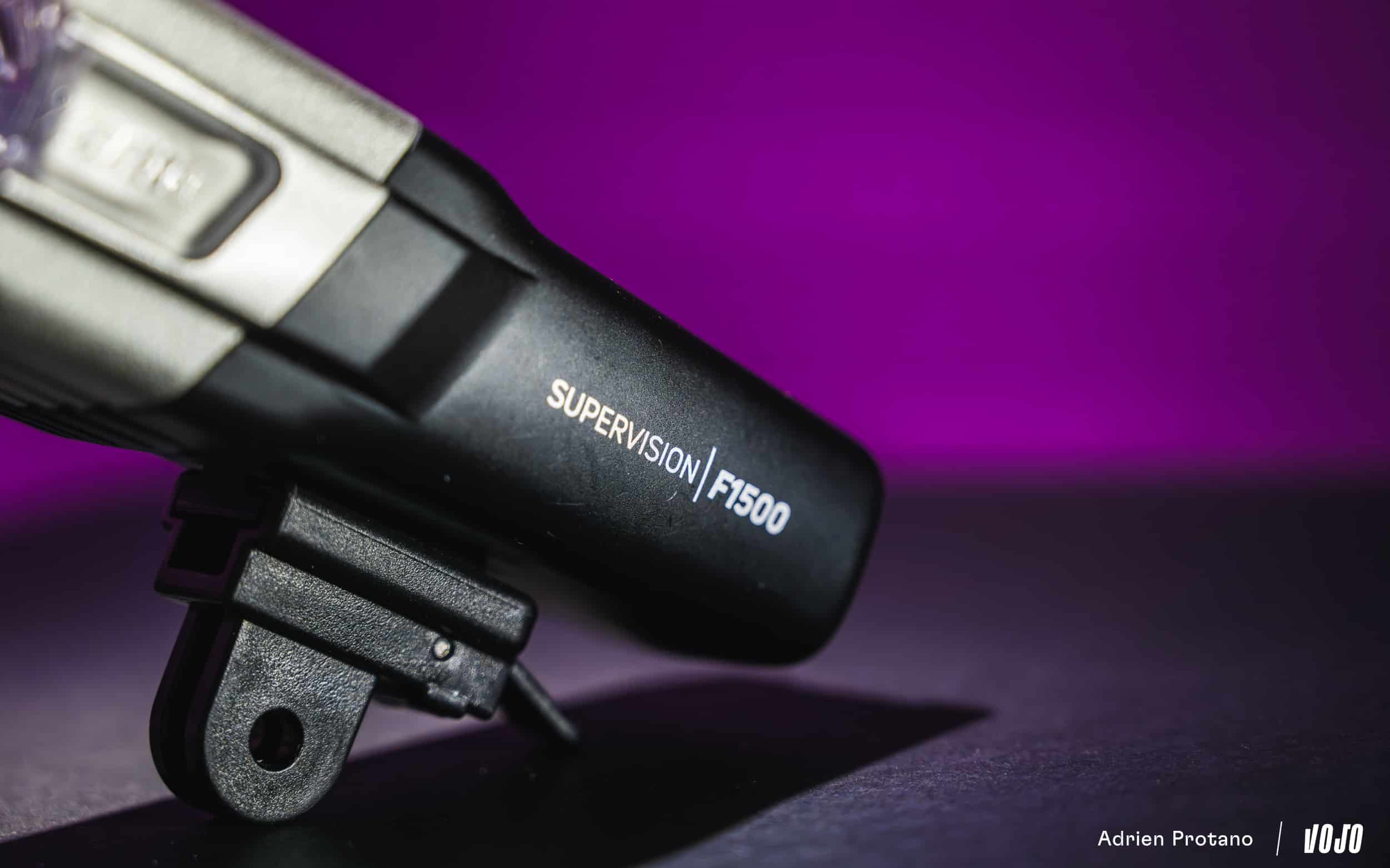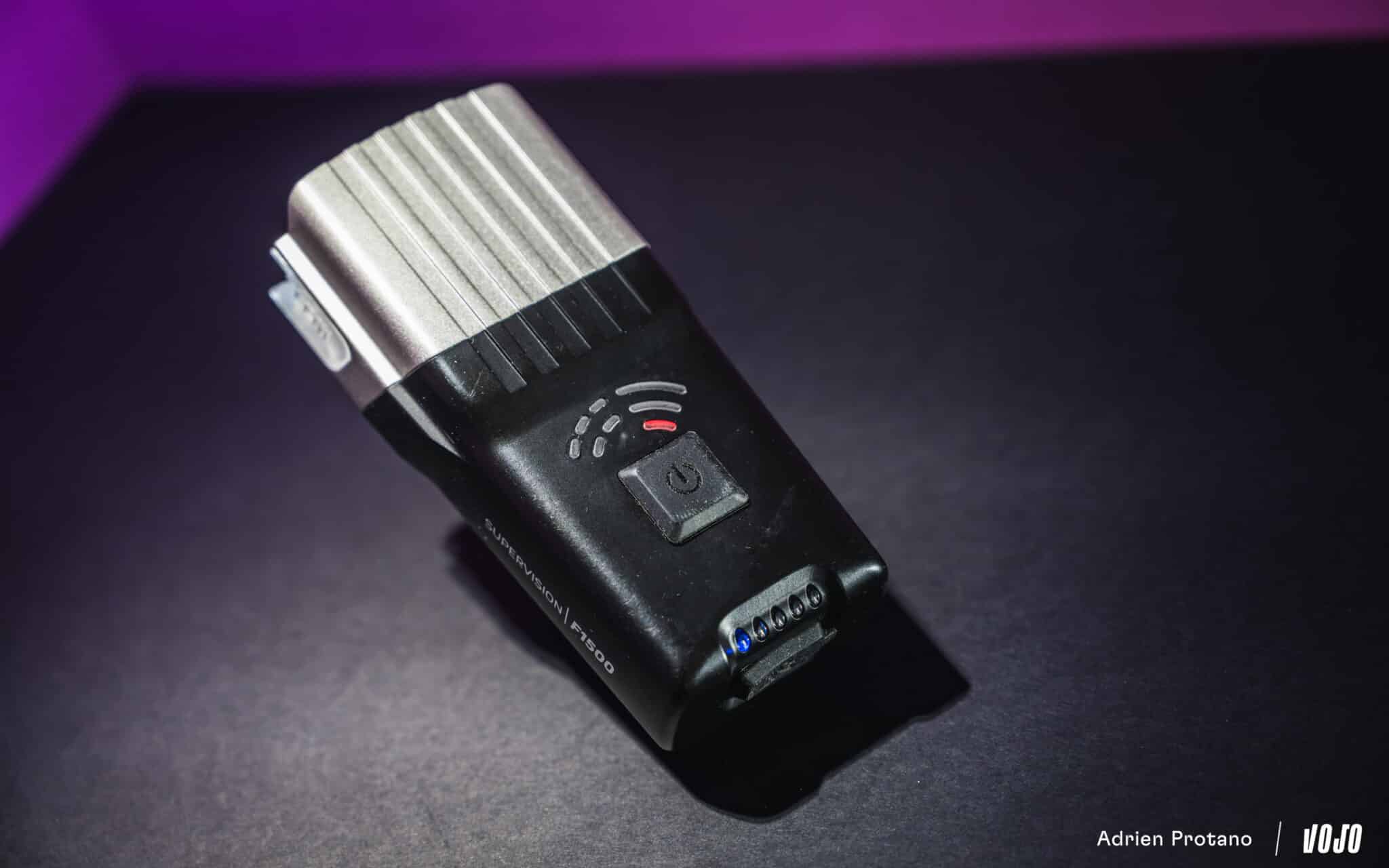 La tête de la lampe est dotée de deux LED qui fonctionnent concomitamment et à la même puissance, là où certains concurrents utilisent des optiques séparées pour obtenir des faisceaux larges et focalisés à la fois. La Zéfal Supervision F1500 est également dotée de deux petites ouvertures sur les côtés, qui laissent légèrement passer la lumière et permettent ainsi d’avoir un minimum de visibilité sur les cotés vis-à-vis des autres usagers (particulièrement les automobilistes).