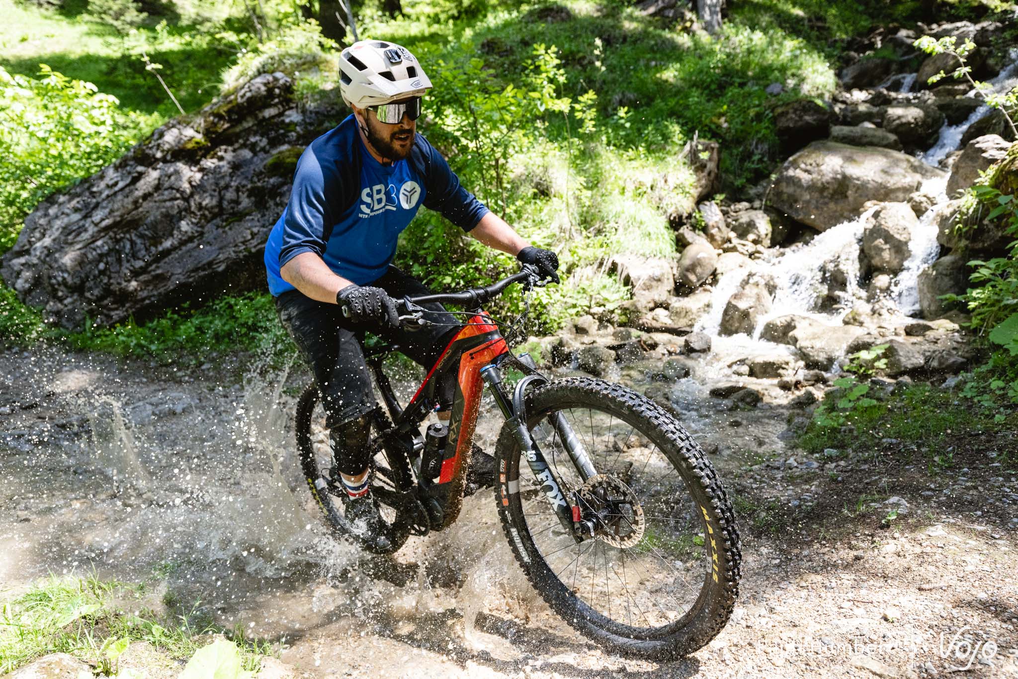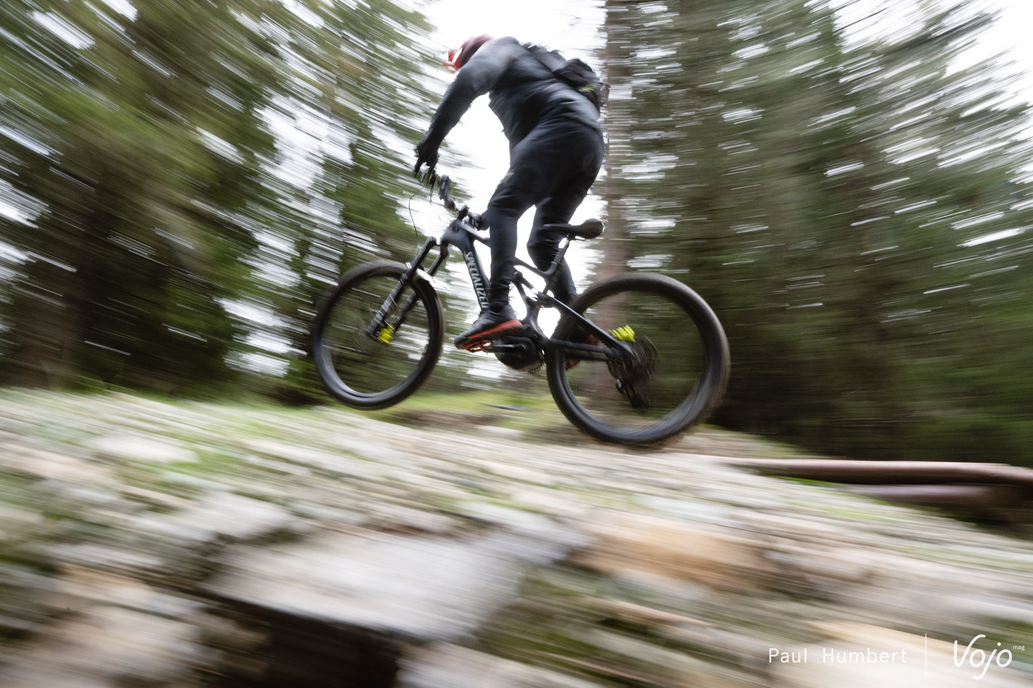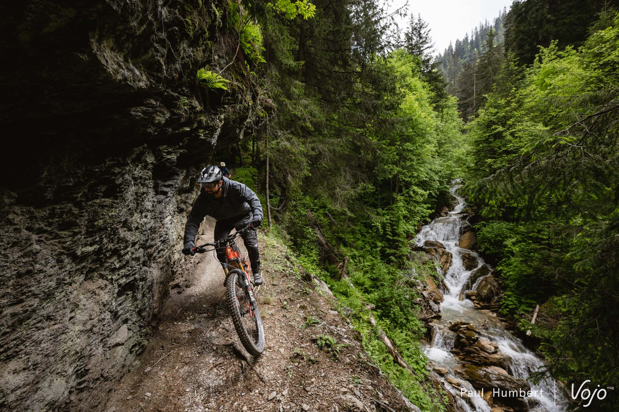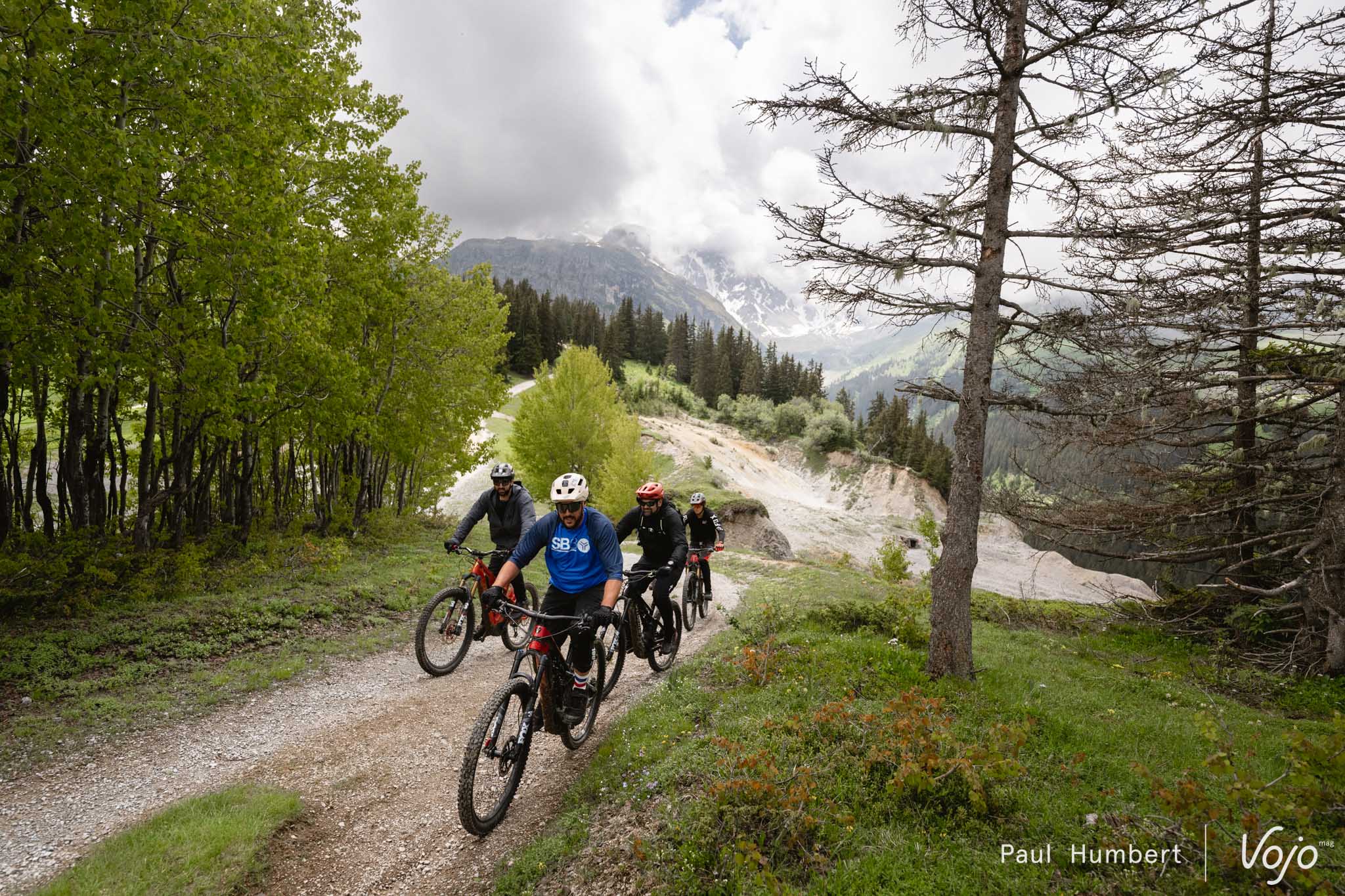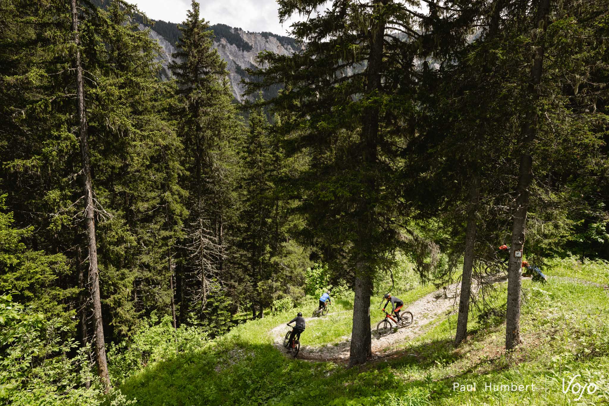 Ce spot justement, Courchevel, on l’a découvert le temps d’une petite journée de reconnaissance et de shooting. Au départ de l’endroit où les tentes des marques seront installées et à quelques centaines de mètres de l’hôtel qui accueillera toutes les équipes et les participants, on file entre des portions de pistes de bike park et des sentiers de montagne.