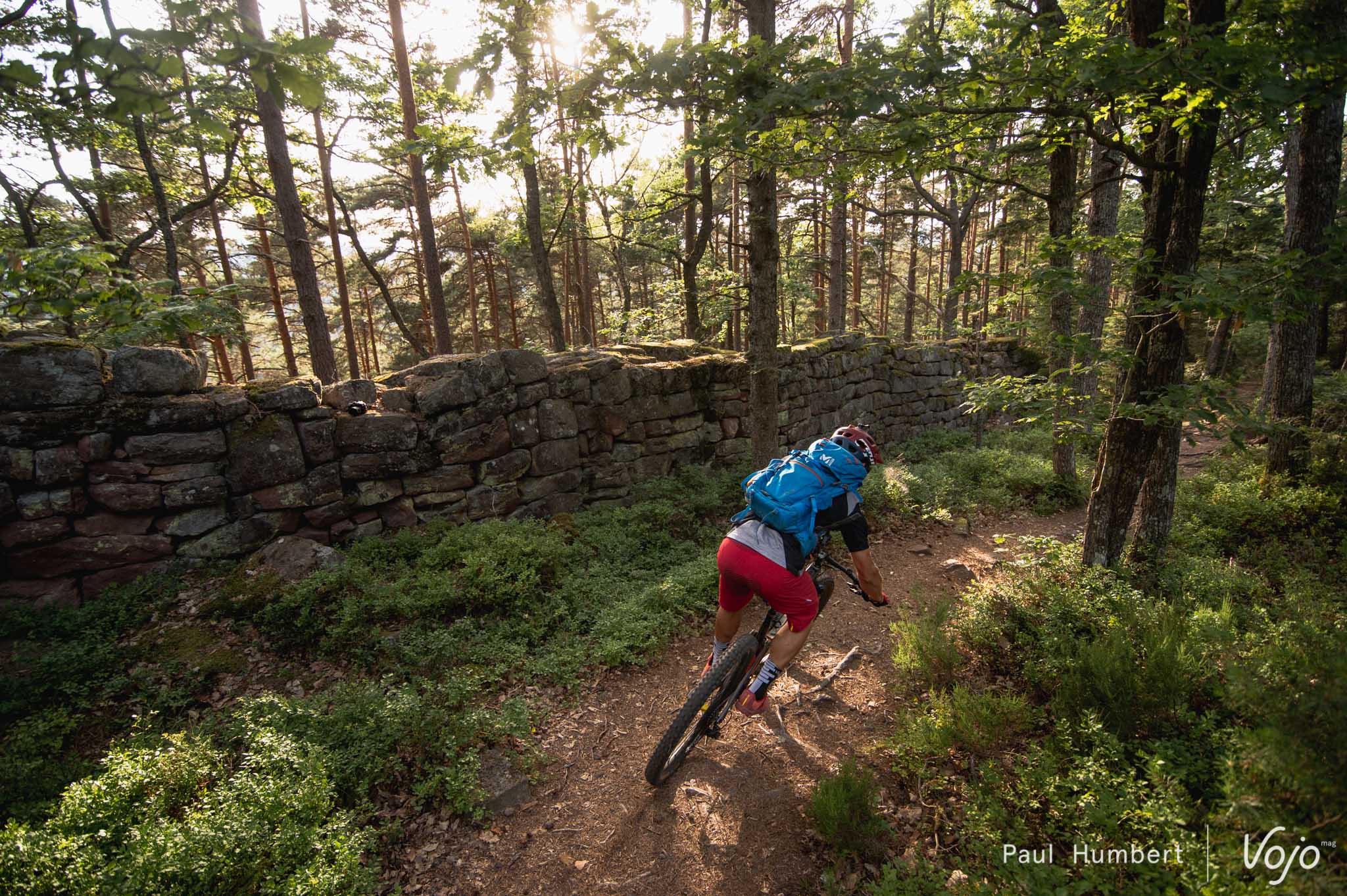 En s’associant à Fred et à Lapierre, nous avons attrapé un des derniers Zesty de la marque pour s’élancer ensemble. On s’arrête dans le beau kiosque Jadelot et on fait le compte des ruines de châteaux qui s’observent à des kilomètres à la ronde.
