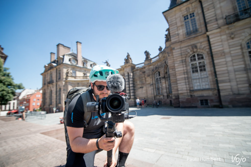 Il fait chaud à Strasbourg quand nous allumons nos caméras. Pour commencer l’aventure, il faut s’habituer à ces dernières. On vous avoue qu’on a parfois du mal à se sentir naturel mais on s’y fait assez vite en déambulant dans les rues de la capitale alsacienne. On traverse cette dernière en préférant les ruelles aux grandes artères. On guette d’une oreille le passage des trams mais on se déplace vraiment facilement, la ville étant bien pensée pour les vélos.