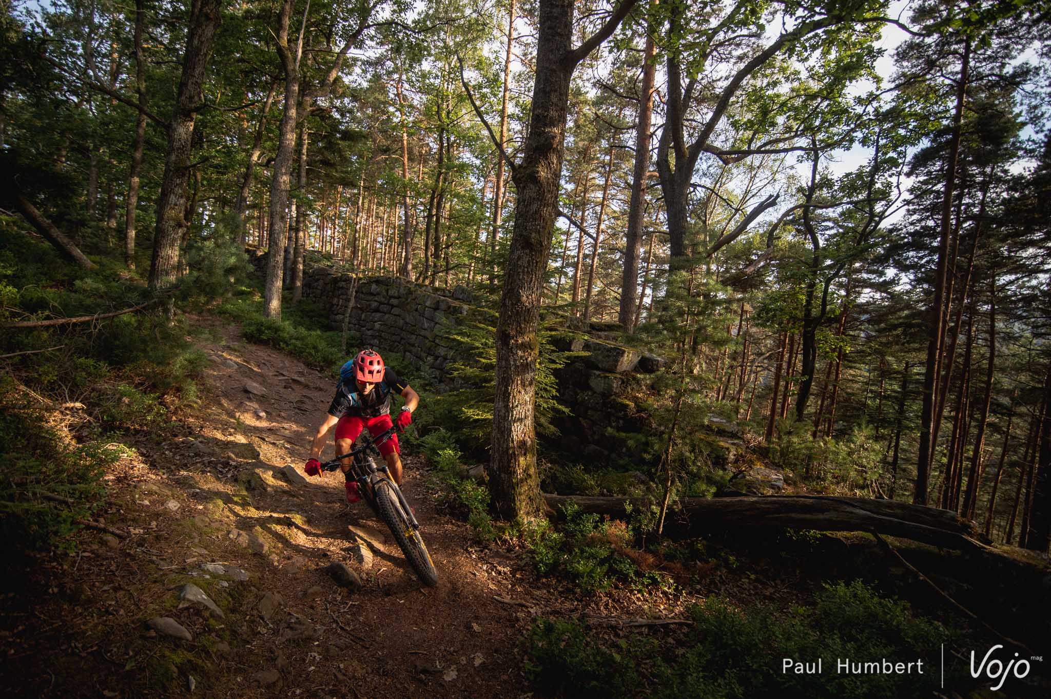 En s’associant à Fred et à Lapierre, nous avons attrapé un des derniers Zesty de la marque pour s’élancer ensemble. On s’arrête dans le beau kiosque Jadelot et on fait le compte des ruines de châteaux qui s’observent à des kilomètres à la ronde.